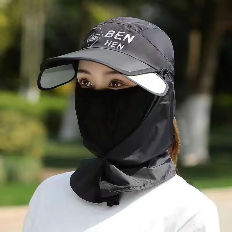 防晒帽子女夏遮脸护颈防紫外线太阳帽骑车户外遮全脸大沿遮阳帽男
