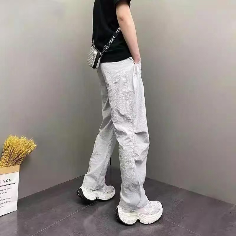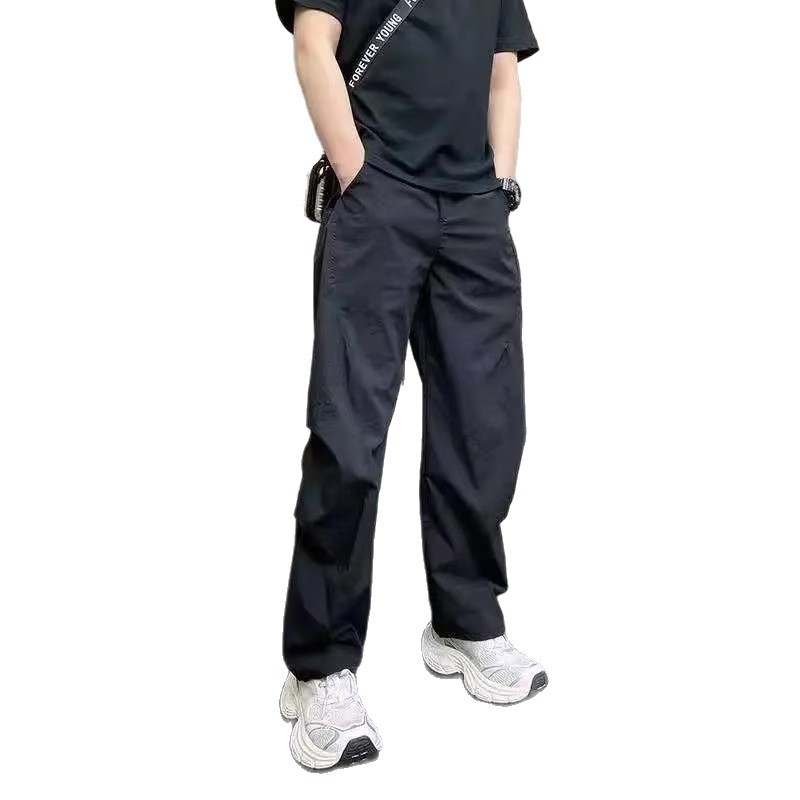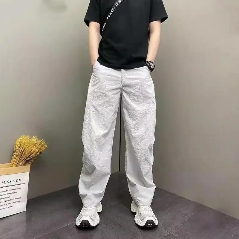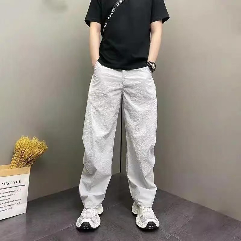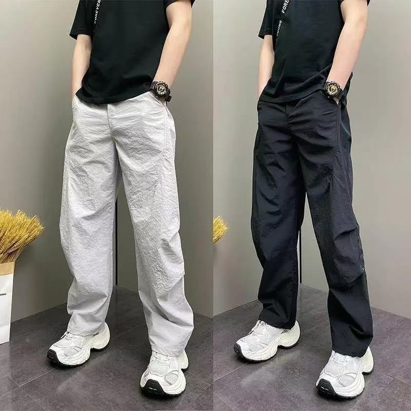 夏季2026薄款潮流韩版痞帅宽松哈伦青年男士纯色休闲直筒裤子