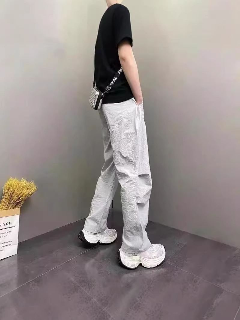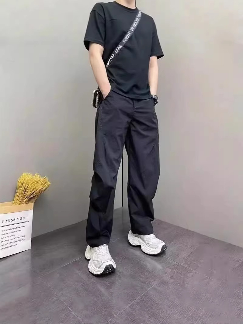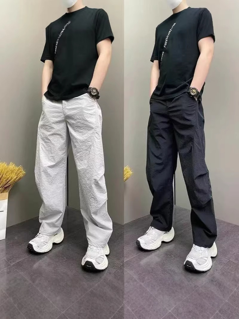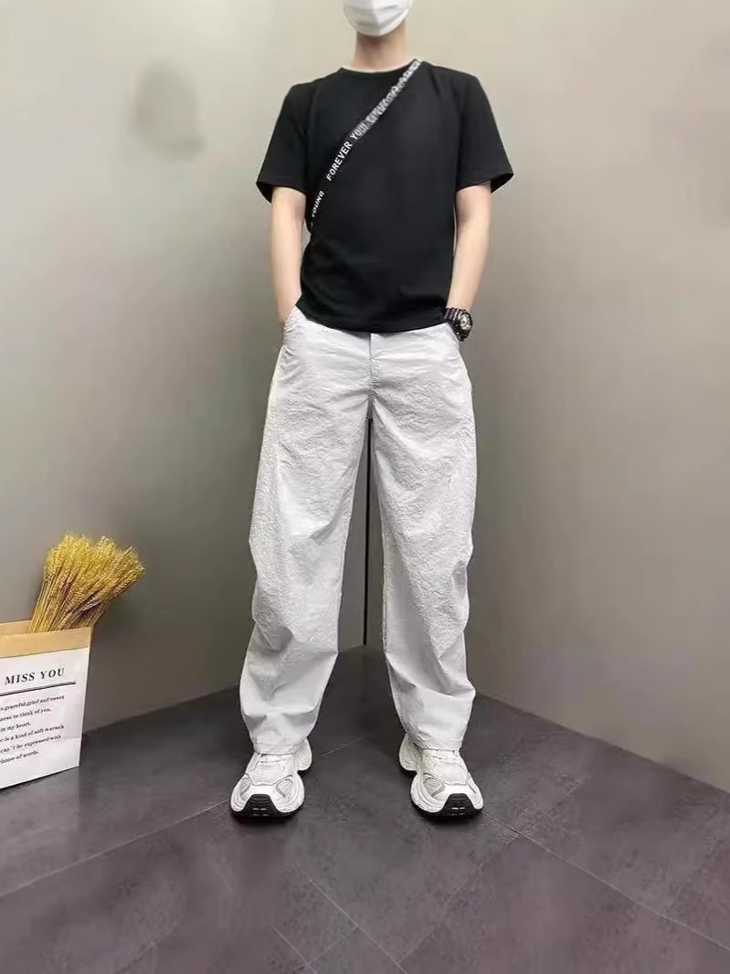 夏季2026薄款潮流韩版痞帅宽松哈伦青年男士纯色休闲直筒裤子