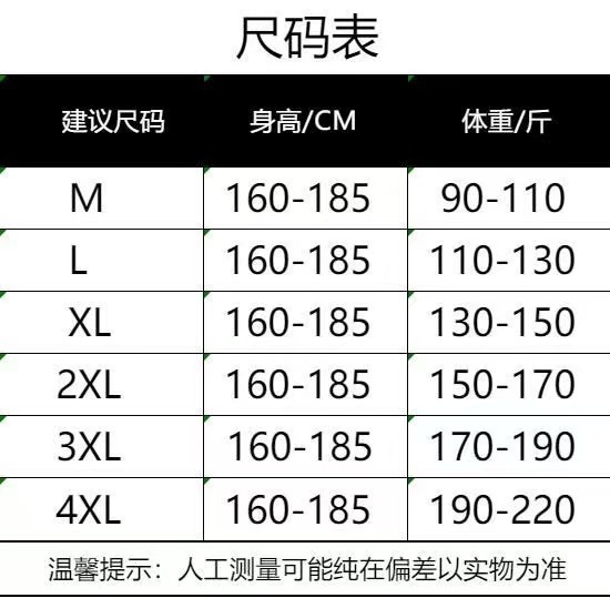 | 3XL(170-190斤) | USD $9.84 | 561 piece available |