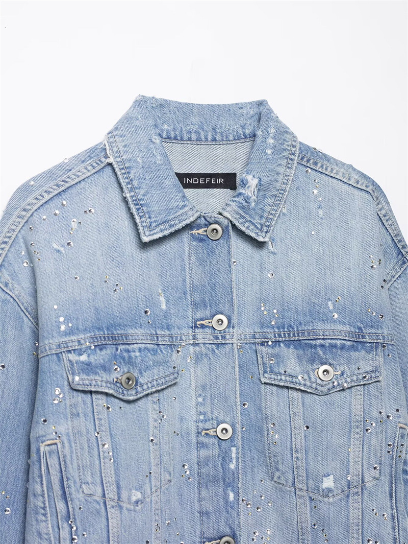 外贸批发2025新款水钻饰短款牛仔夹克外套4730272牛仔裤8727216