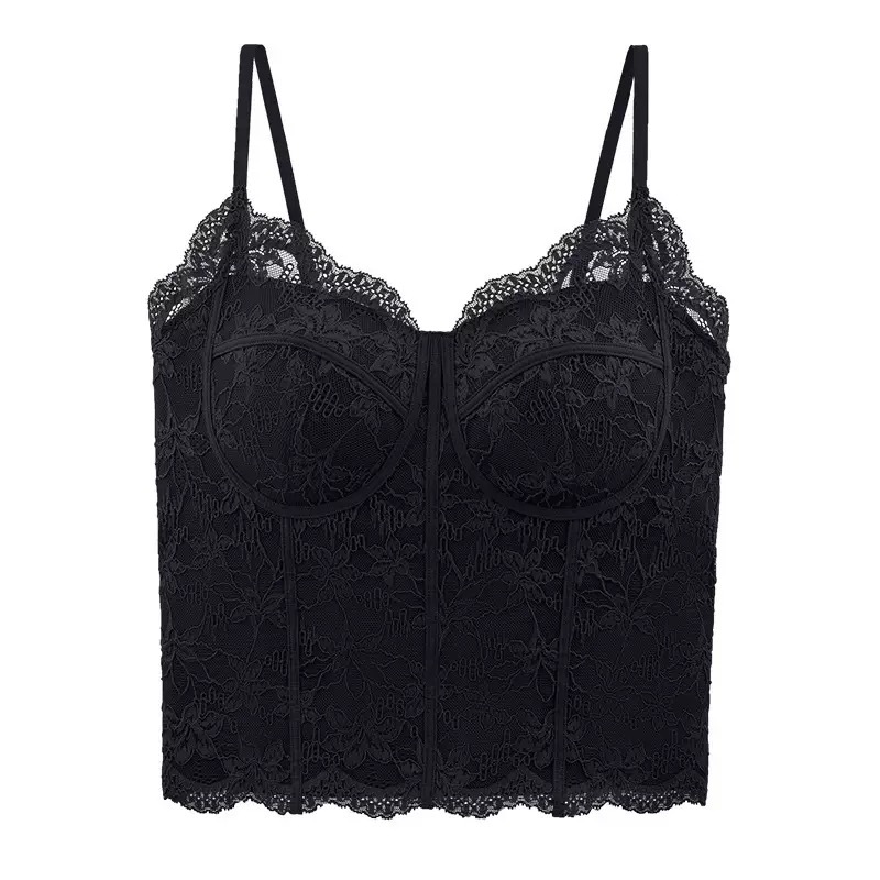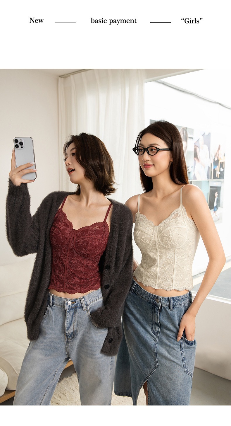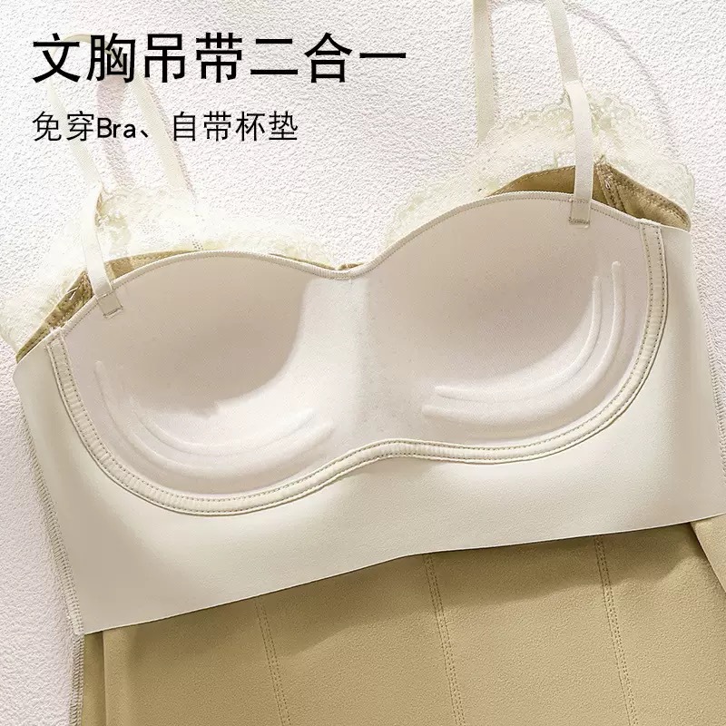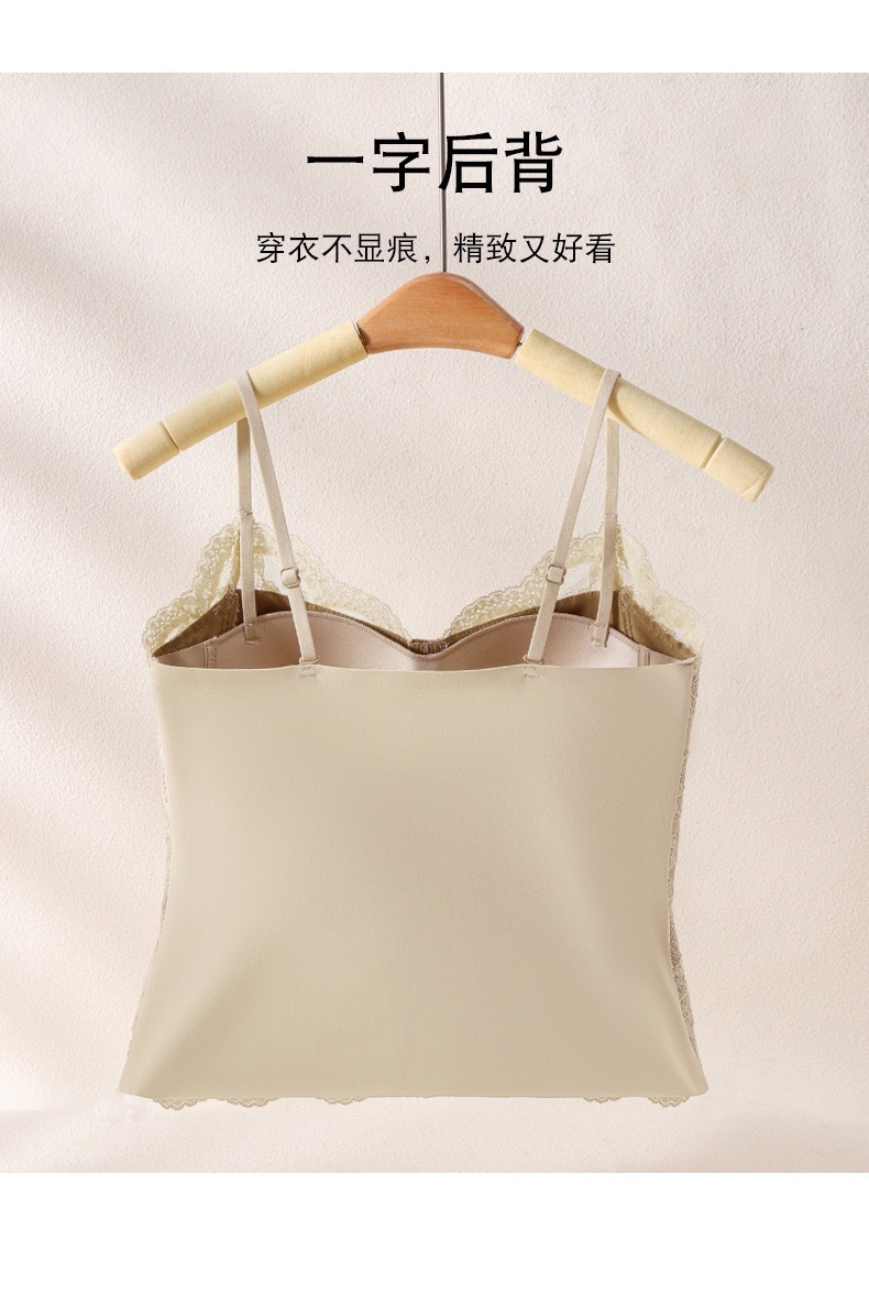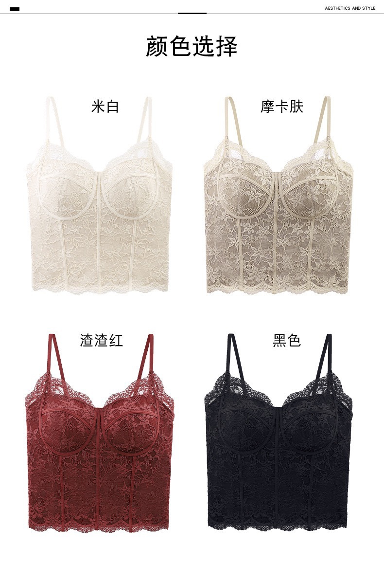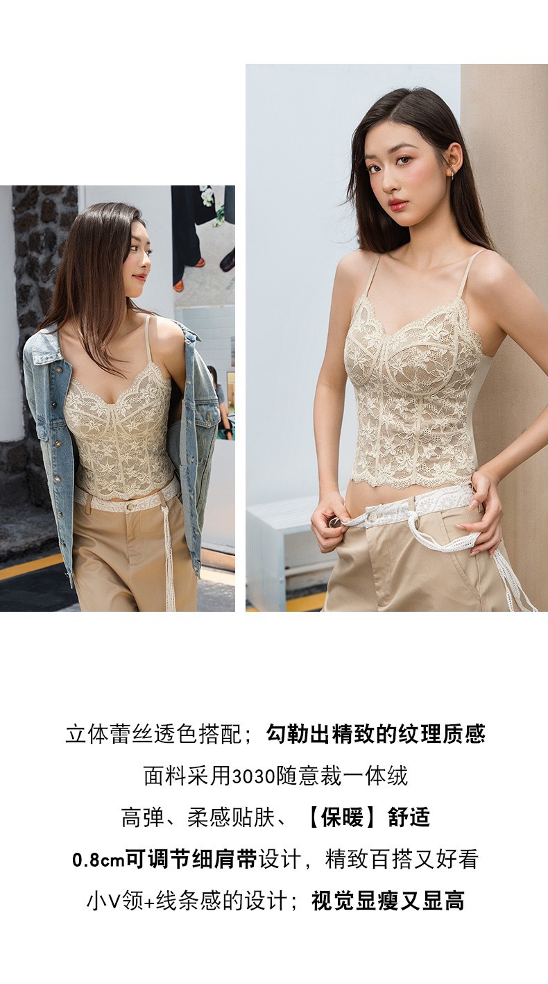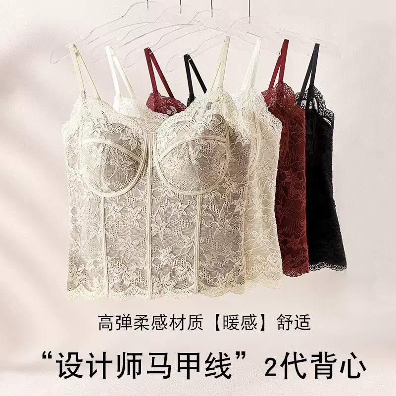 秋冬纯欲蕾丝吊带背心法式V领美背带胸垫一体式内衣修身内搭打底