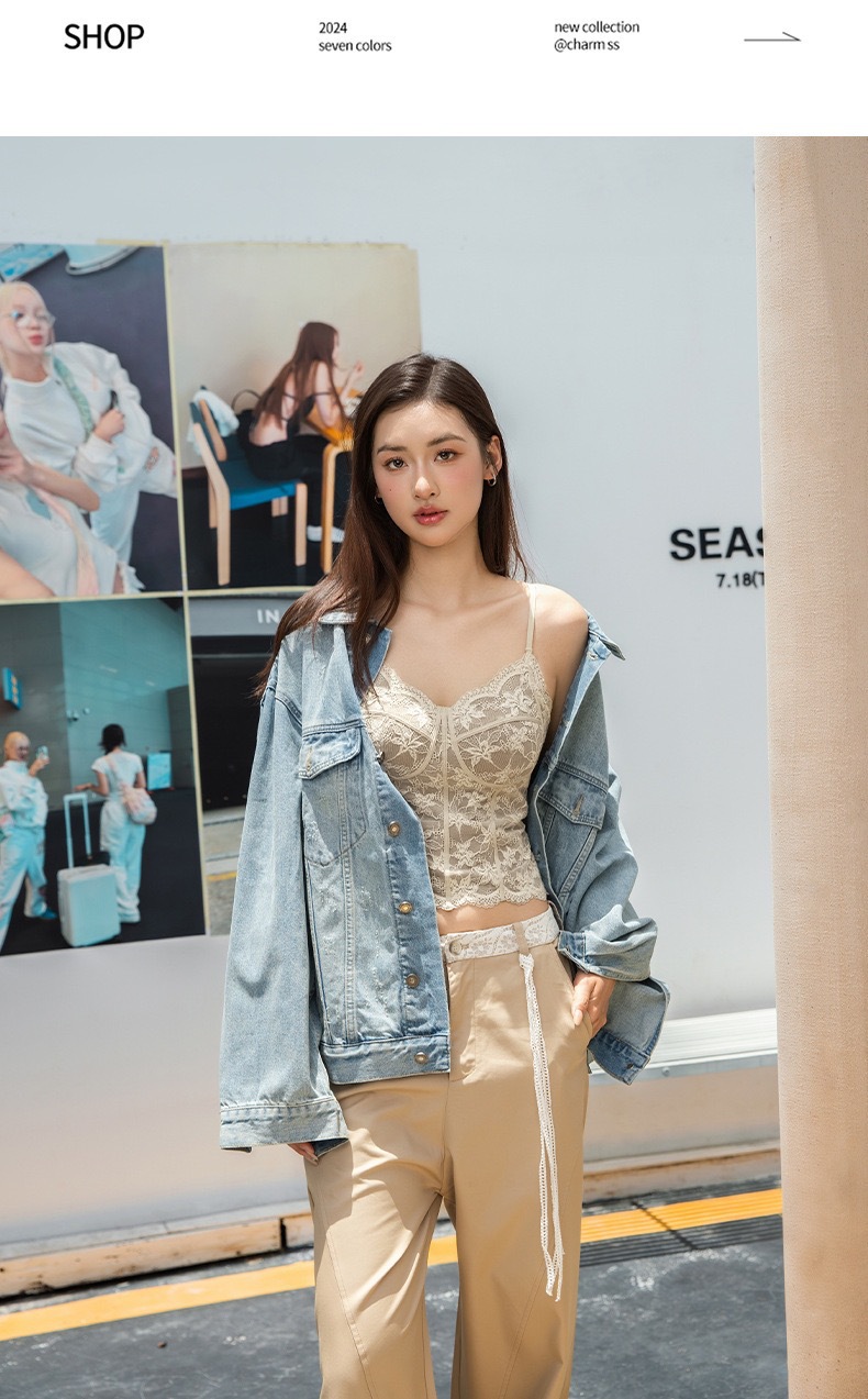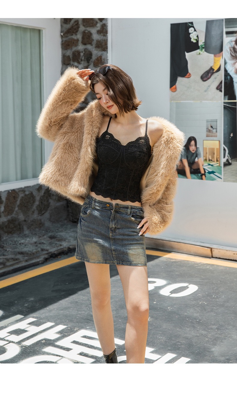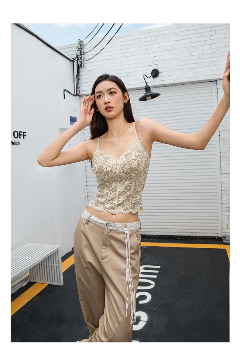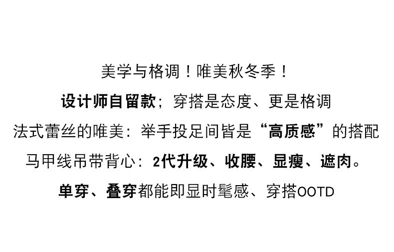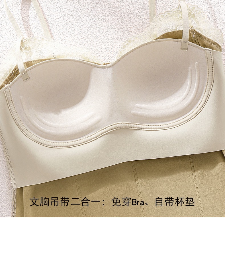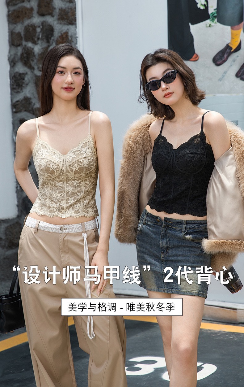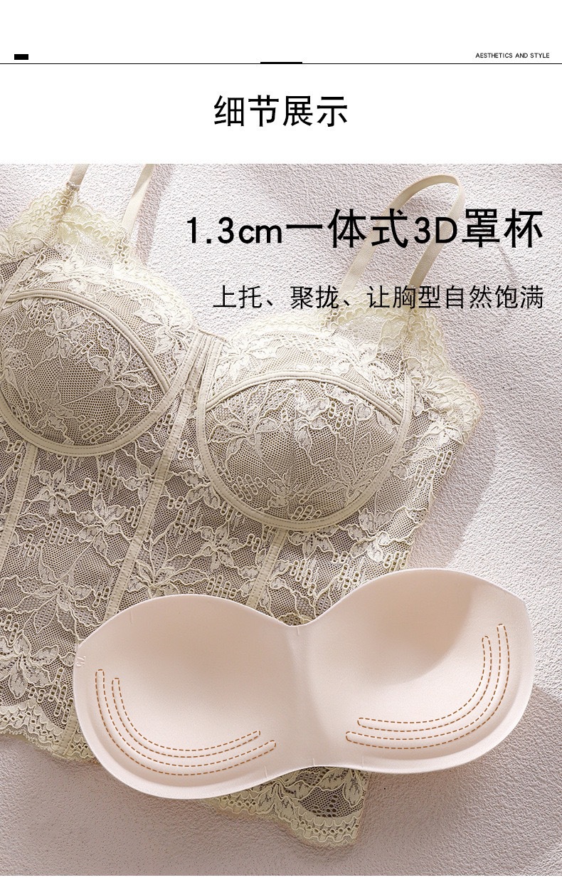 秋冬纯欲蕾丝吊带背心法式V领美背带胸垫一体式内衣修身内搭打底