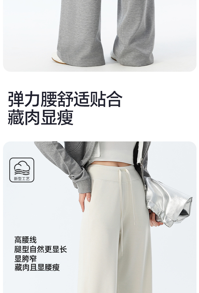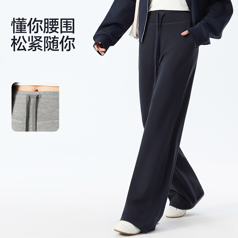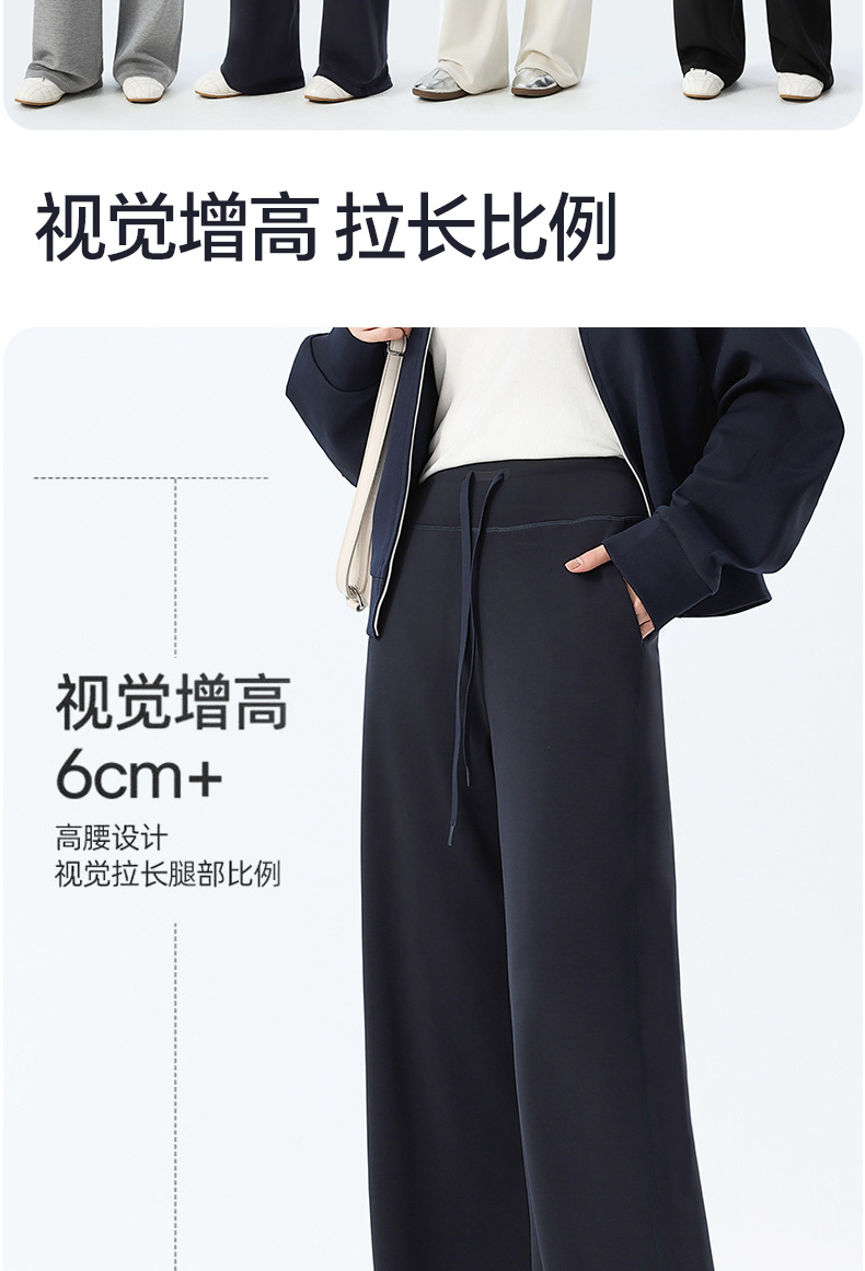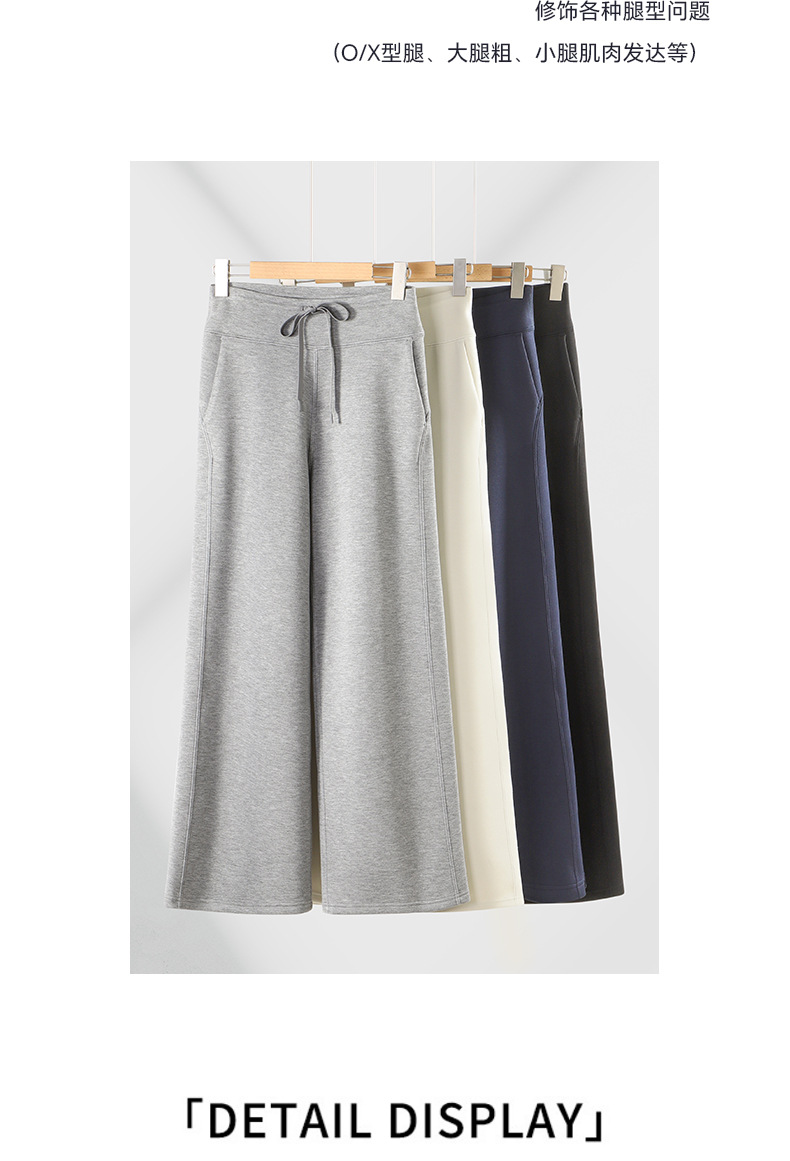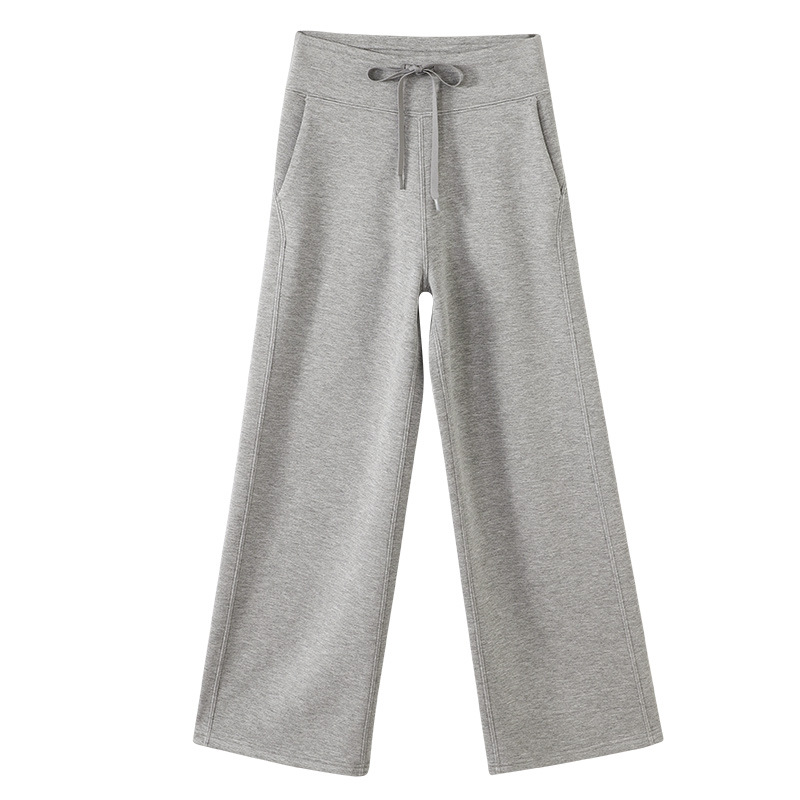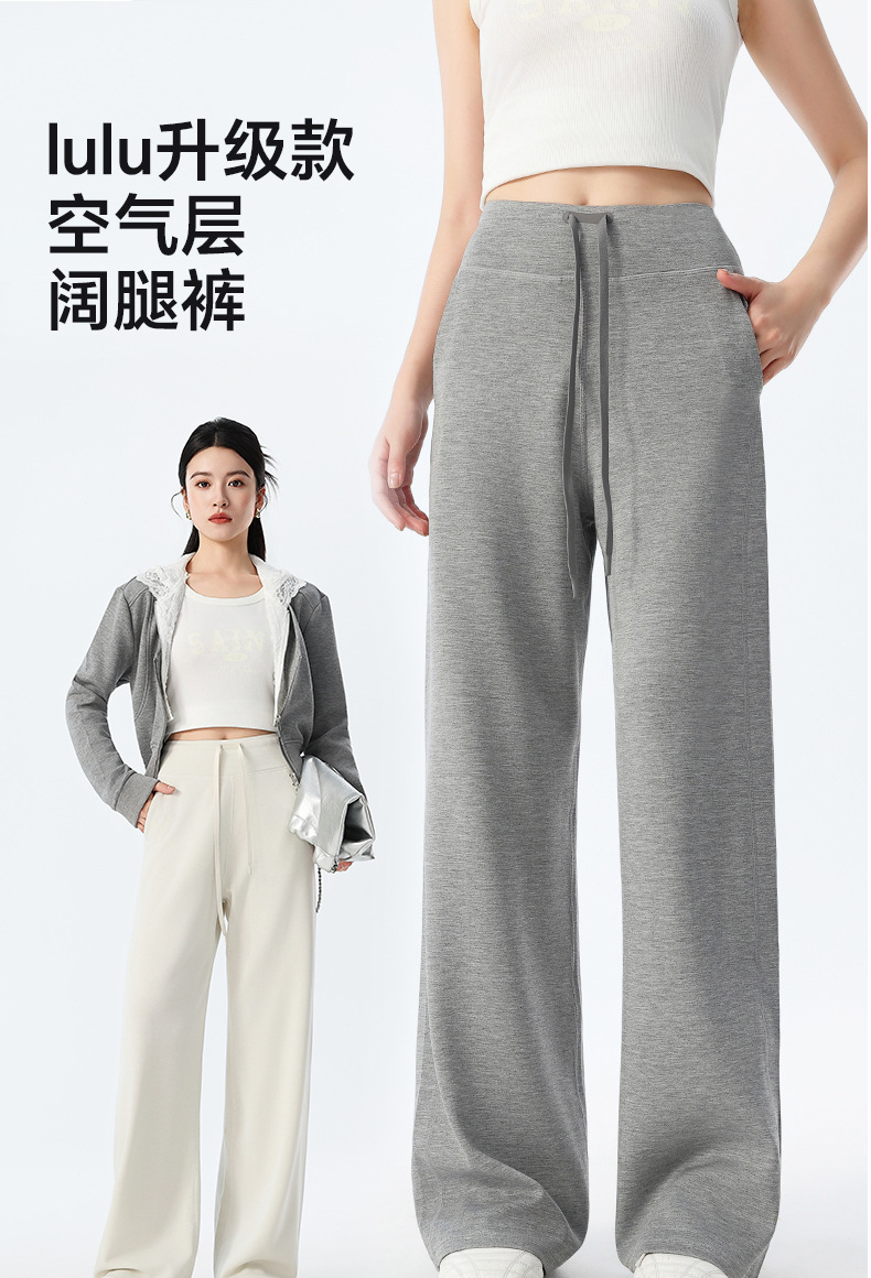 空气层直筒阔腿裤女秋冬新款简约时尚抽绳百搭休闲运动灰色卫裤子