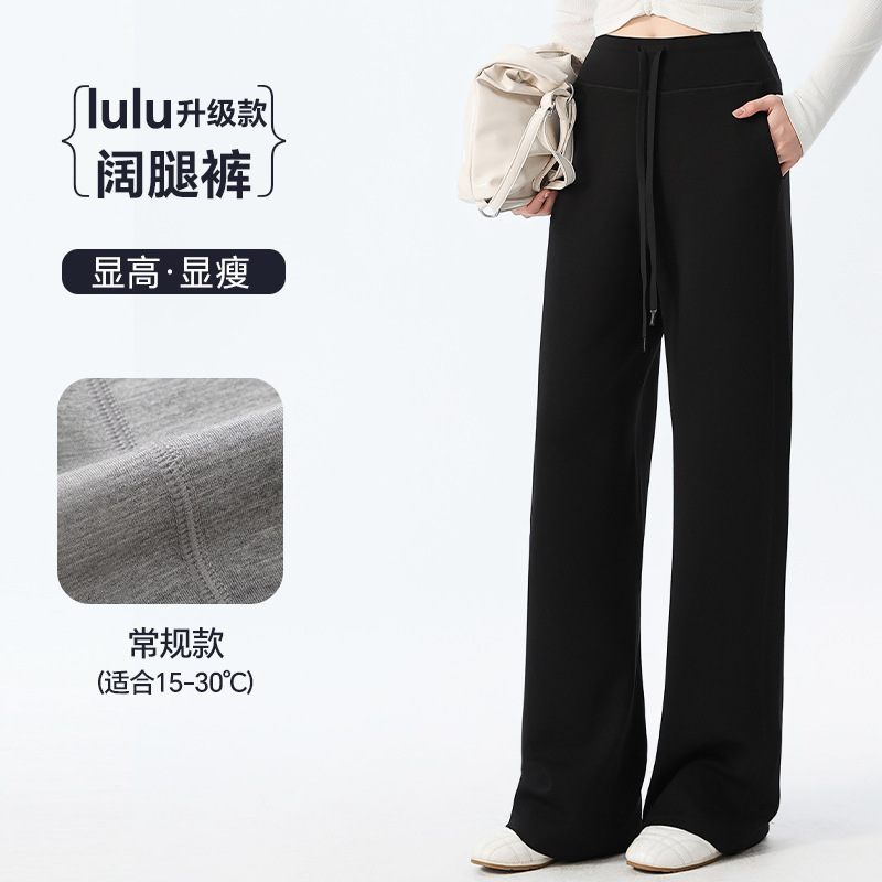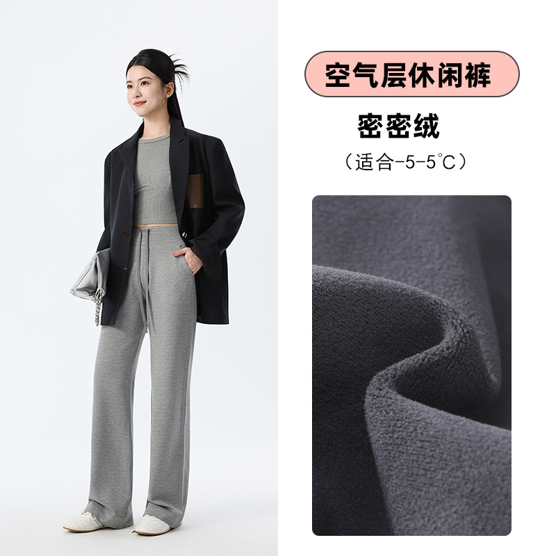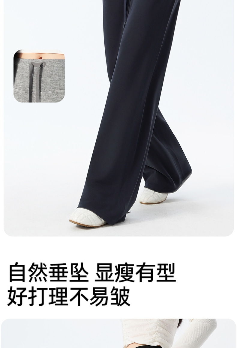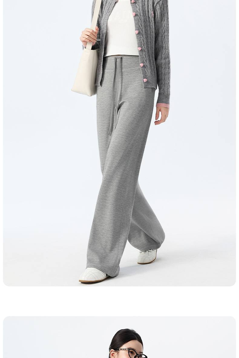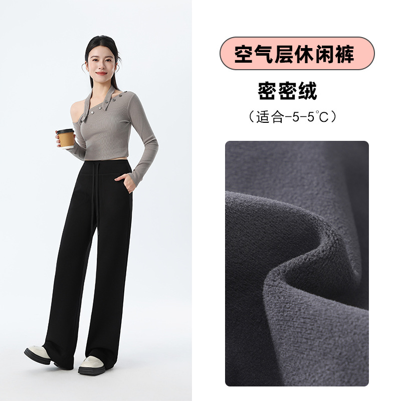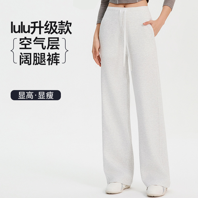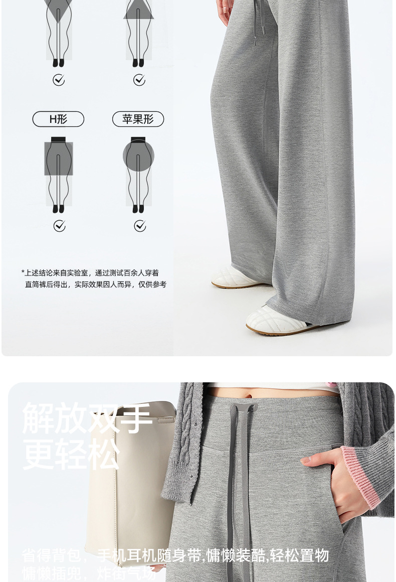 空气层直筒阔腿裤女秋冬新款简约时尚抽绳百搭休闲运动灰色卫裤子