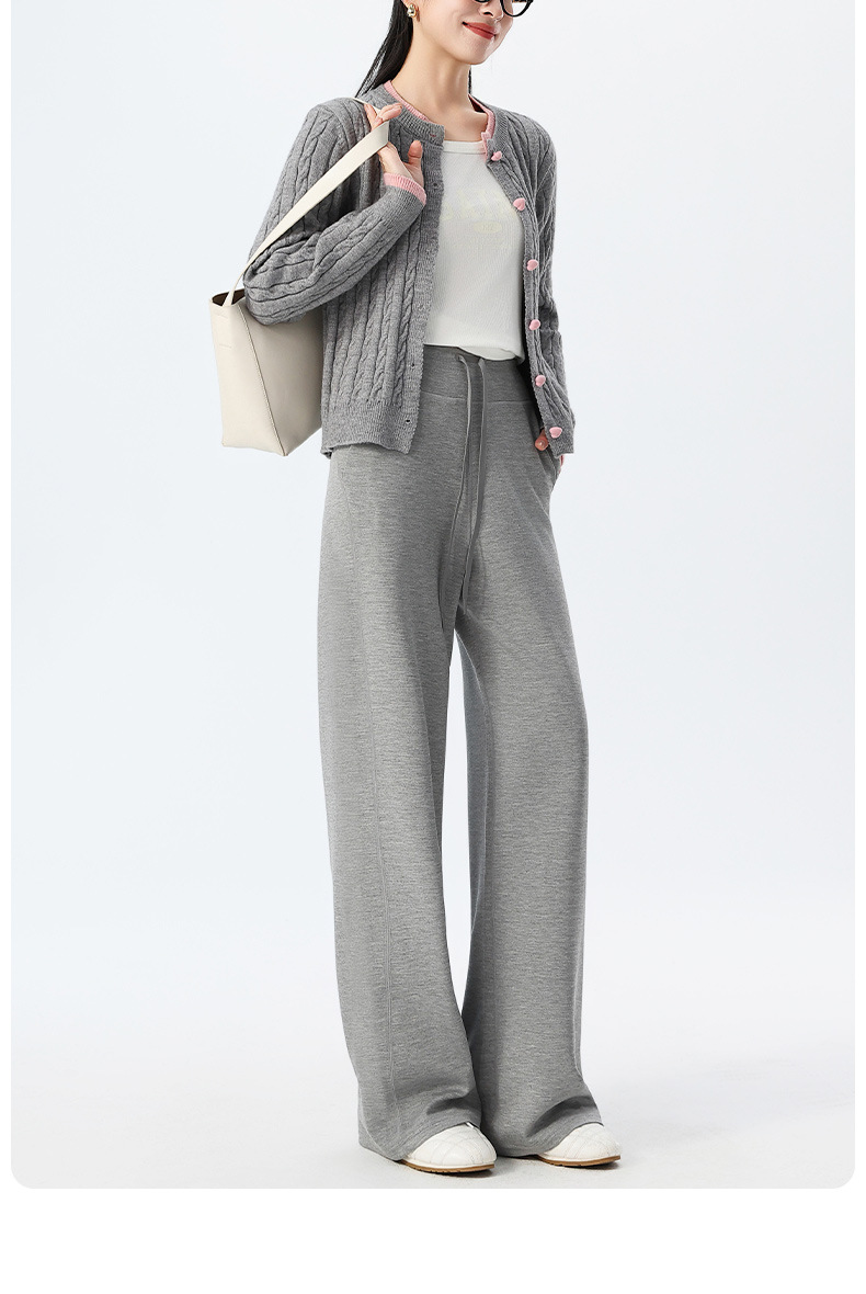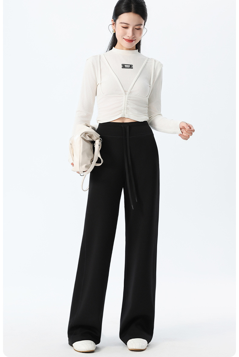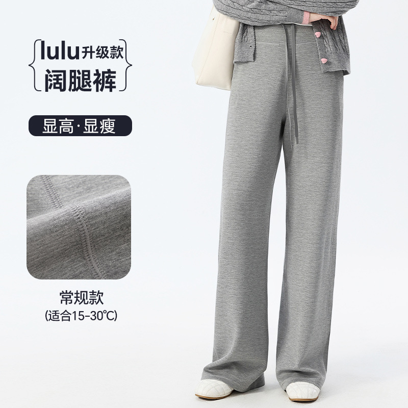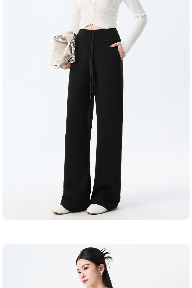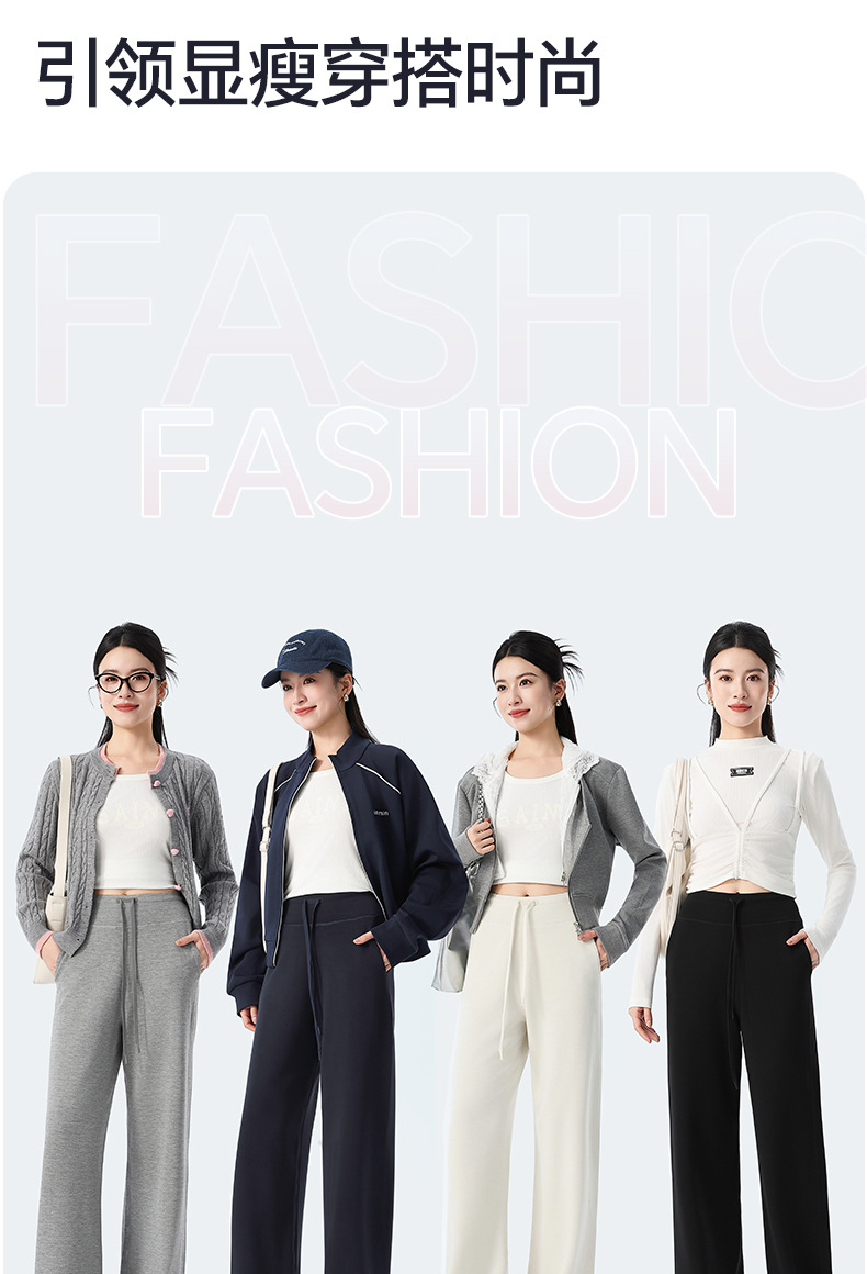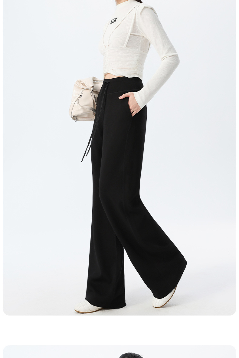 空气层直筒阔腿裤女秋冬新款简约时尚抽绳百搭休闲运动灰色卫裤子