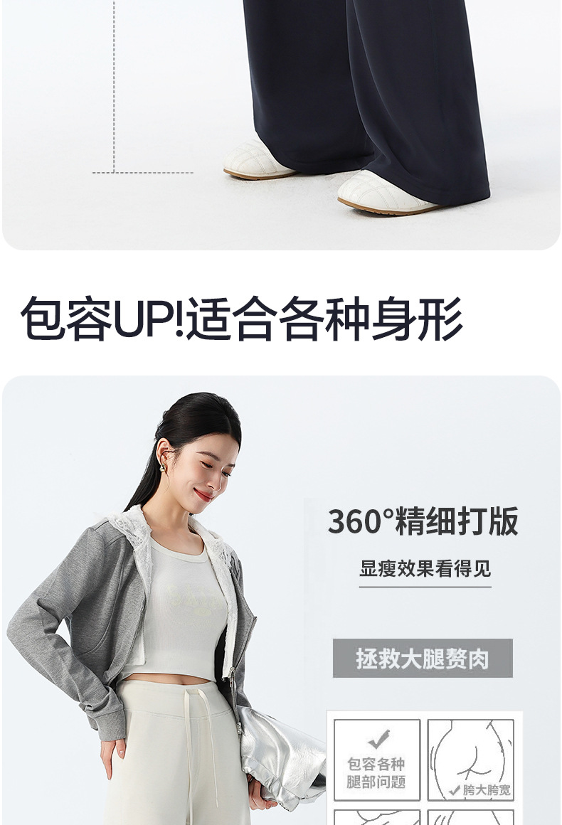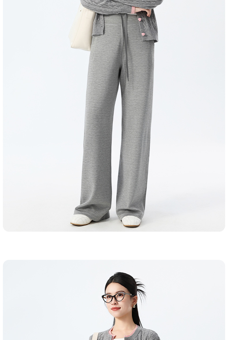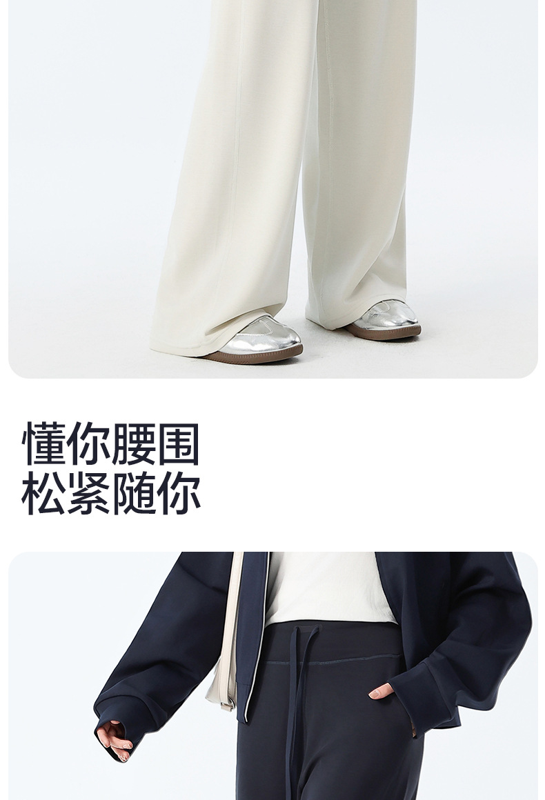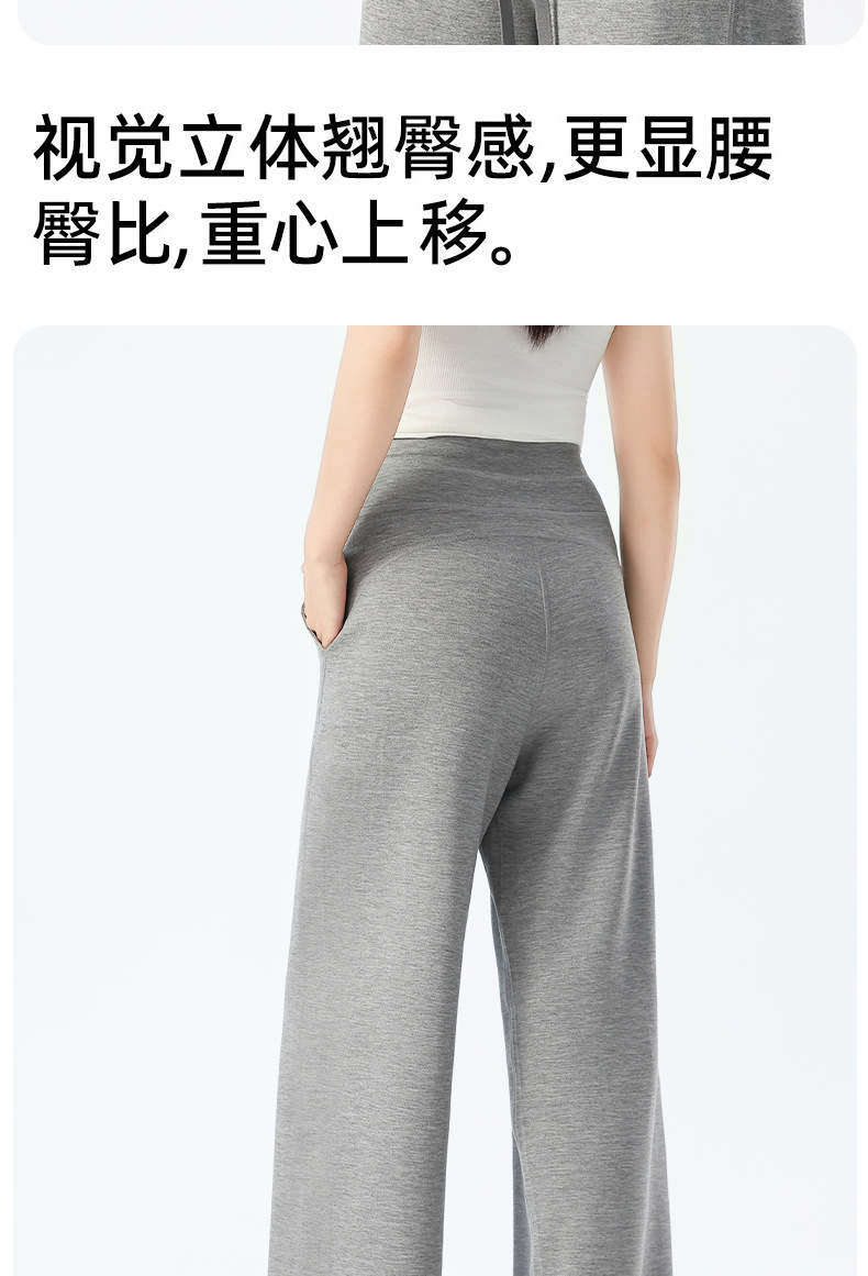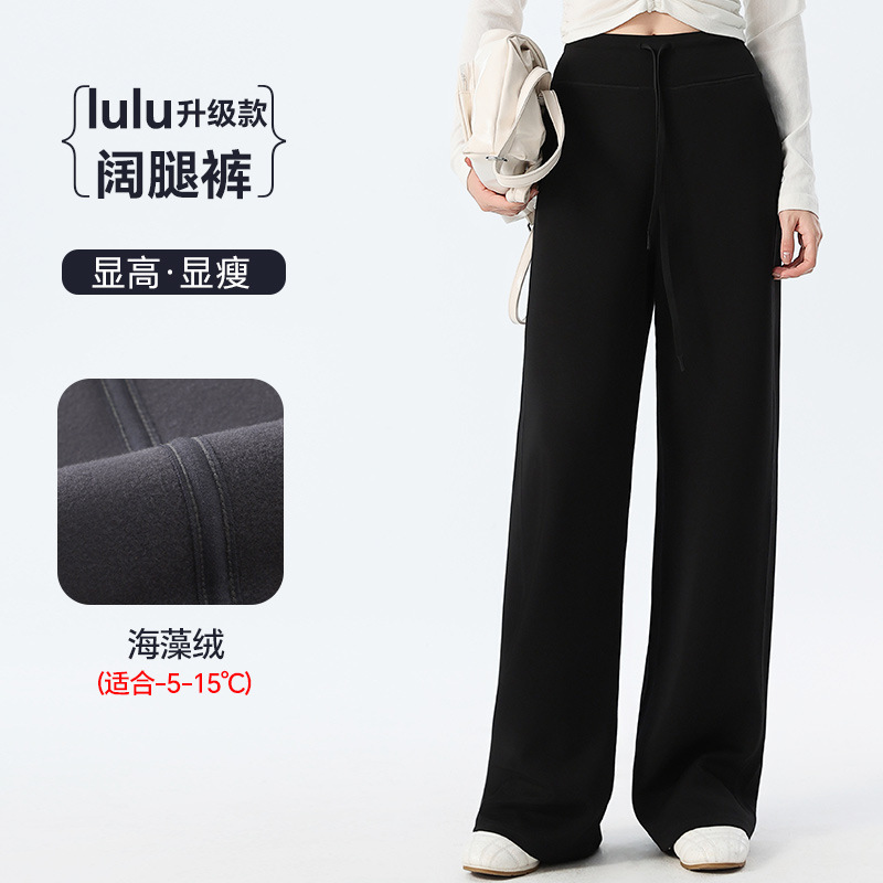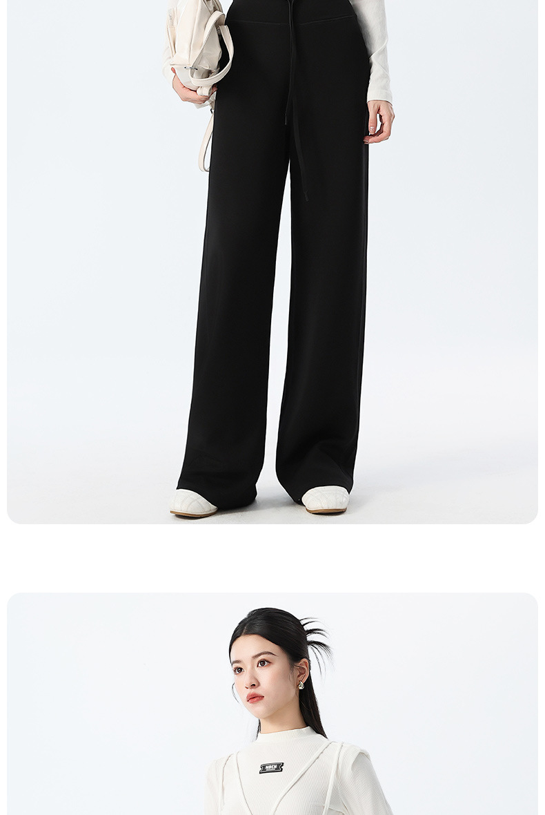 空气层直筒阔腿裤女秋冬新款简约时尚抽绳百搭休闲运动灰色卫裤子