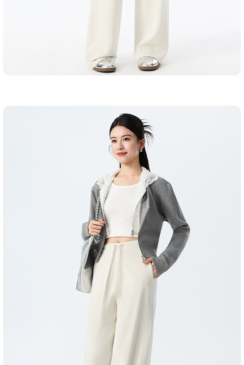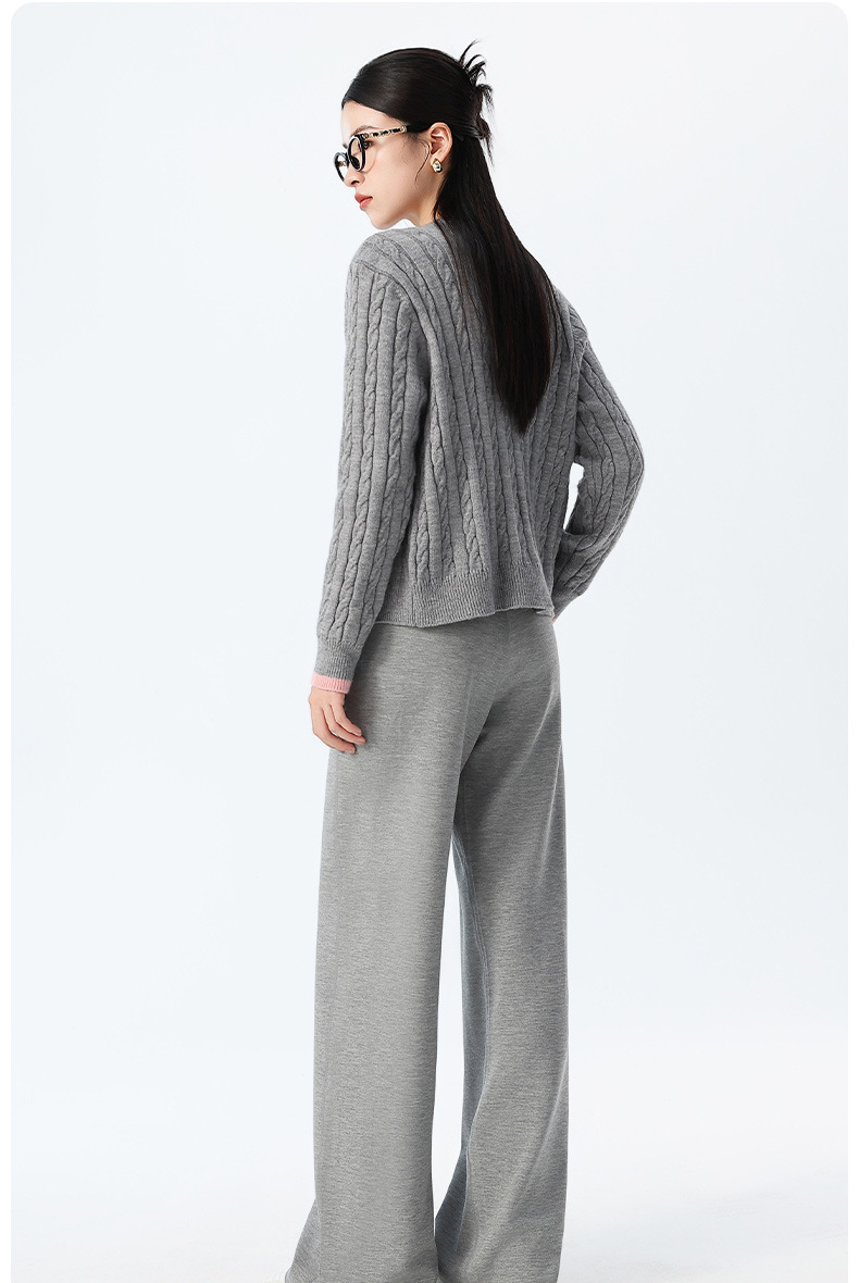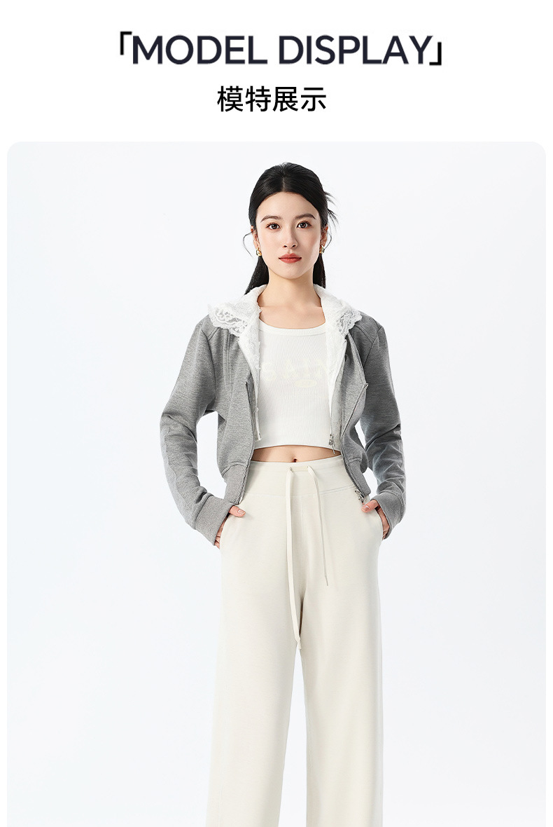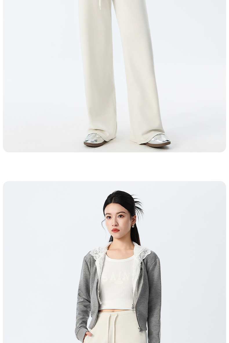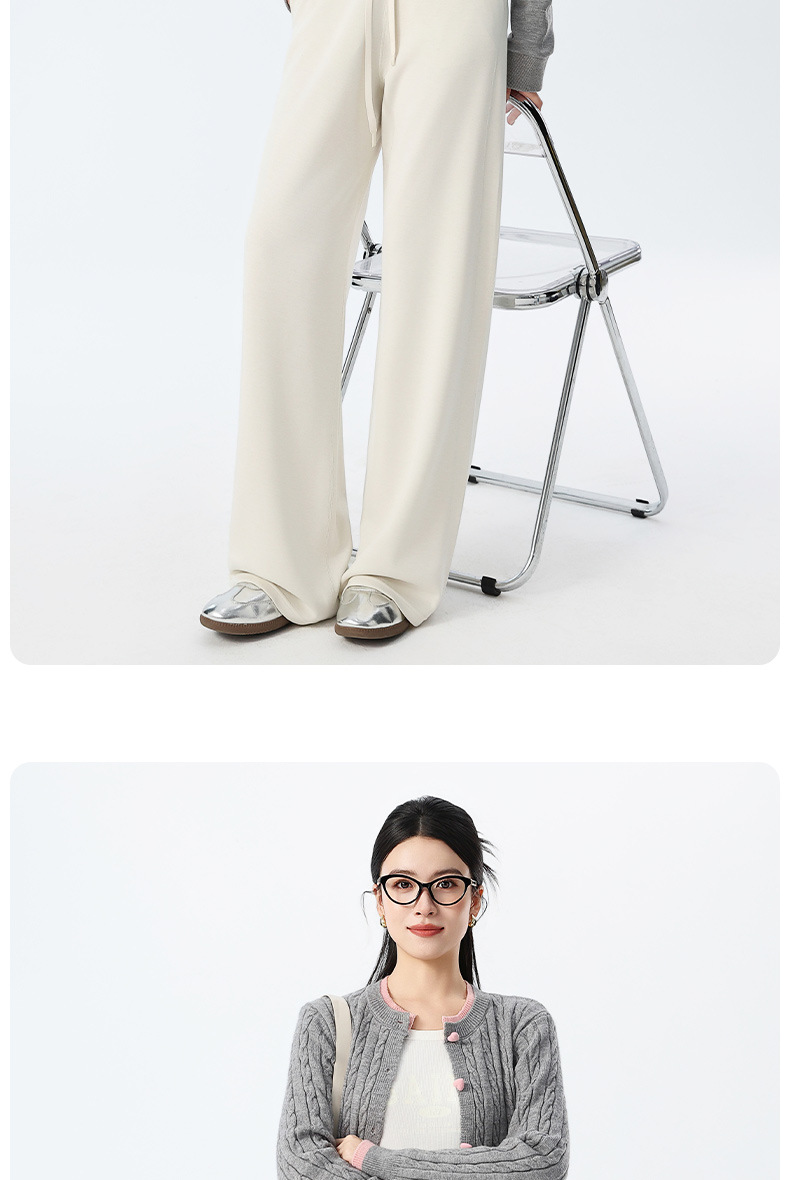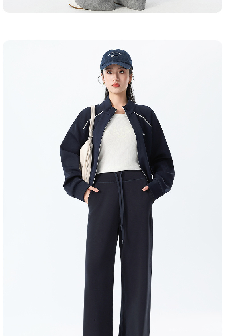 空气层直筒阔腿裤女秋冬新款简约时尚抽绳百搭休闲运动灰色卫裤子