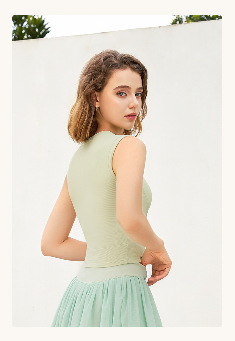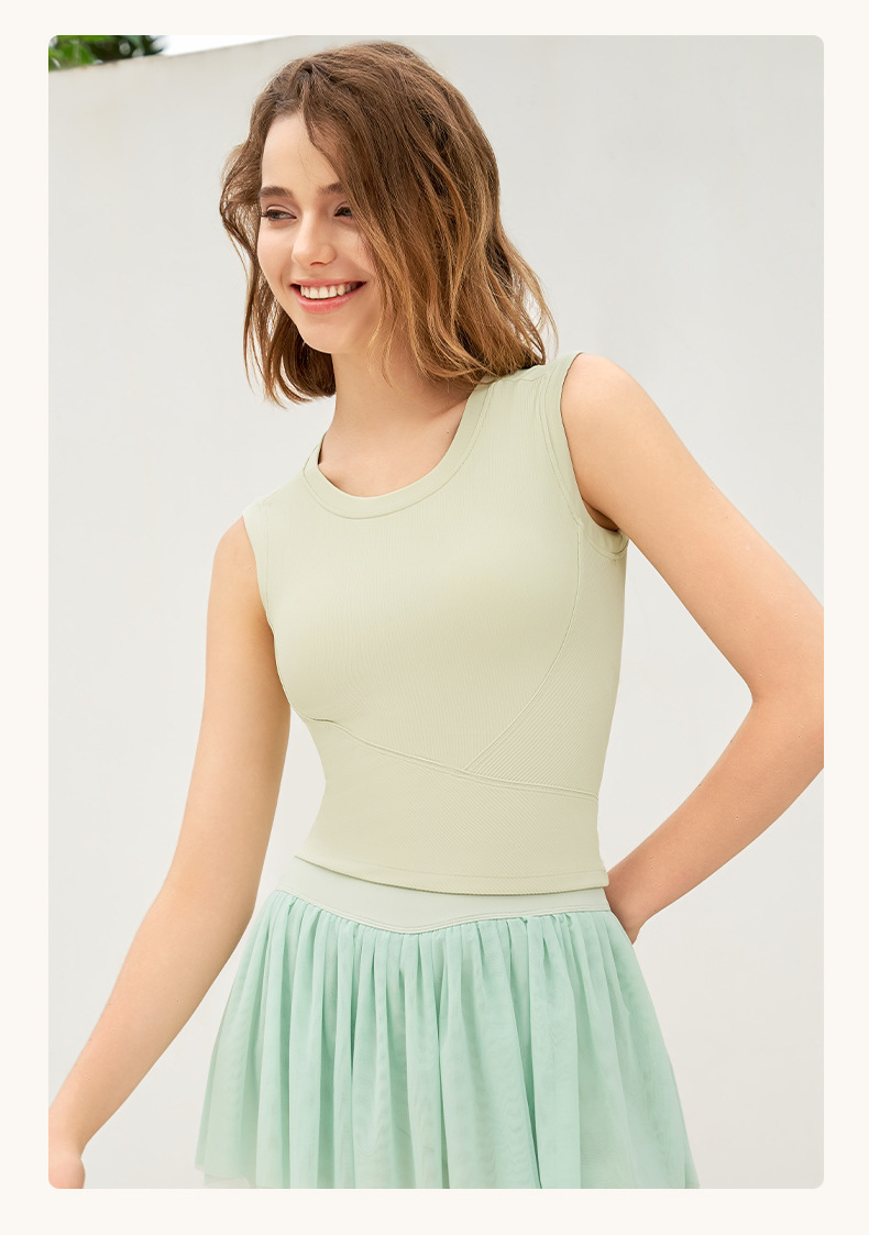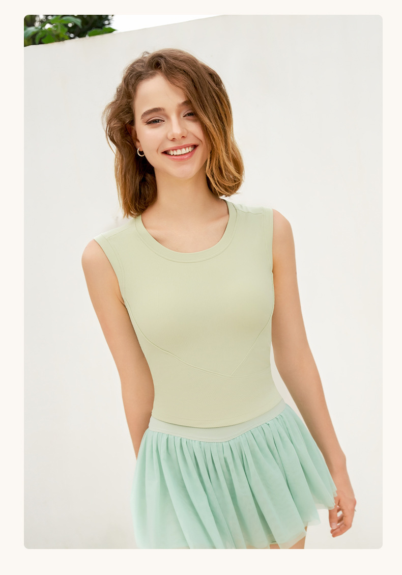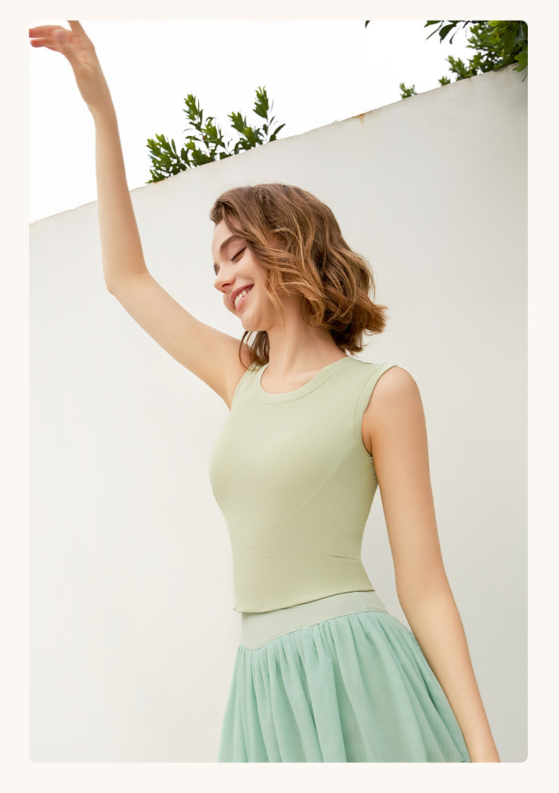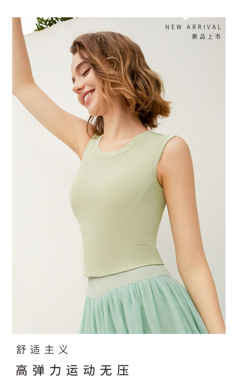 新罗纹跑步运动背心女夏带胸垫不跑杯瑜伽服上衣无袖美背健身内衣
