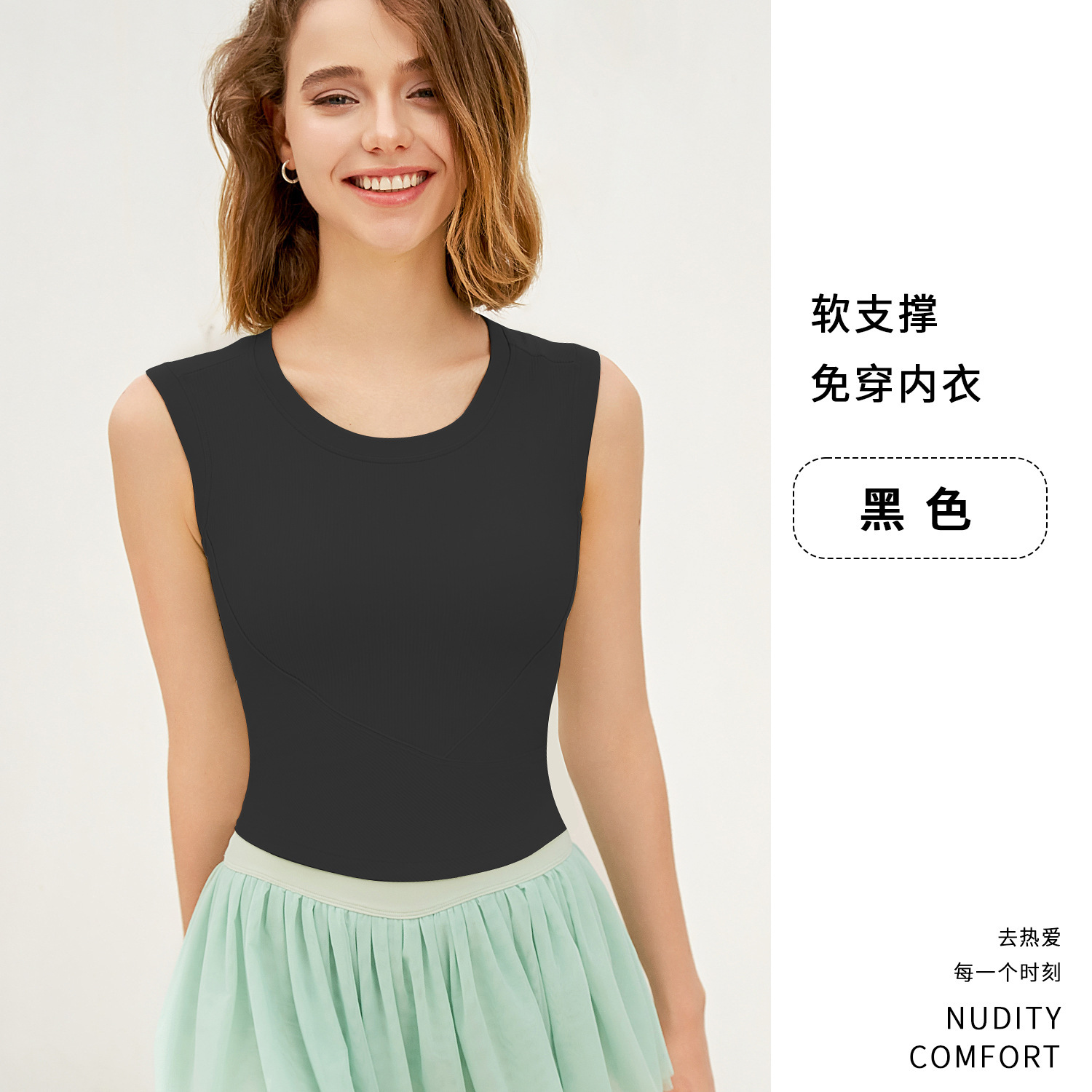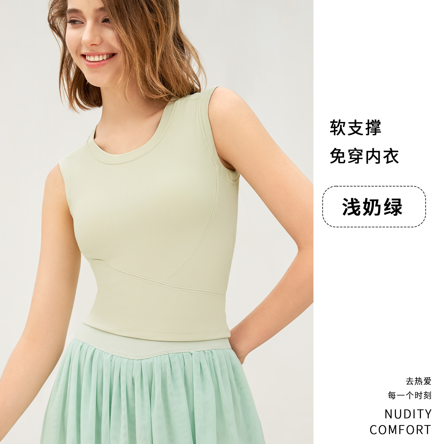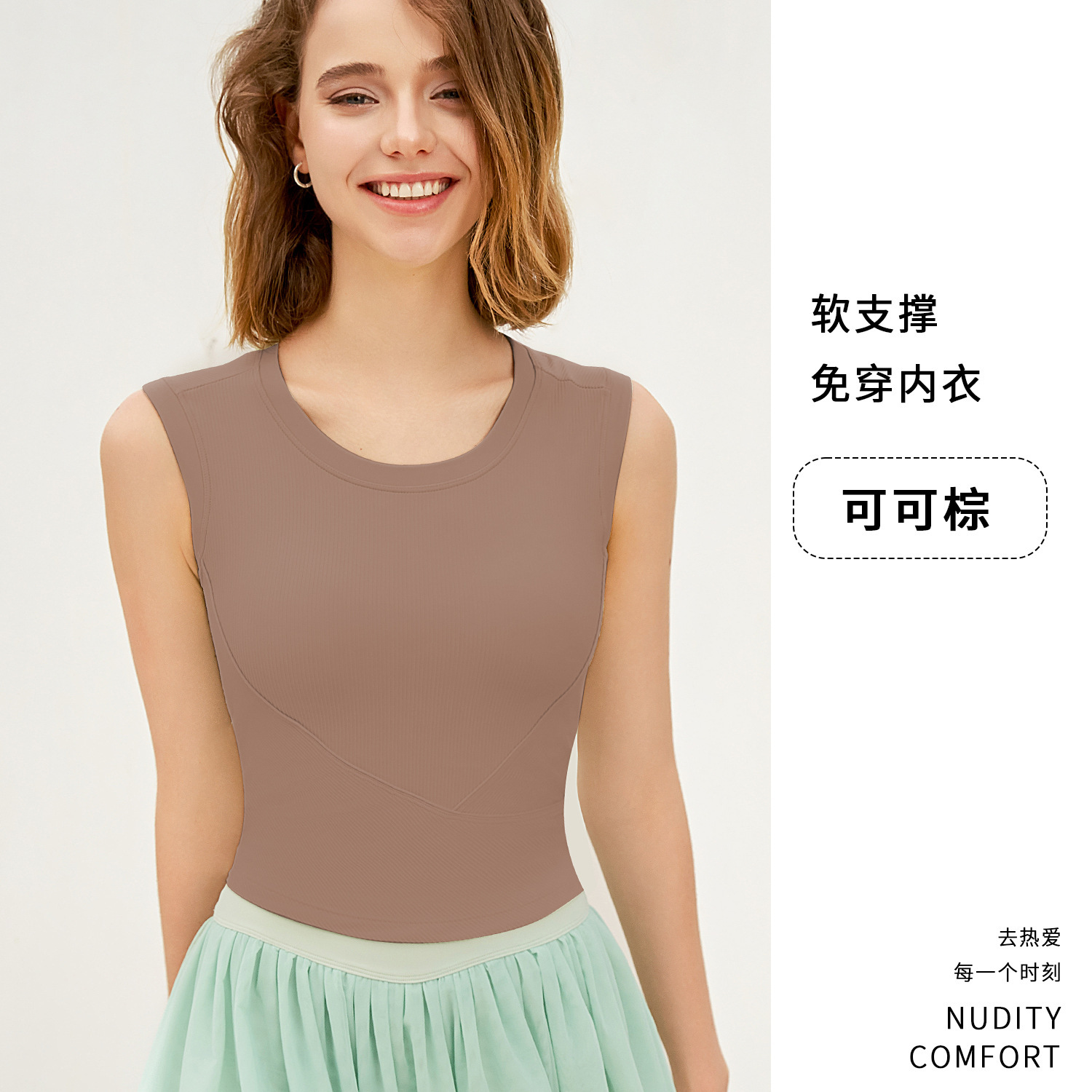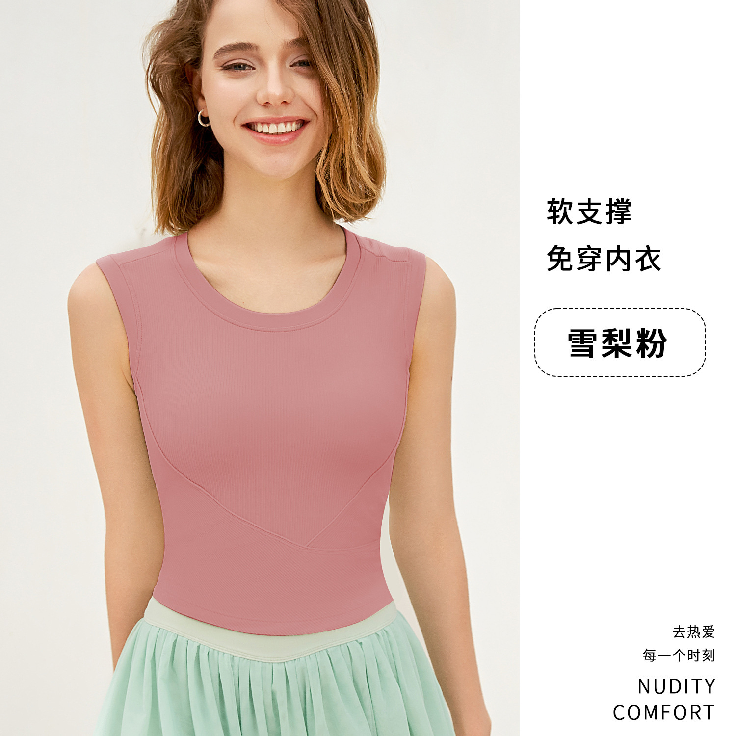 新罗纹跑步运动背心女夏带胸垫不跑杯瑜伽服上衣无袖美背健身内衣