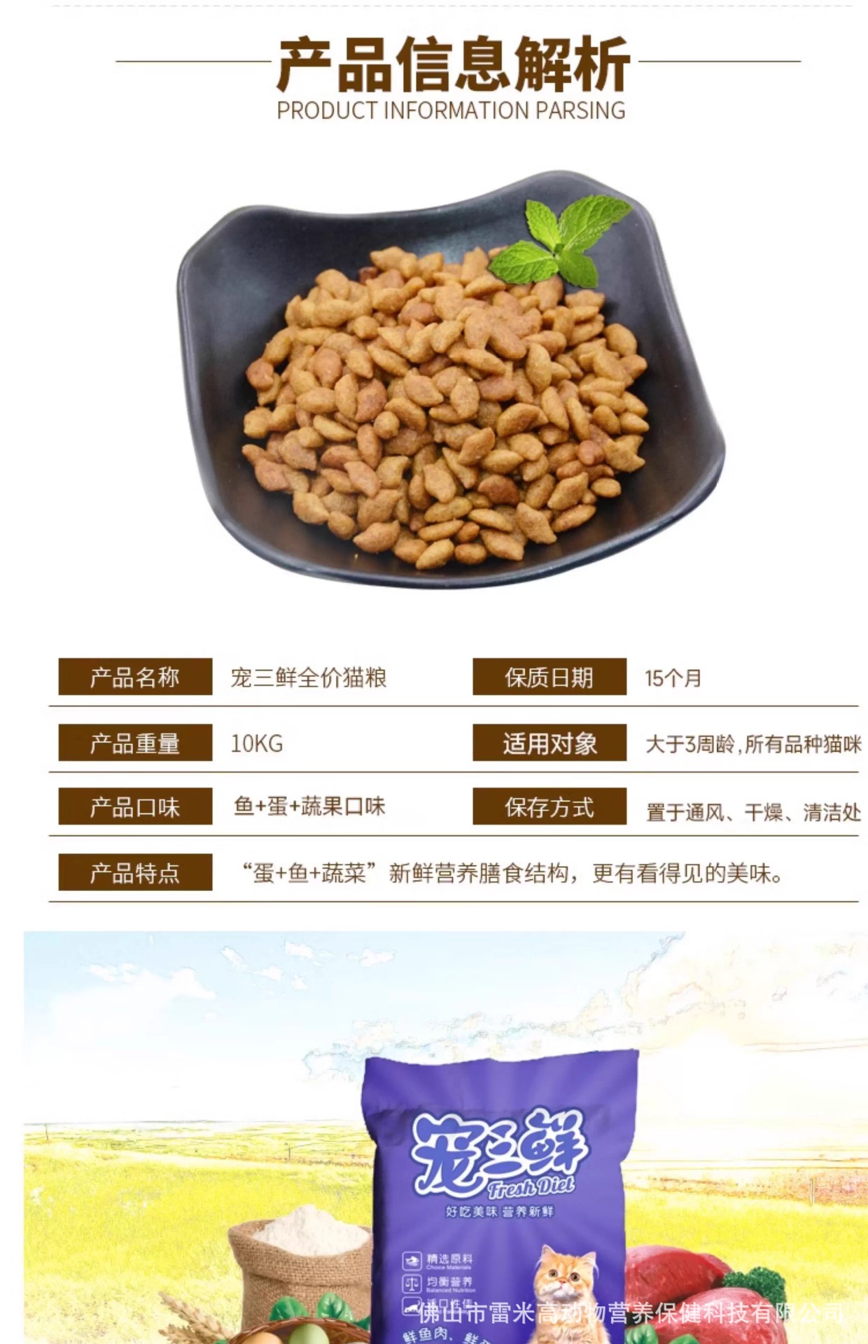 雷米高宠三鲜全价猫粮10kg装全阶段幼猫成猫粮通用专用猫主粮试吃