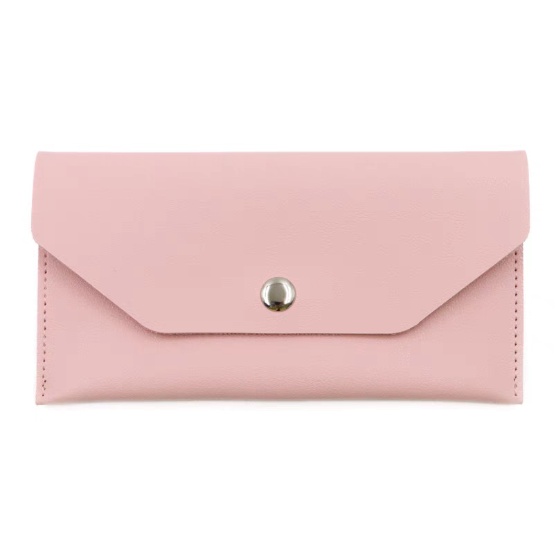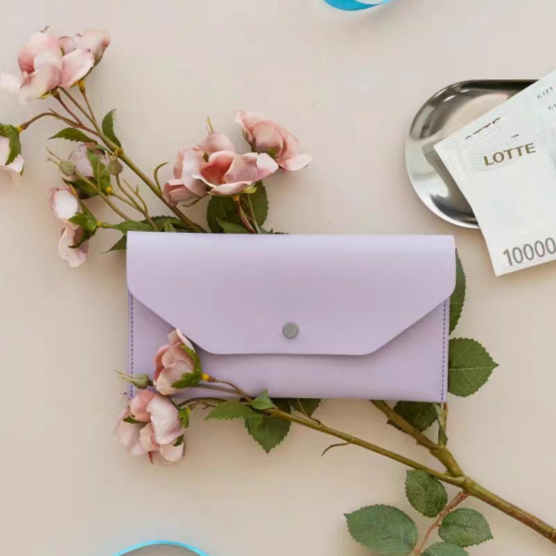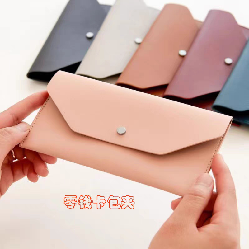 韩版PU皮革零钱夹学生ins风小钱包卡包长款便携零钱包钱夹纯色系