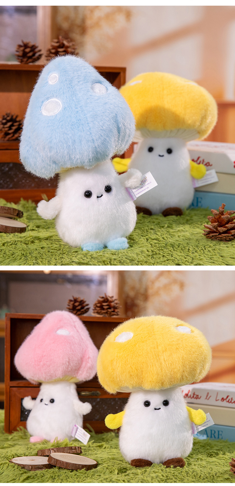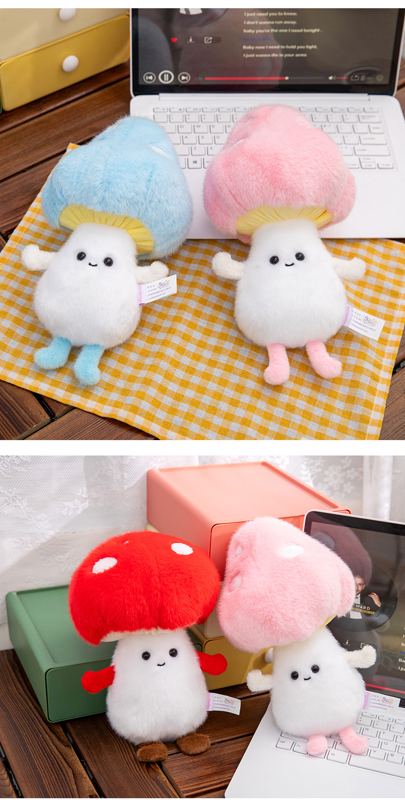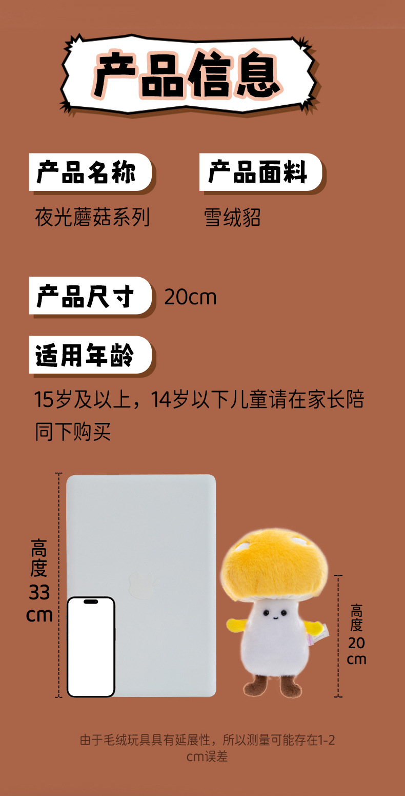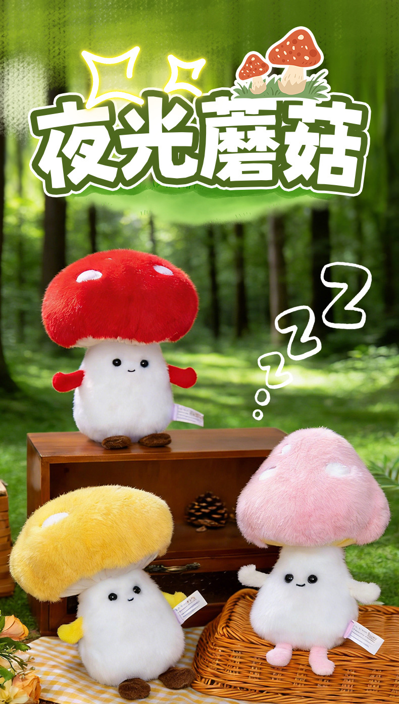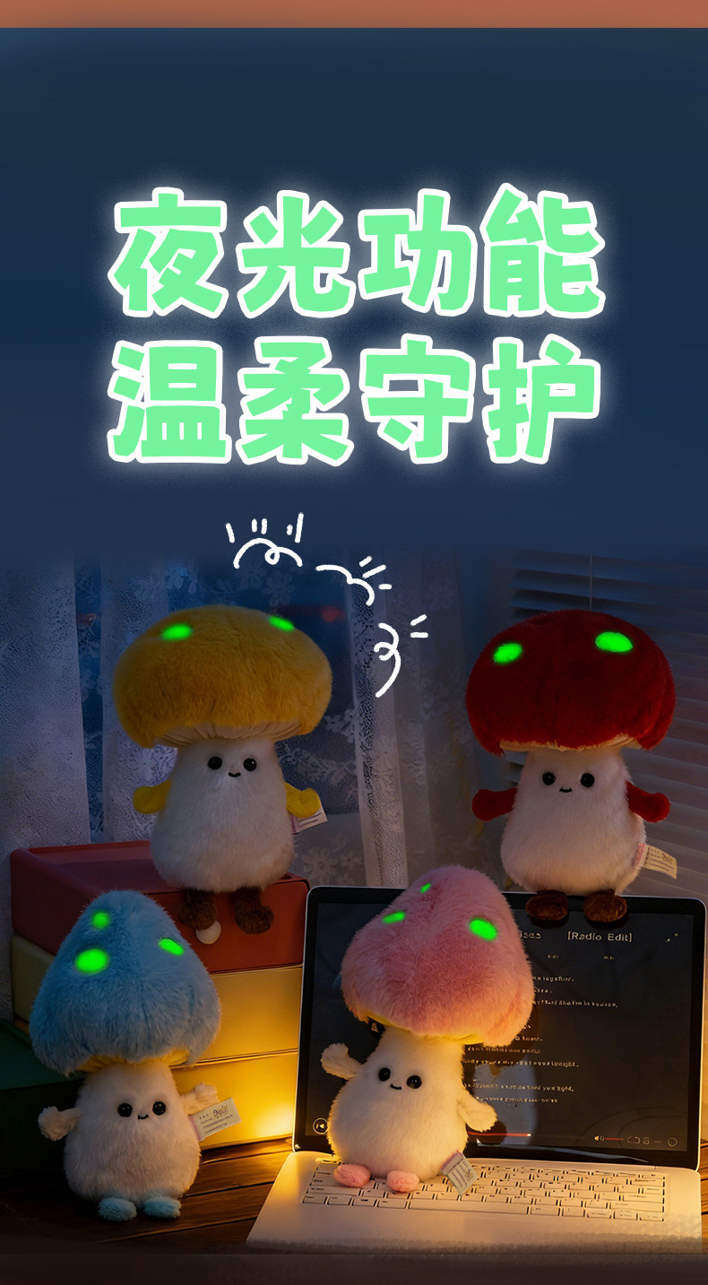 创意夜光蘑菇毛绒玩具儿童安抚玩偶学习搭子办公桌摆娃娃跨境批发