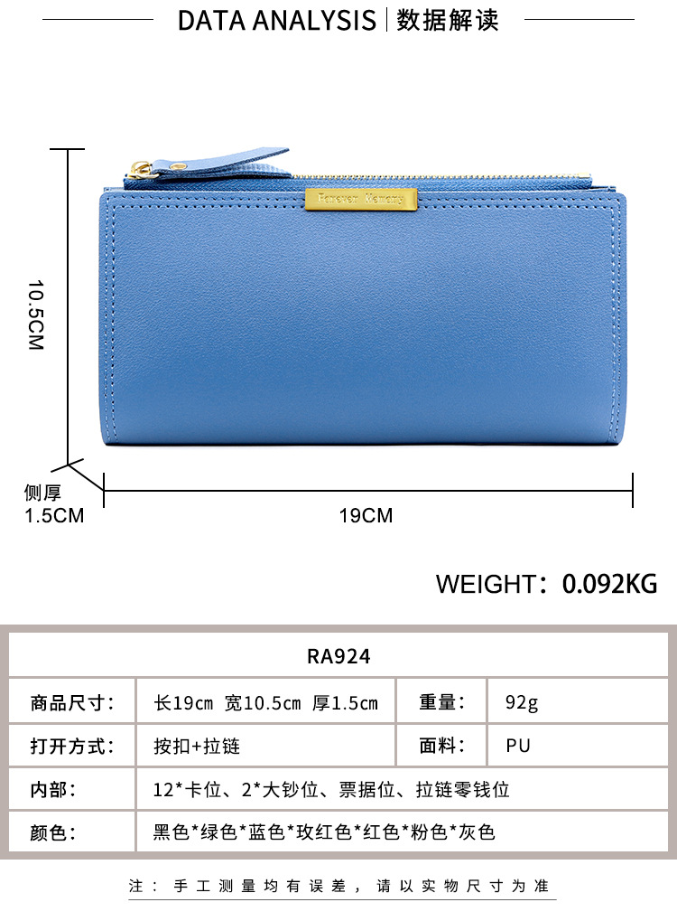 新款钱包女士韩版长款钱包多卡位拉链袋女钱夹手拿包跨境wallet