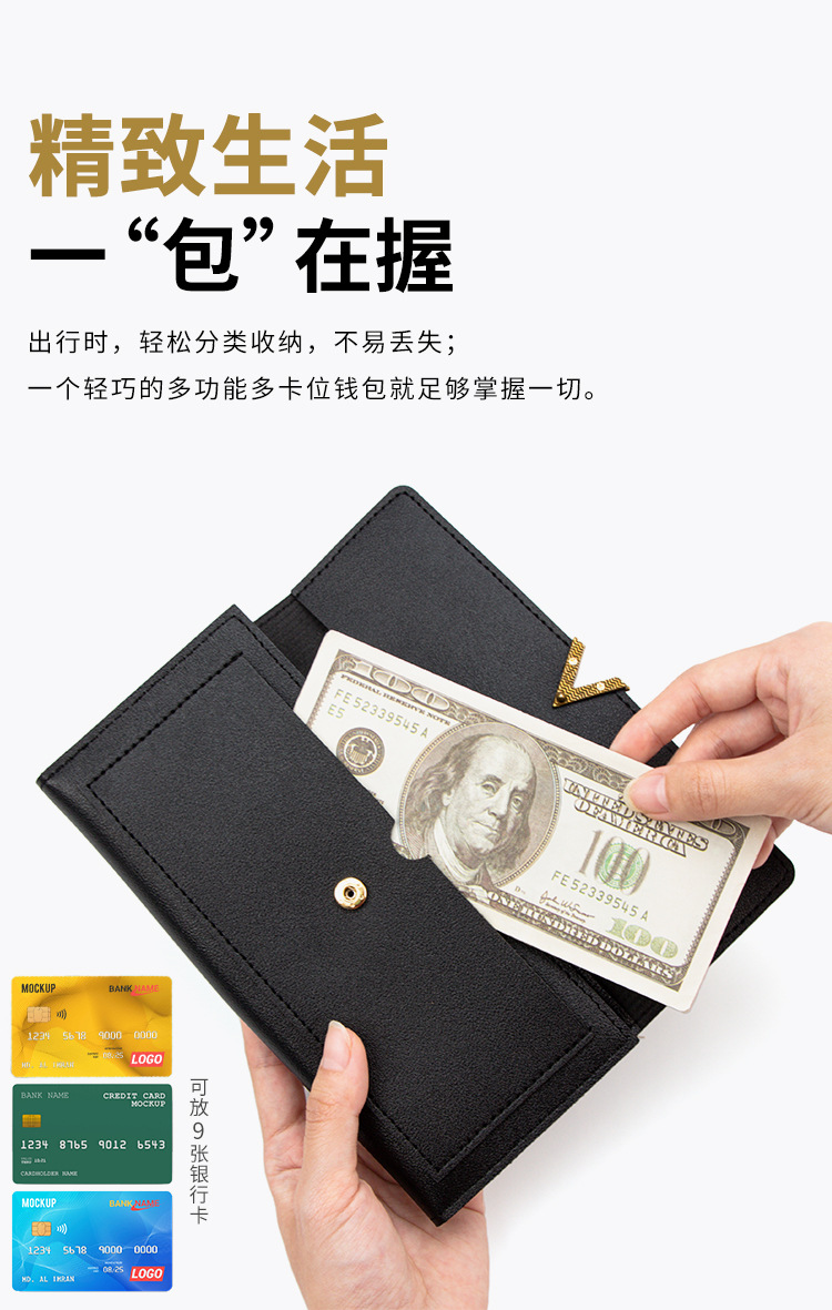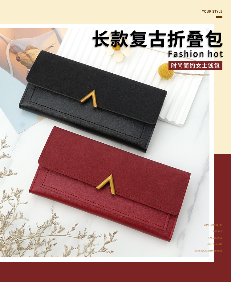 新款时尚简约女士钱包pu三折包长款钱包钱夹多卡位卡包手拿包批发