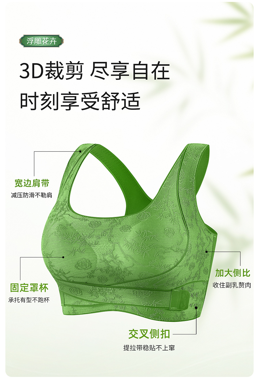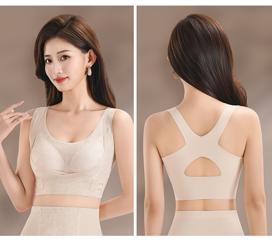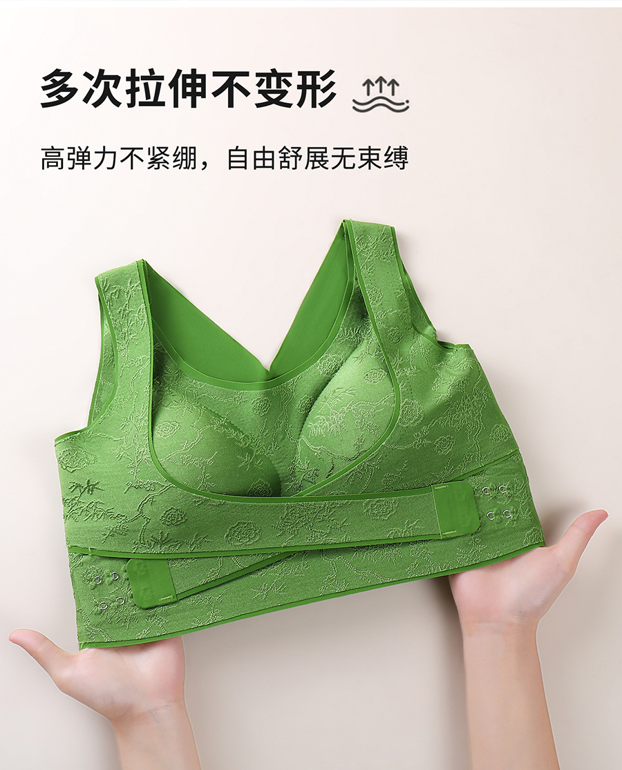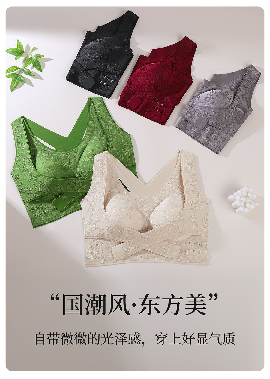 国风浮雕无痕聚拢收副乳文胸交叉侧扣提拉美背大胸显小运动内衣女