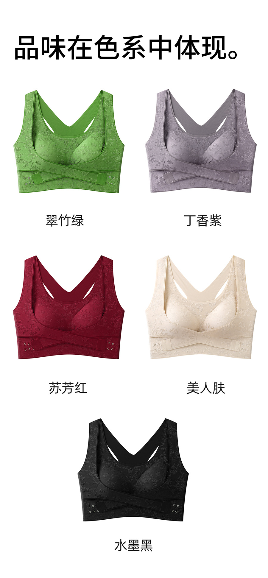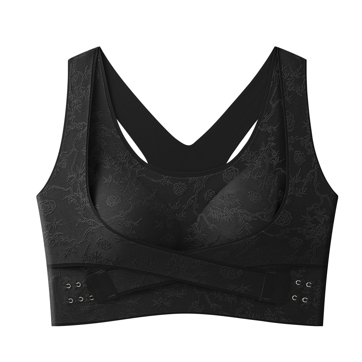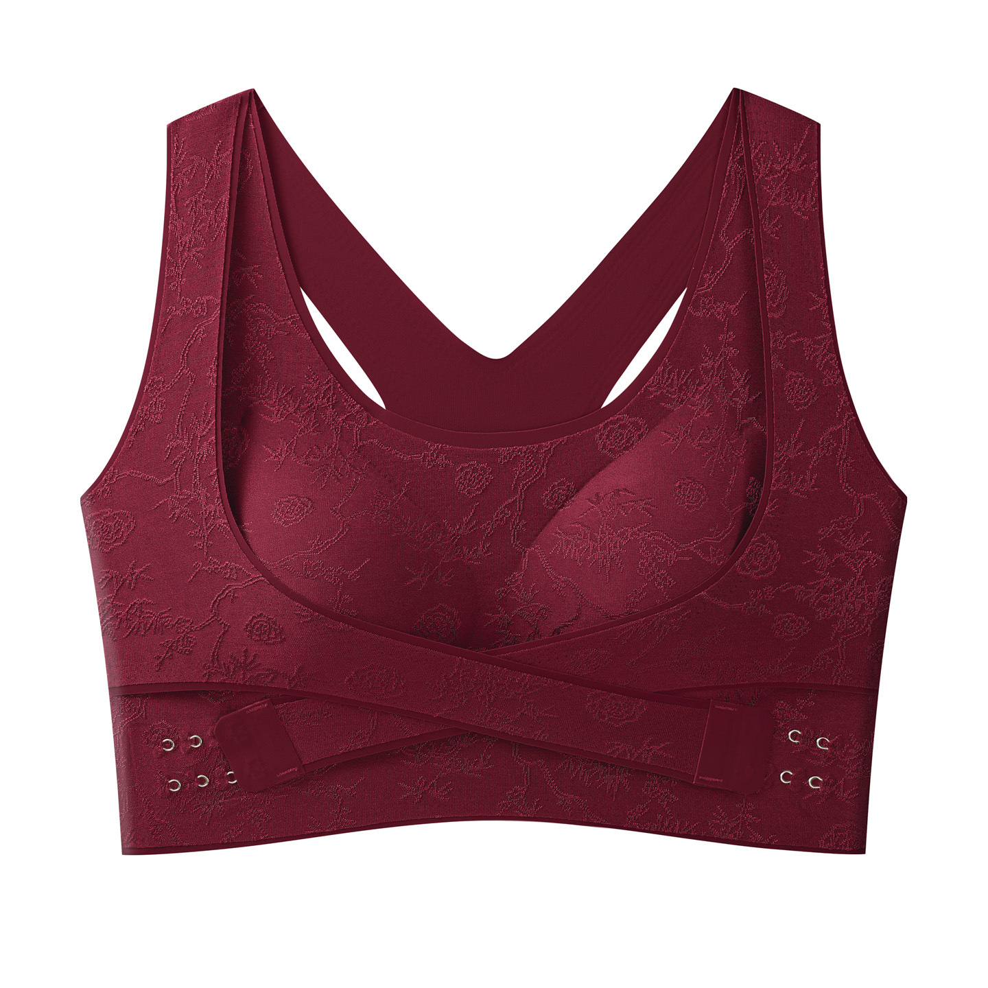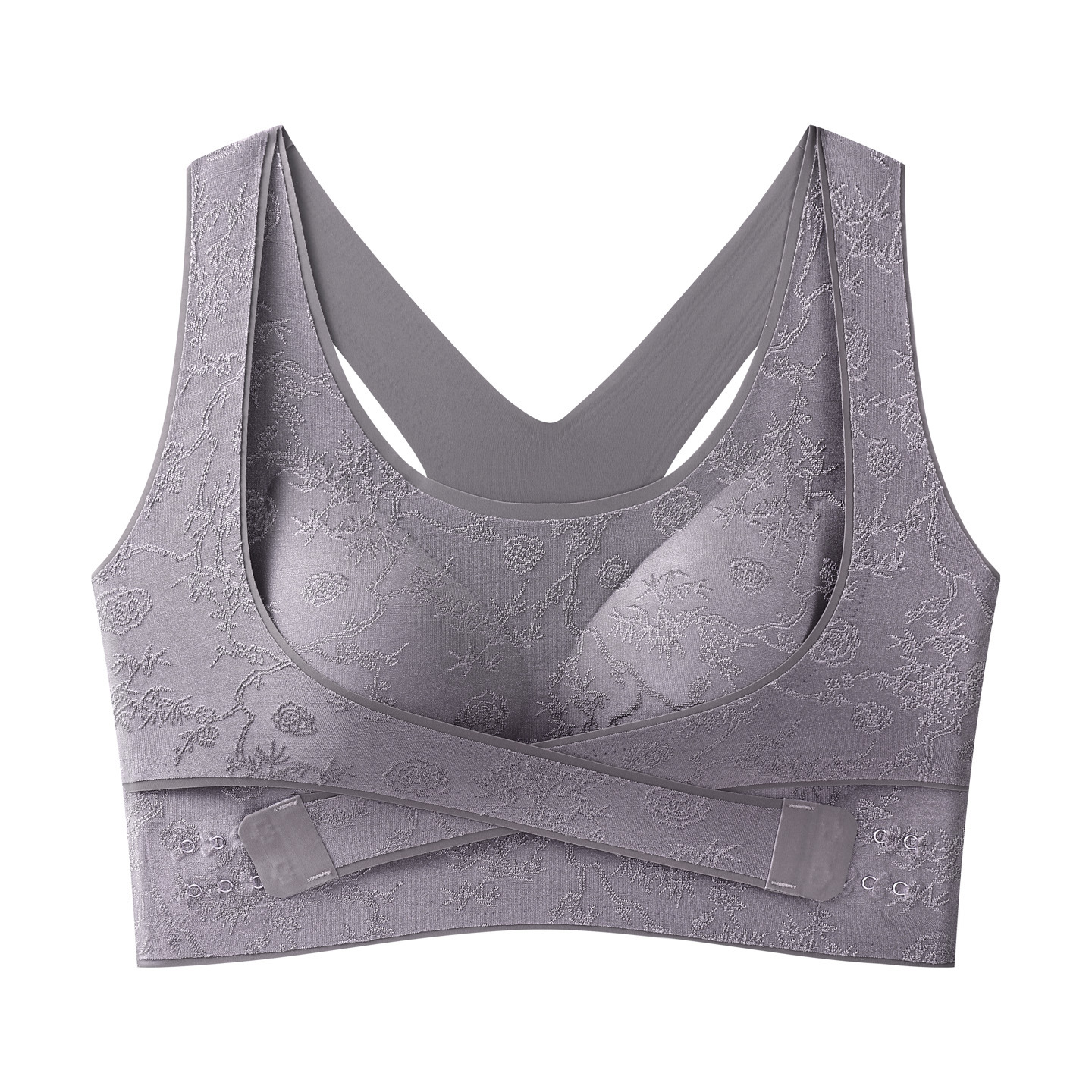 国风浮雕无痕聚拢收副乳文胸交叉侧扣提拉美背大胸显小运动内衣女