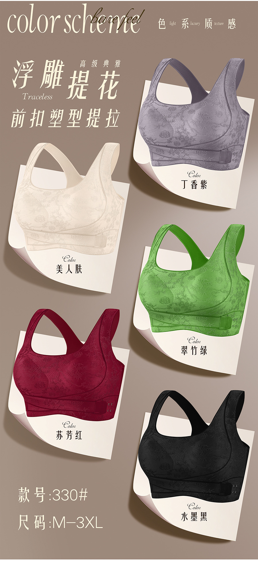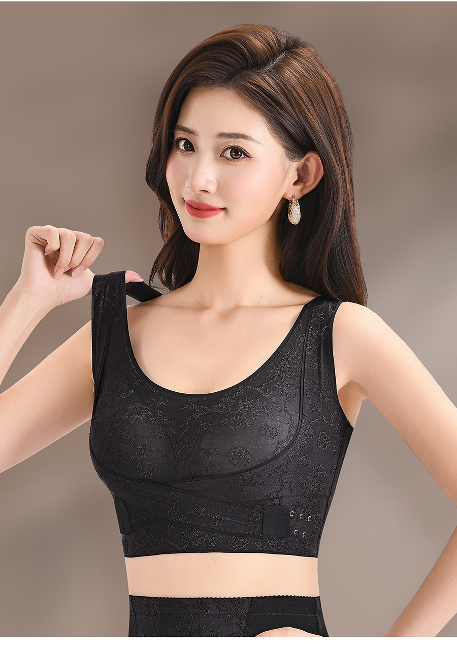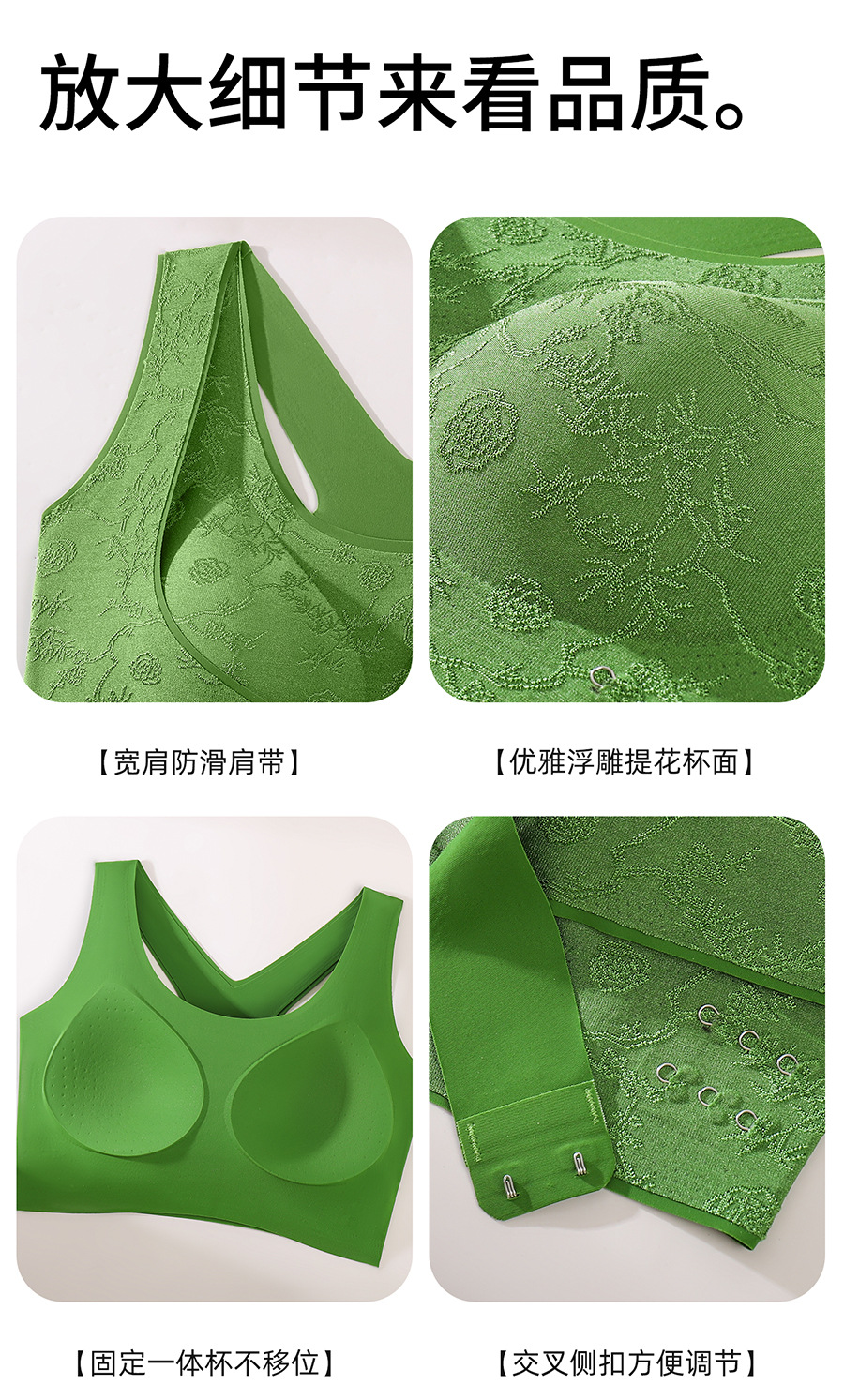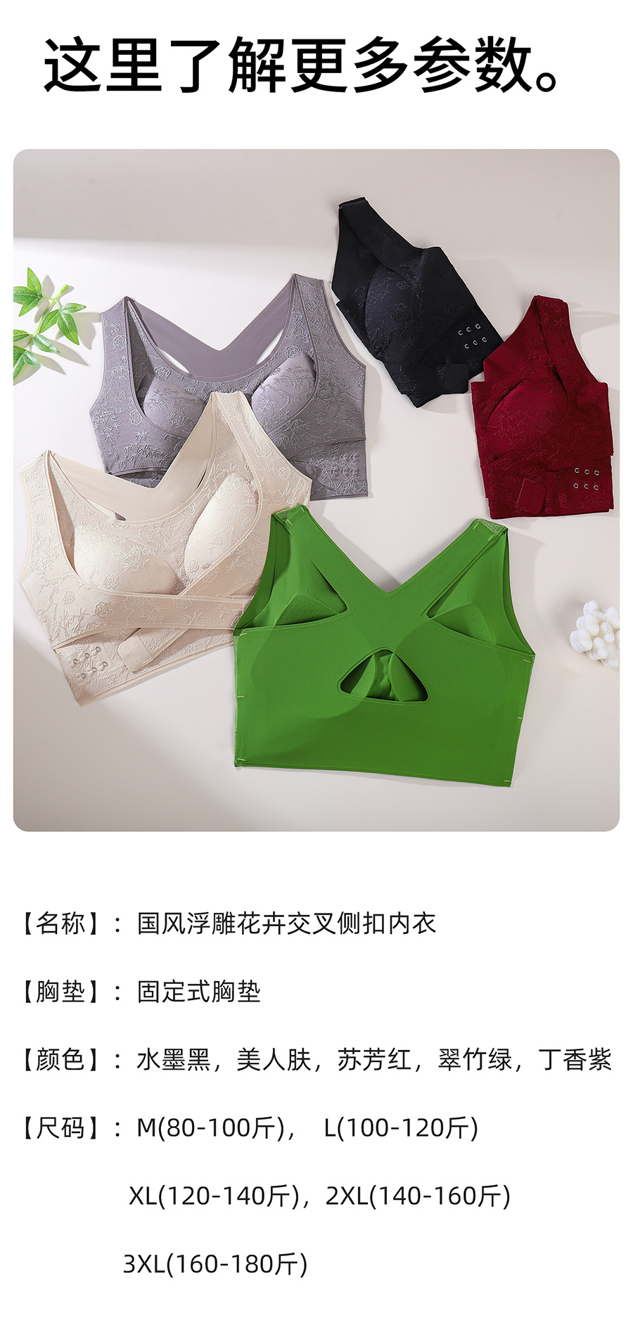 国风浮雕无痕聚拢收副乳文胸交叉侧扣提拉美背大胸显小运动内衣女