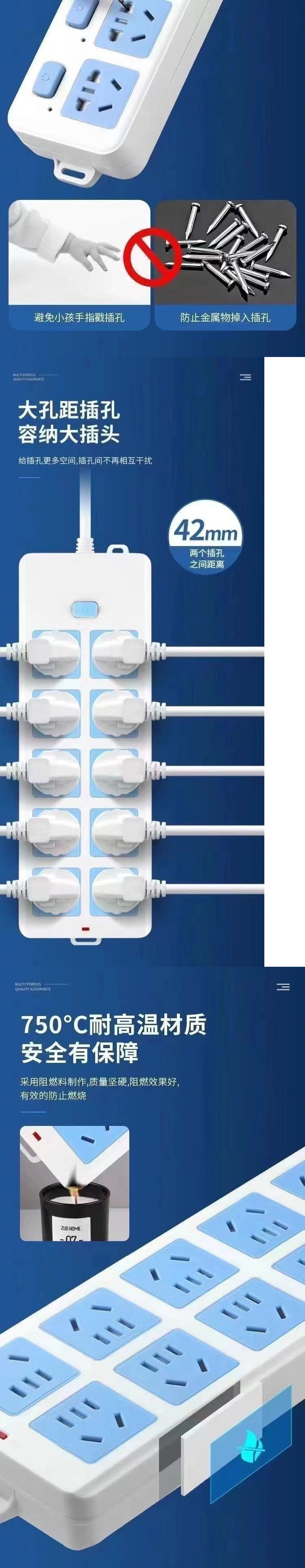 正版公纯铜插座排插大功率接线板插排线板家用无线带线宿舍插板