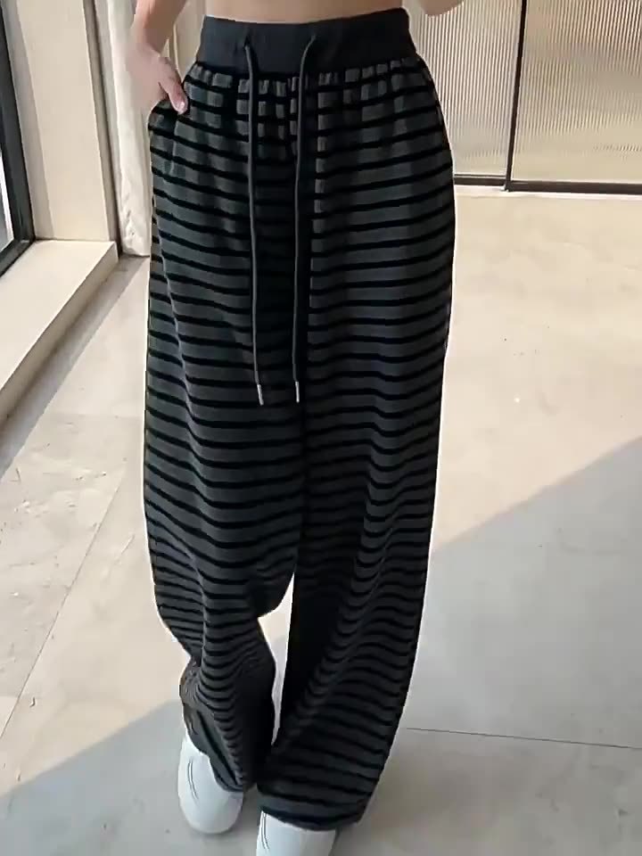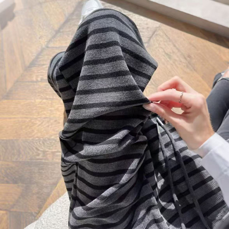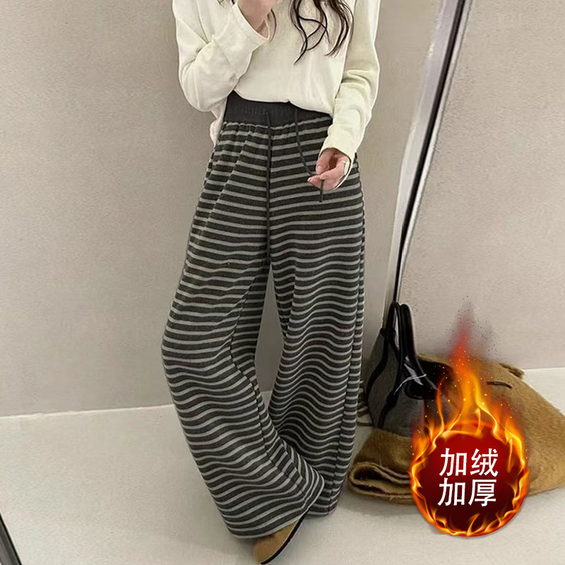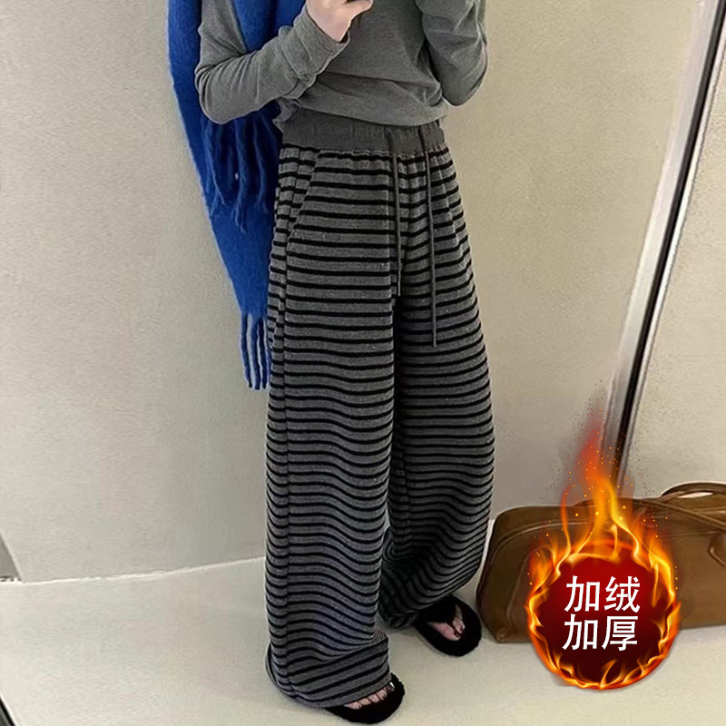 2025秋冬新款宽松慵懒感高腰垂感显瘦拖地长裤舒适撞色条纹阔腿女