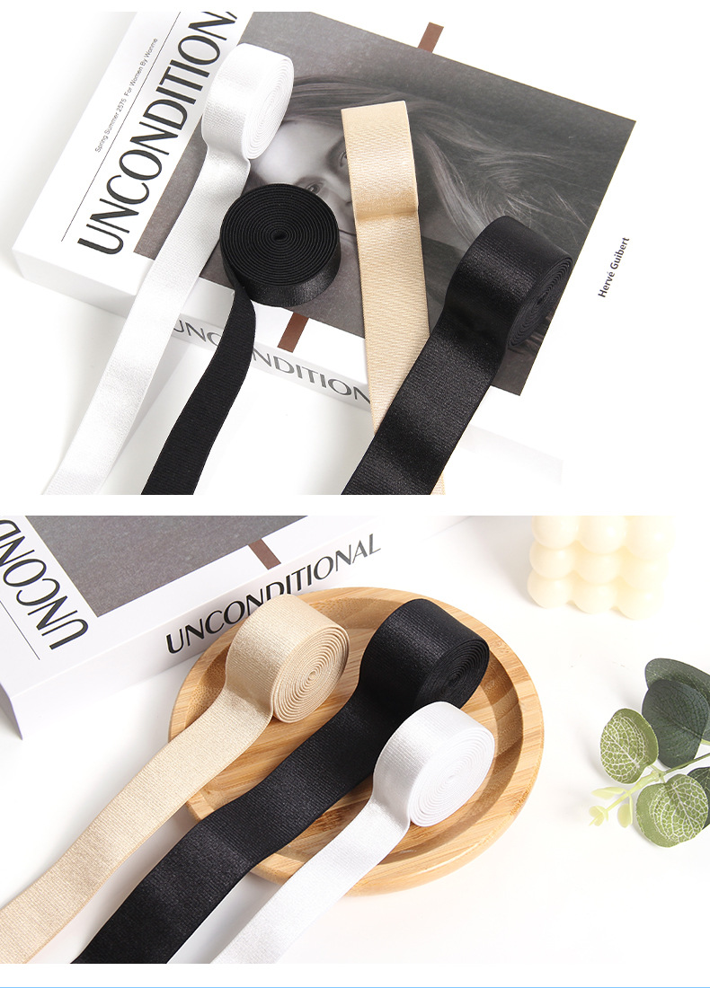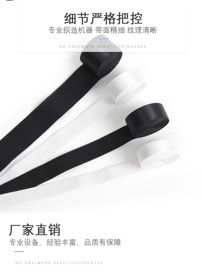黑白涤纶磨毛光面肩带美背服装辅料腰头头饰松紧带娃衣多用途