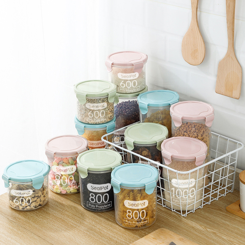 厨房带盖密封罐 零食五谷杂粮收纳储存罐子 塑料食品储物罐奶粉罐