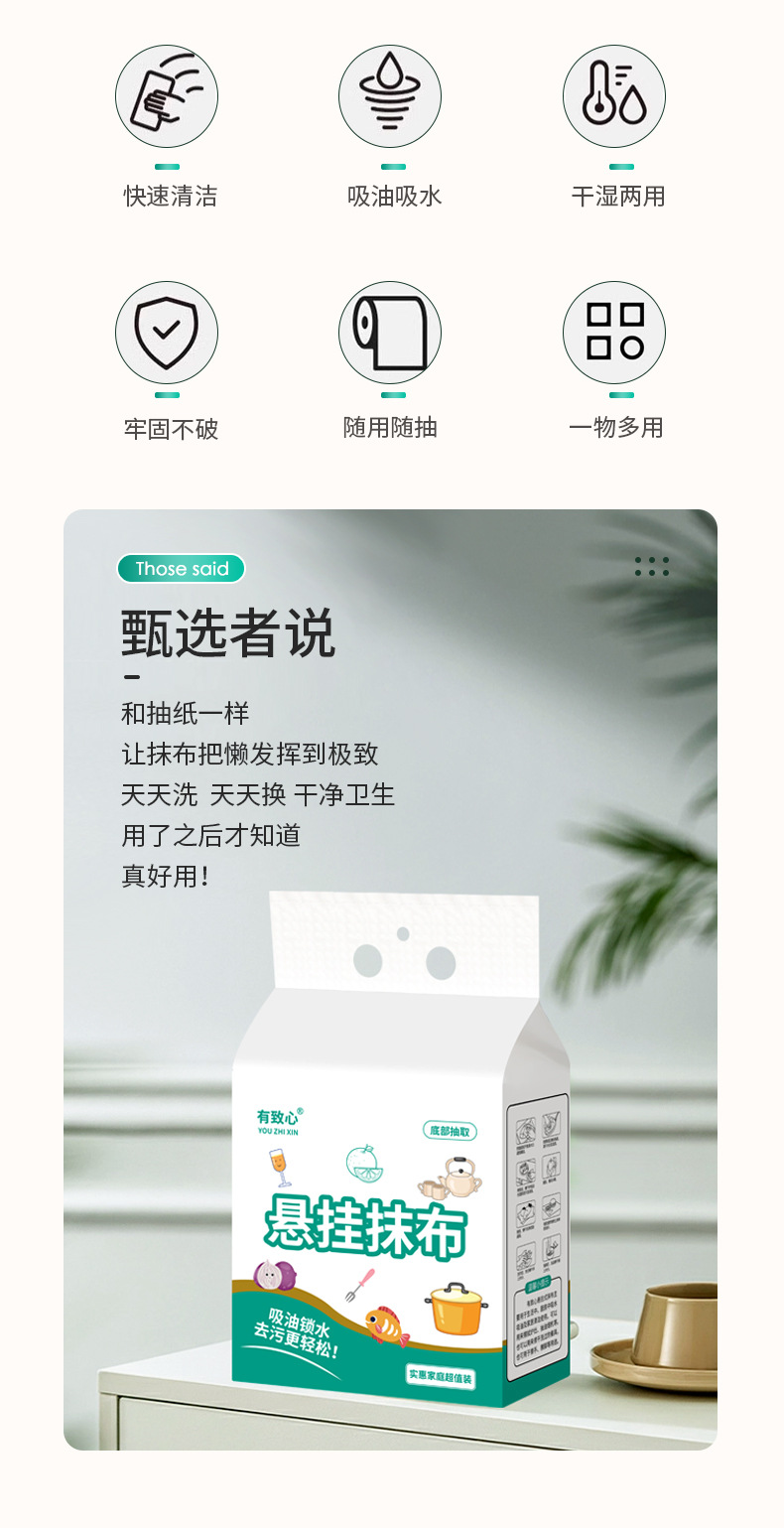 懒人一次性抹布纸巾厨房吸水吸油专用纸干湿两用日用品超大底部抽