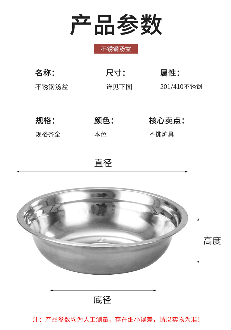 不锈钢汤盆家用盆面盆小盆厨房用盆洗菜盆和面盆不锈钢肉面盆批发