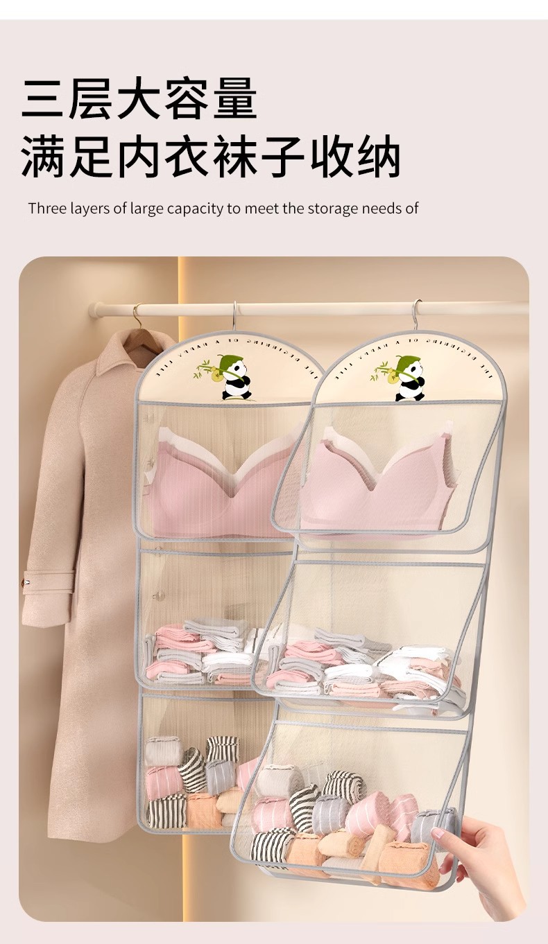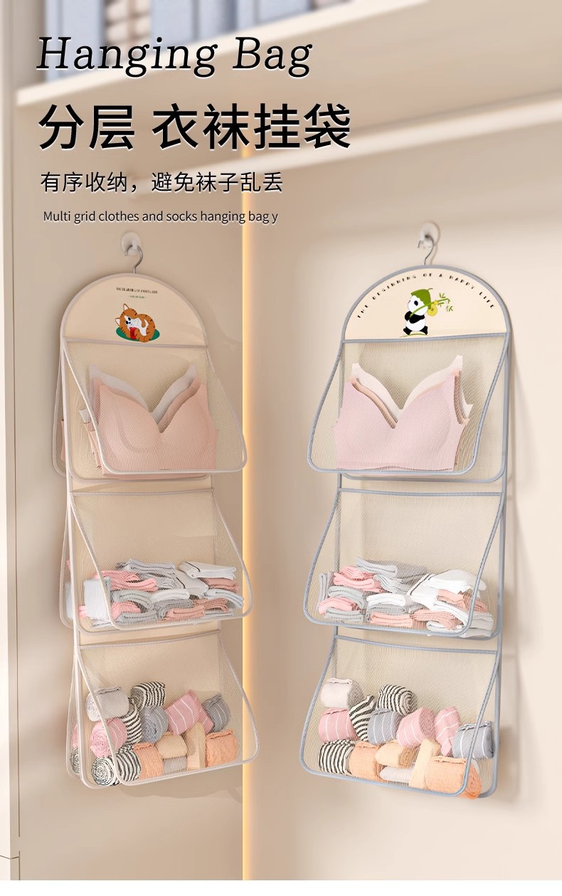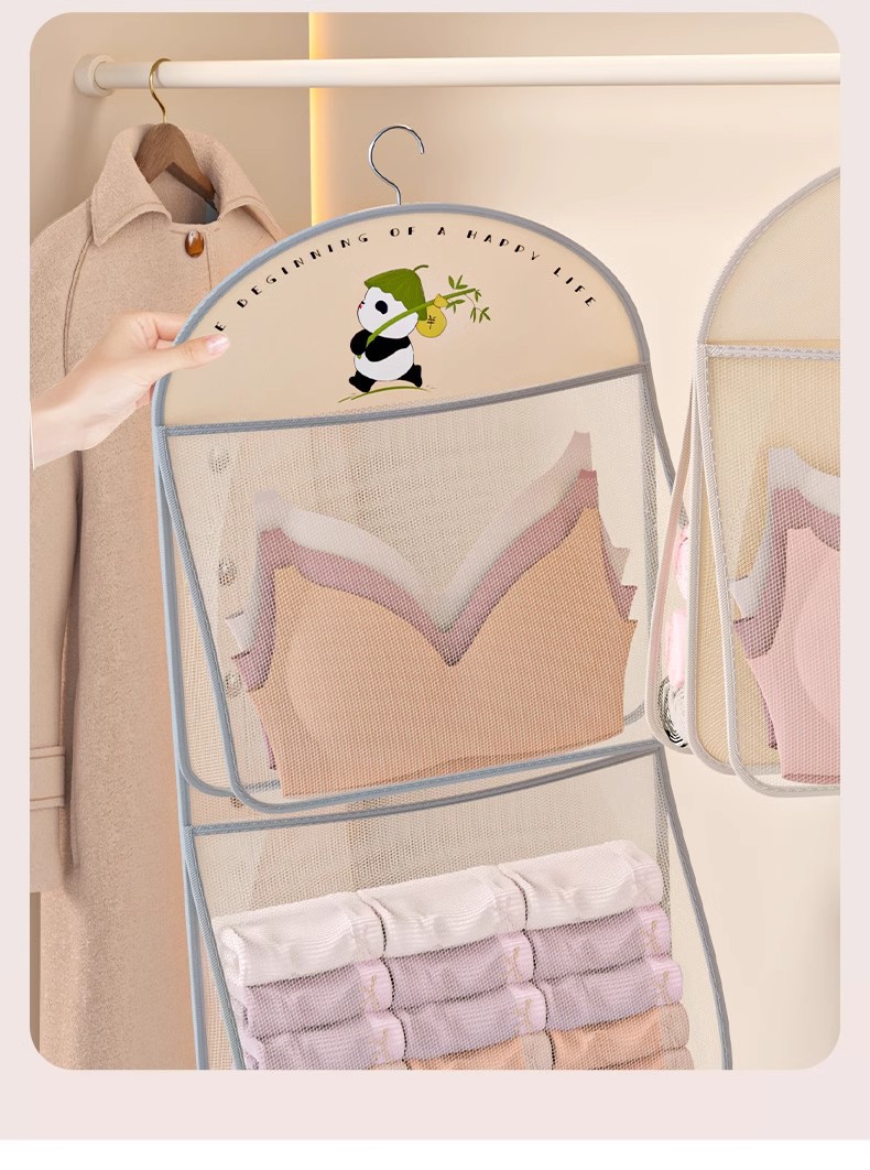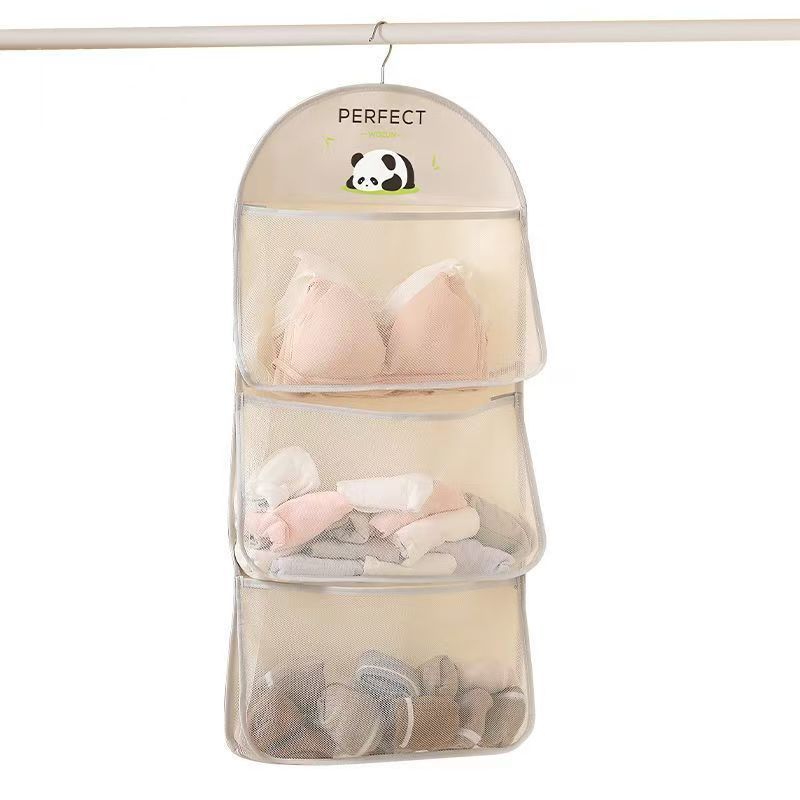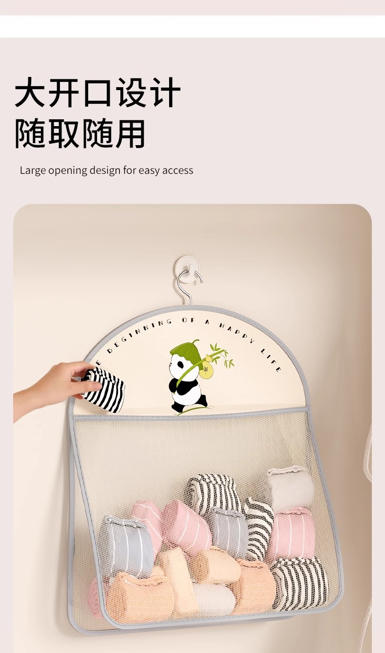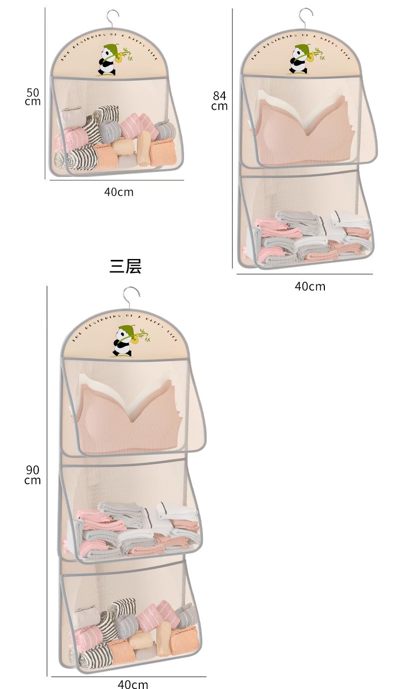 多层熊猫袜子内衣收纳袋网纱透气水洗折叠文胸衣服衣柜门后挂袋