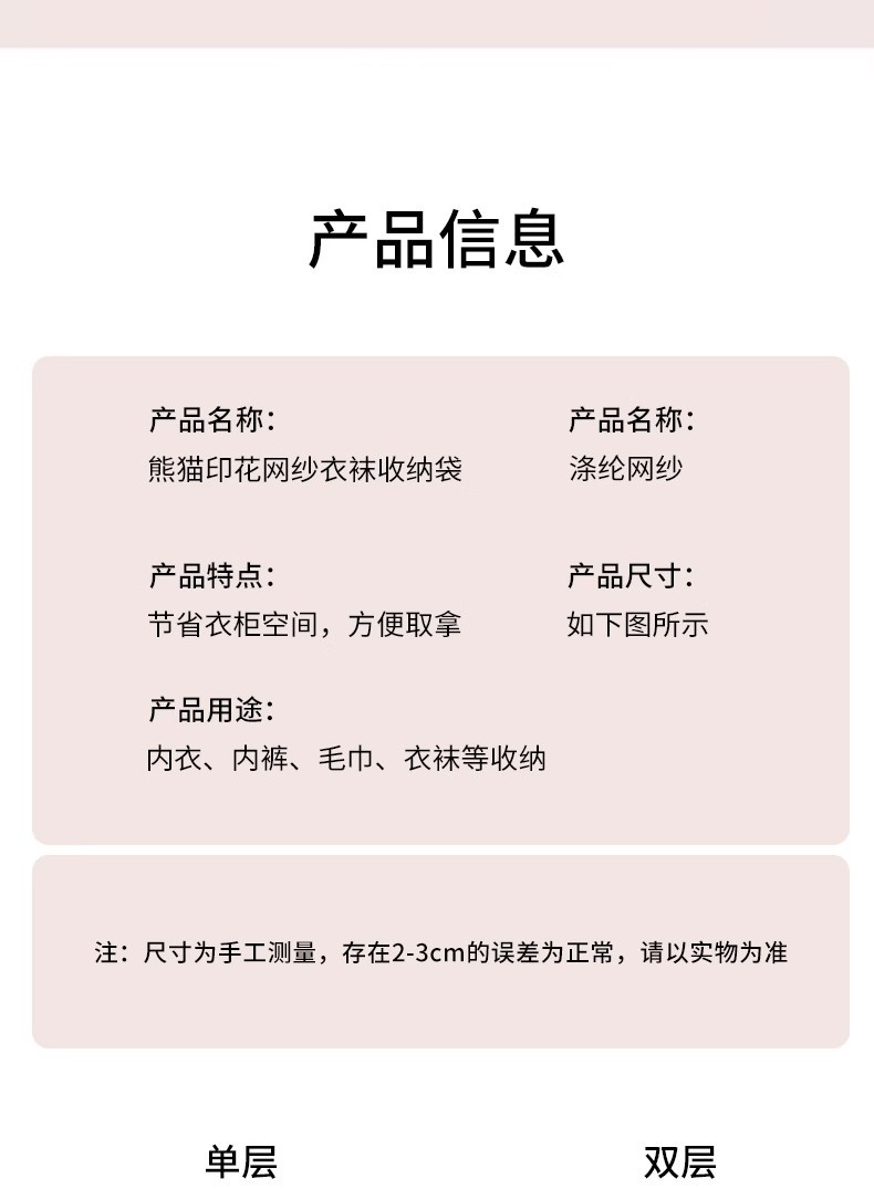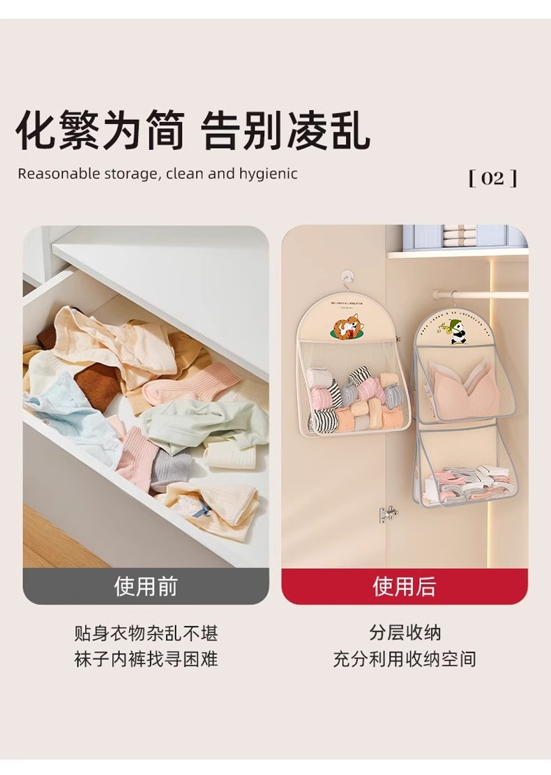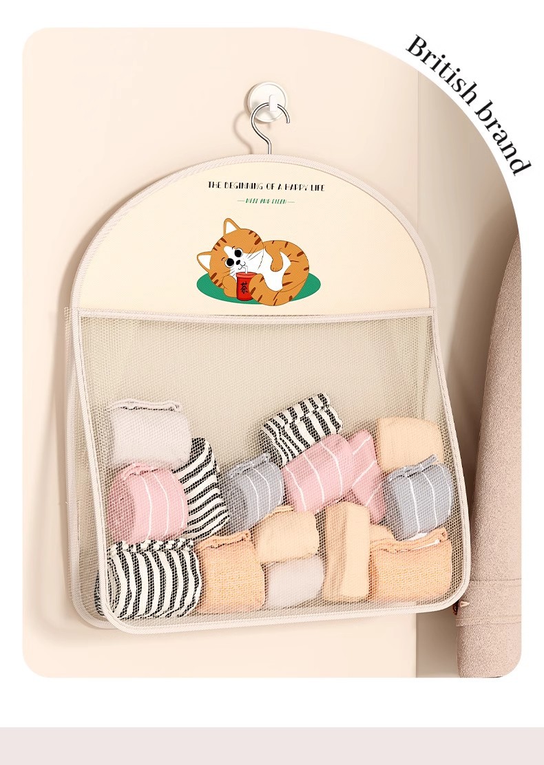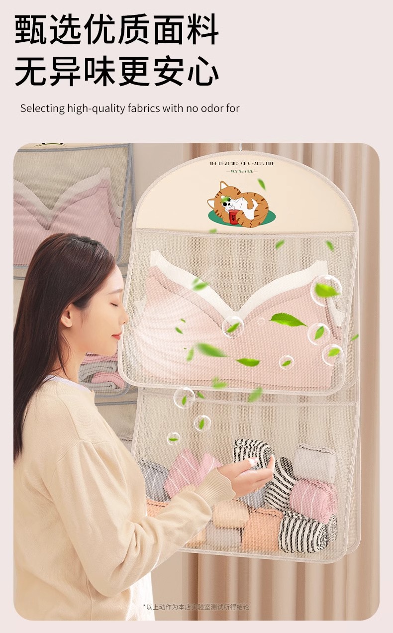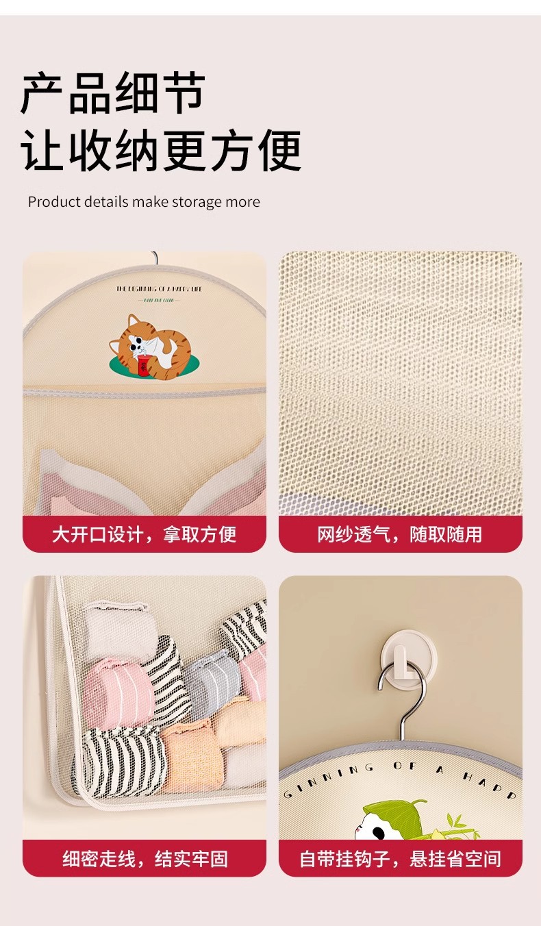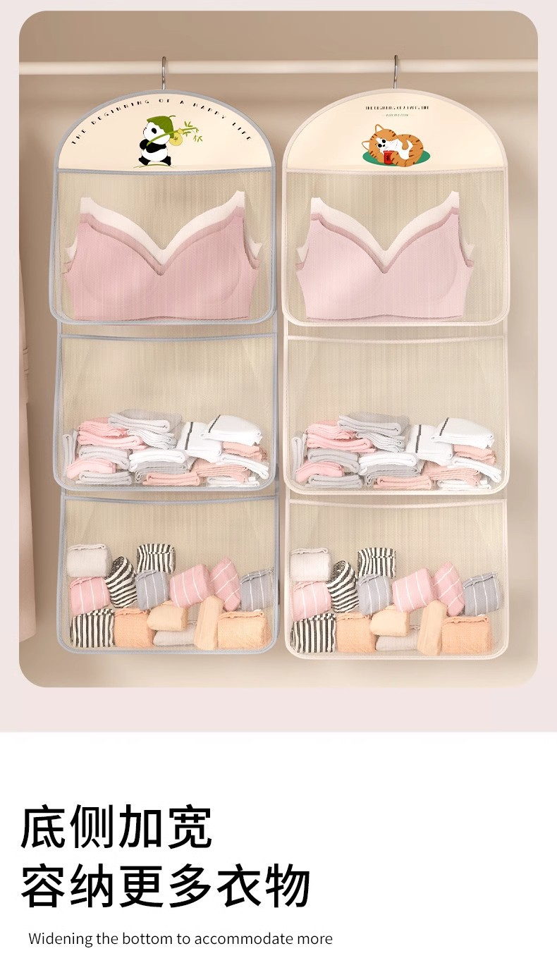 多层熊猫袜子内衣收纳袋网纱透气水洗折叠文胸衣服衣柜门后挂袋