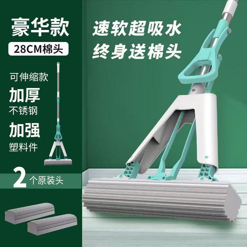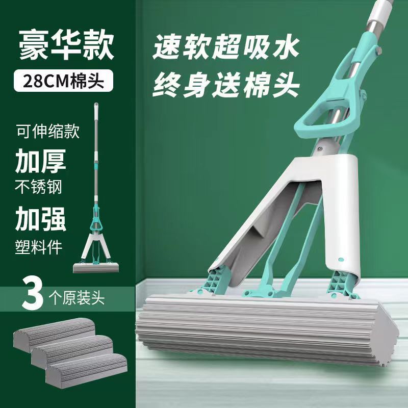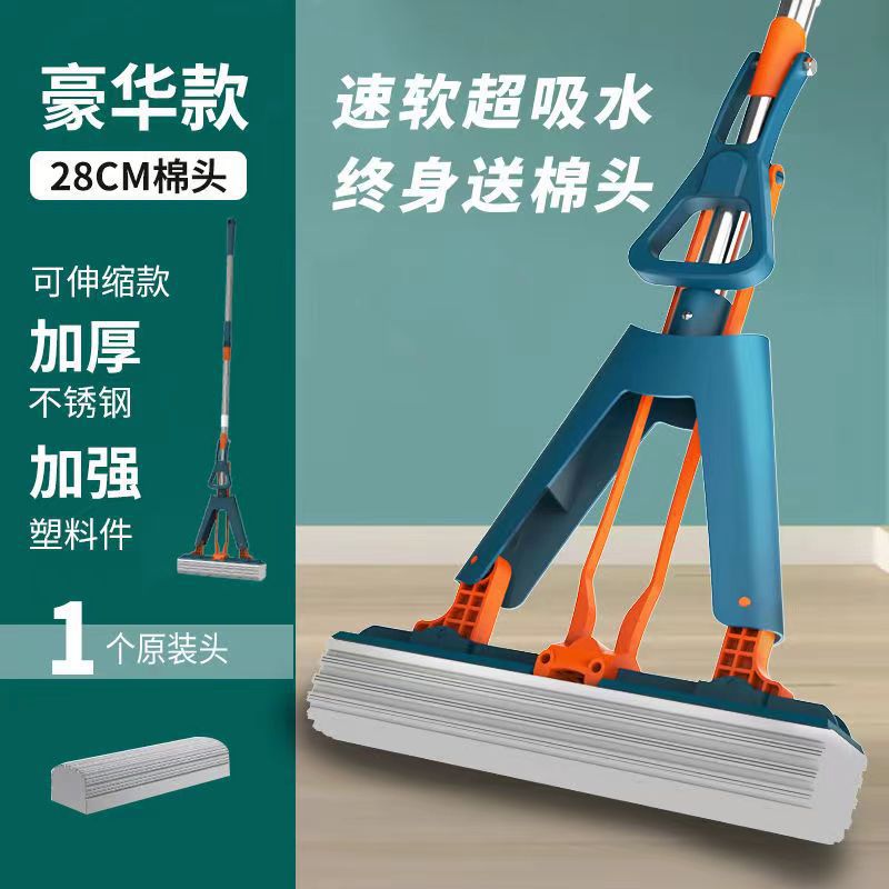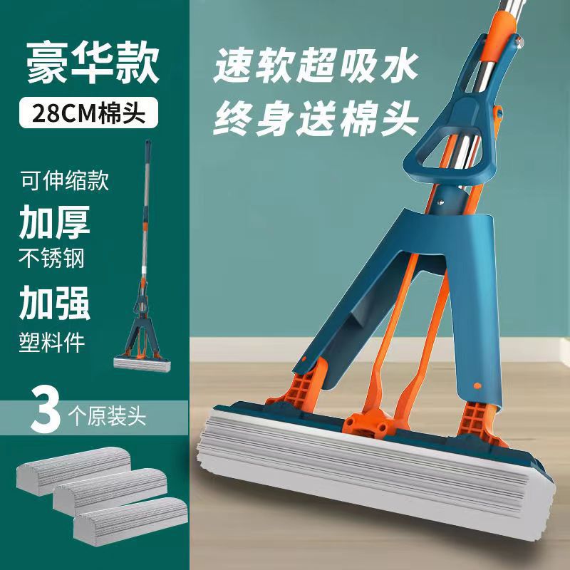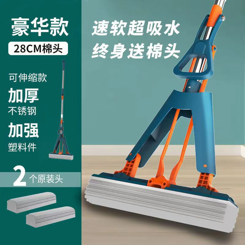 工厂自销海绵拖把胶棉拖把家用懒人免手洗拖把对折式吸水拖把批发