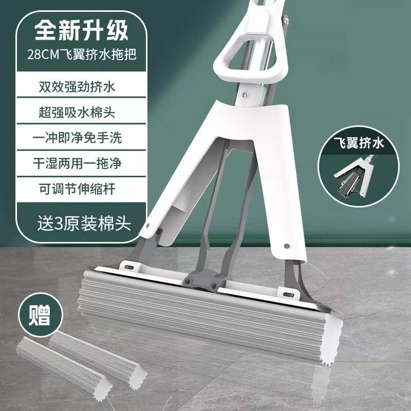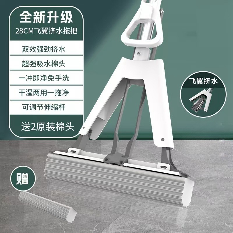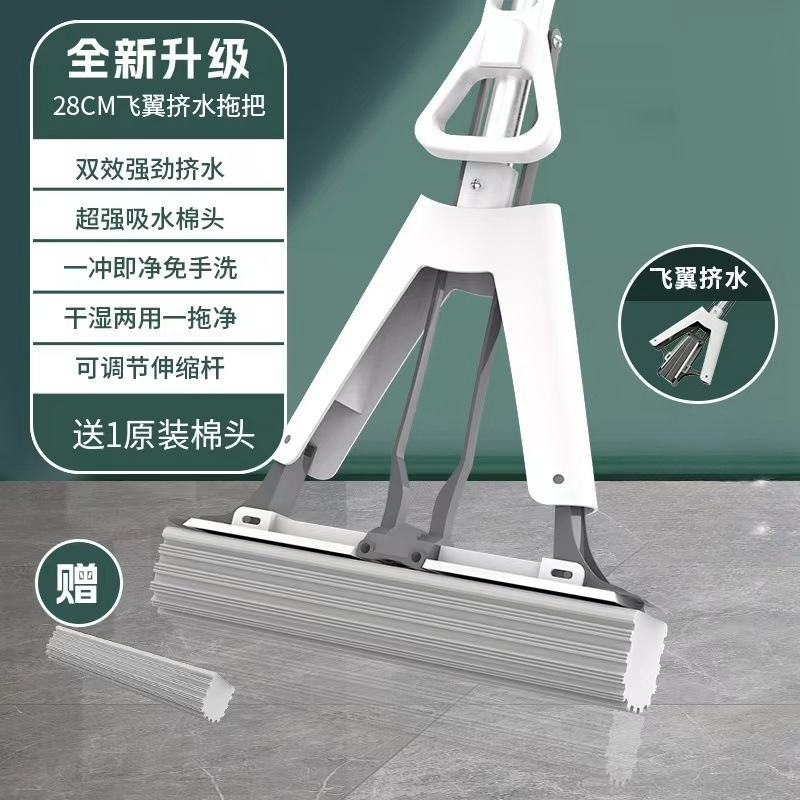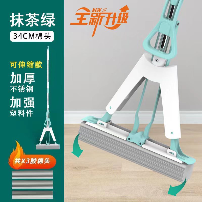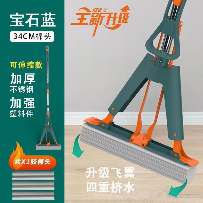 工厂自销海绵拖把胶棉拖把家用懒人免手洗拖把对折式吸水拖把批发