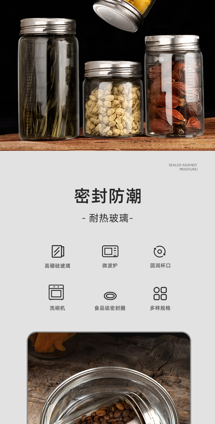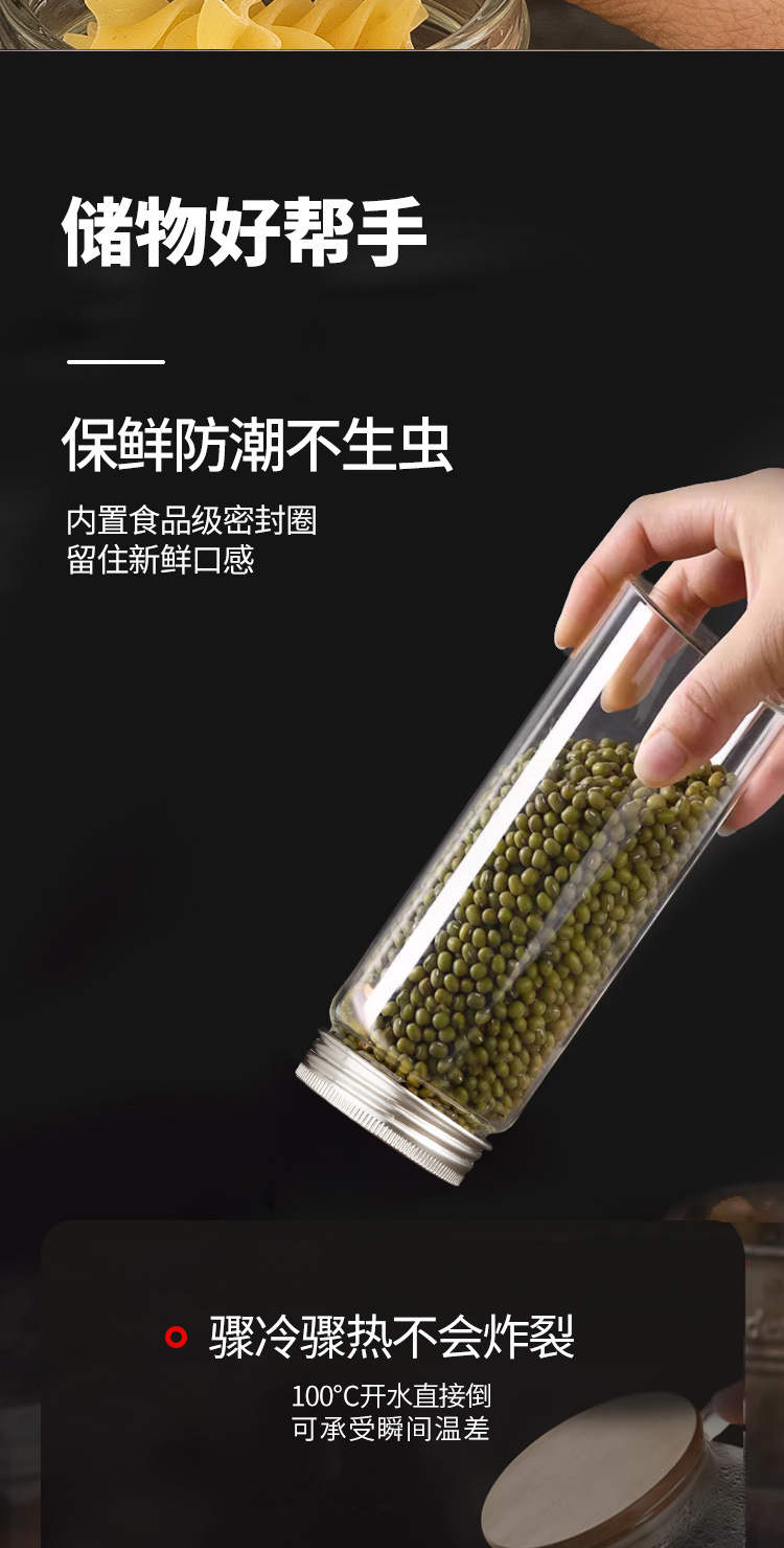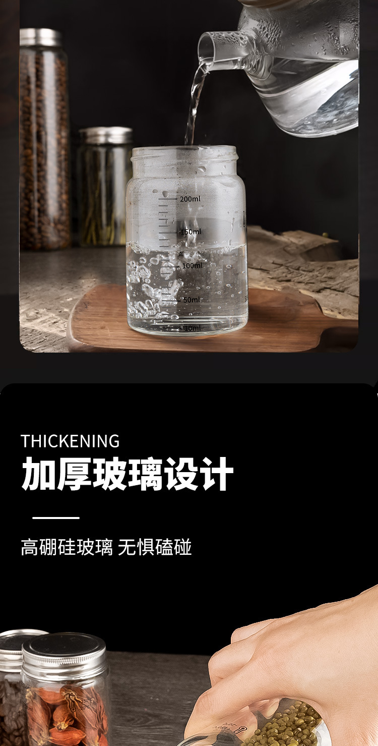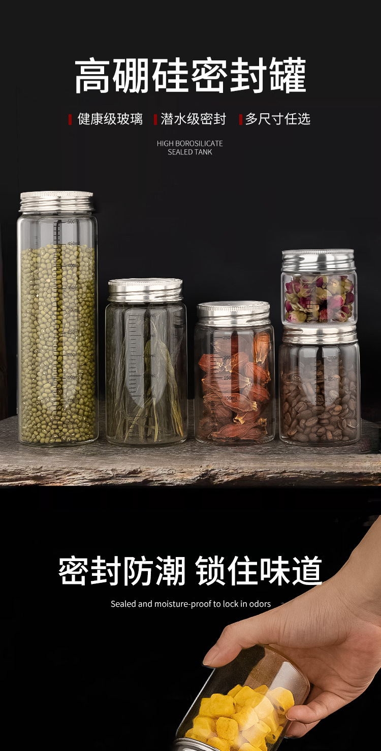 高硼硅玻璃瓶304不锈钢盖储物罐厨房调味品杂粮收纳罐玻璃密封罐