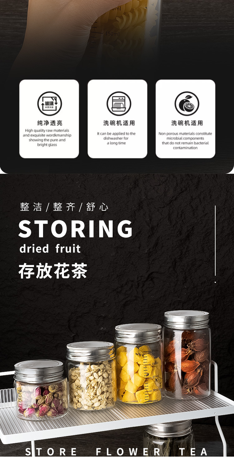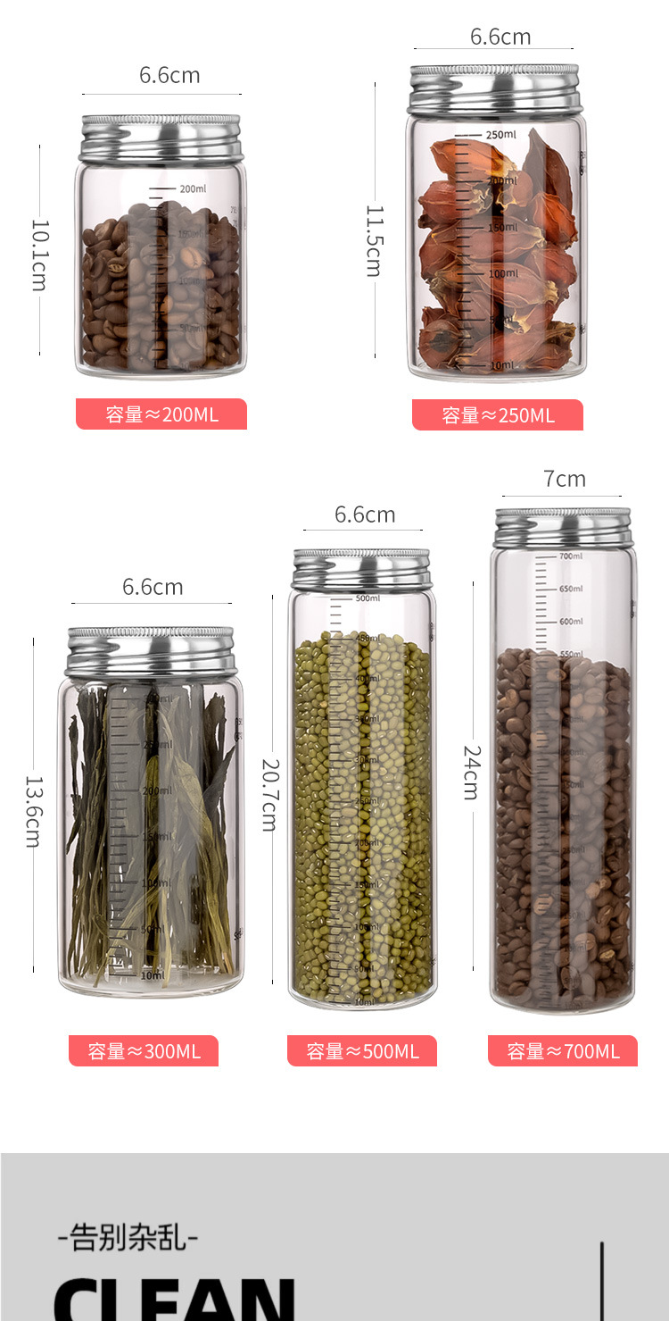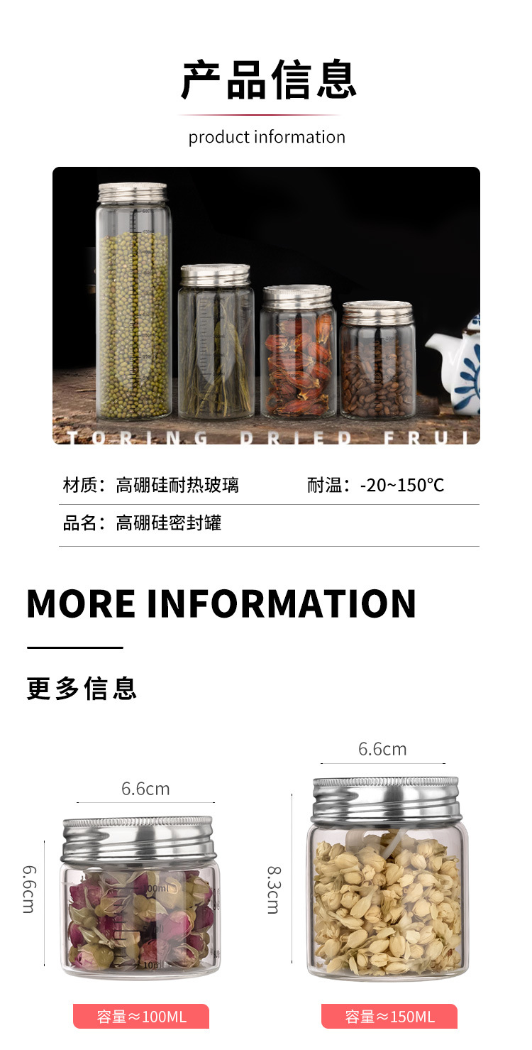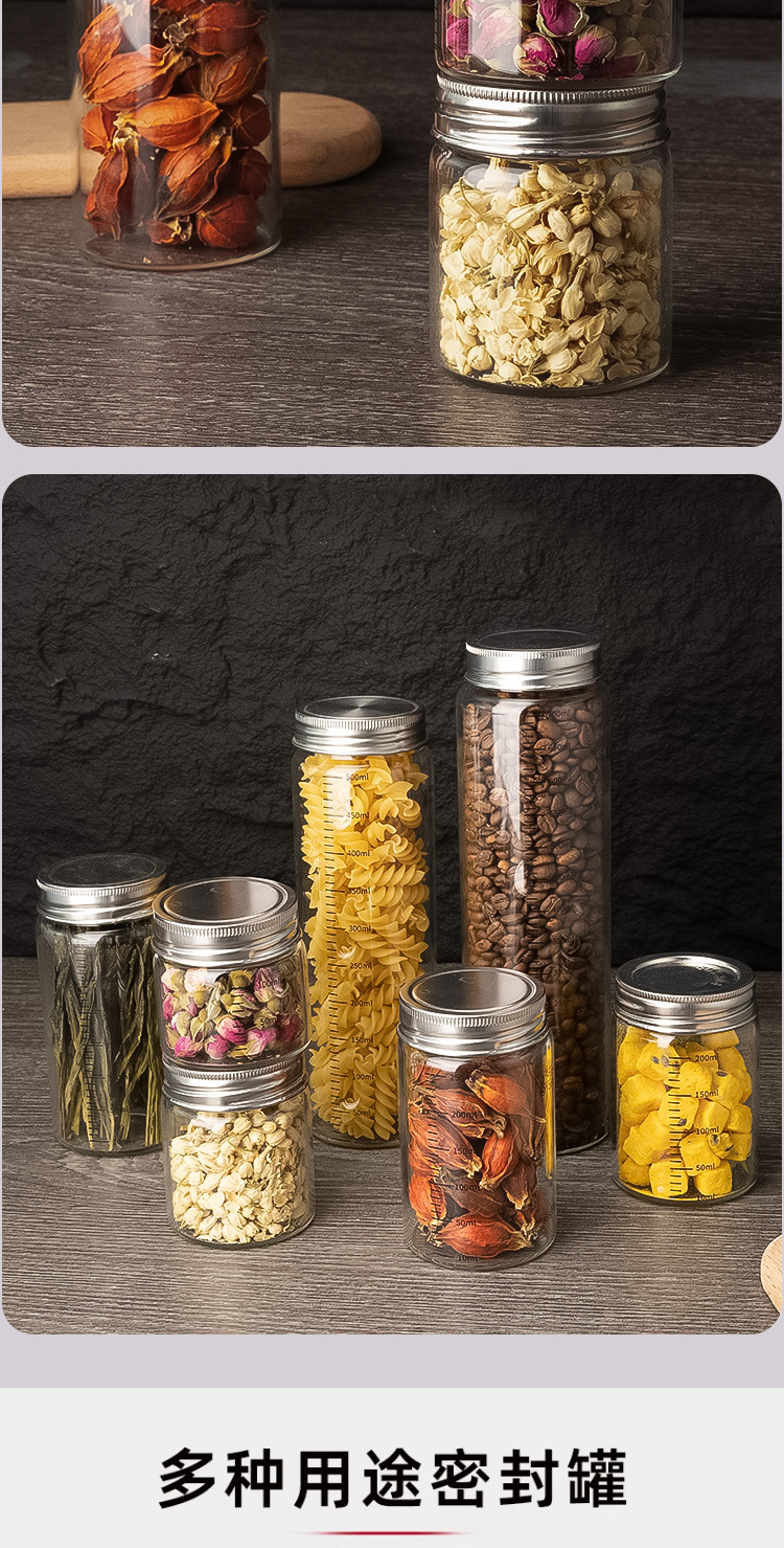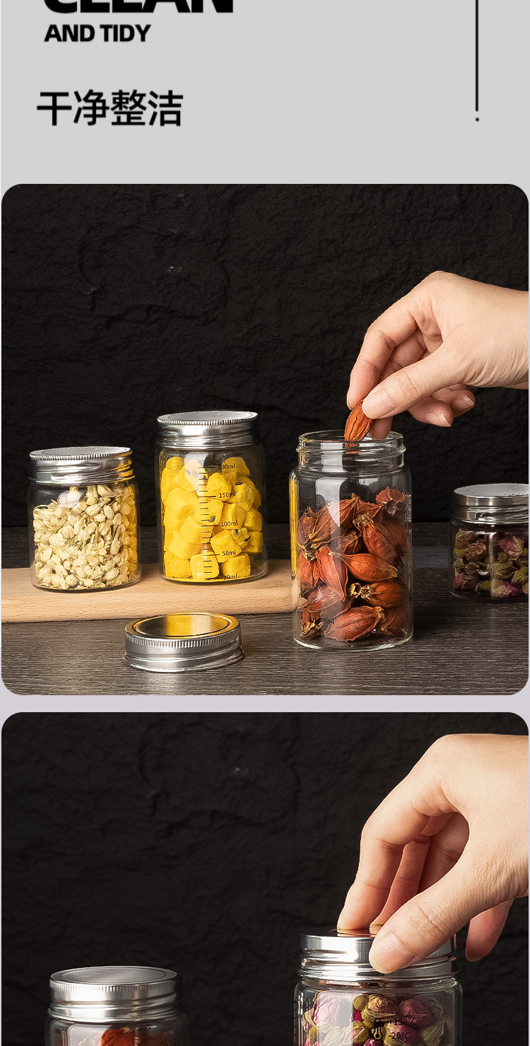 高硼硅玻璃瓶304不锈钢盖储物罐厨房调味品杂粮收纳罐玻璃密封罐