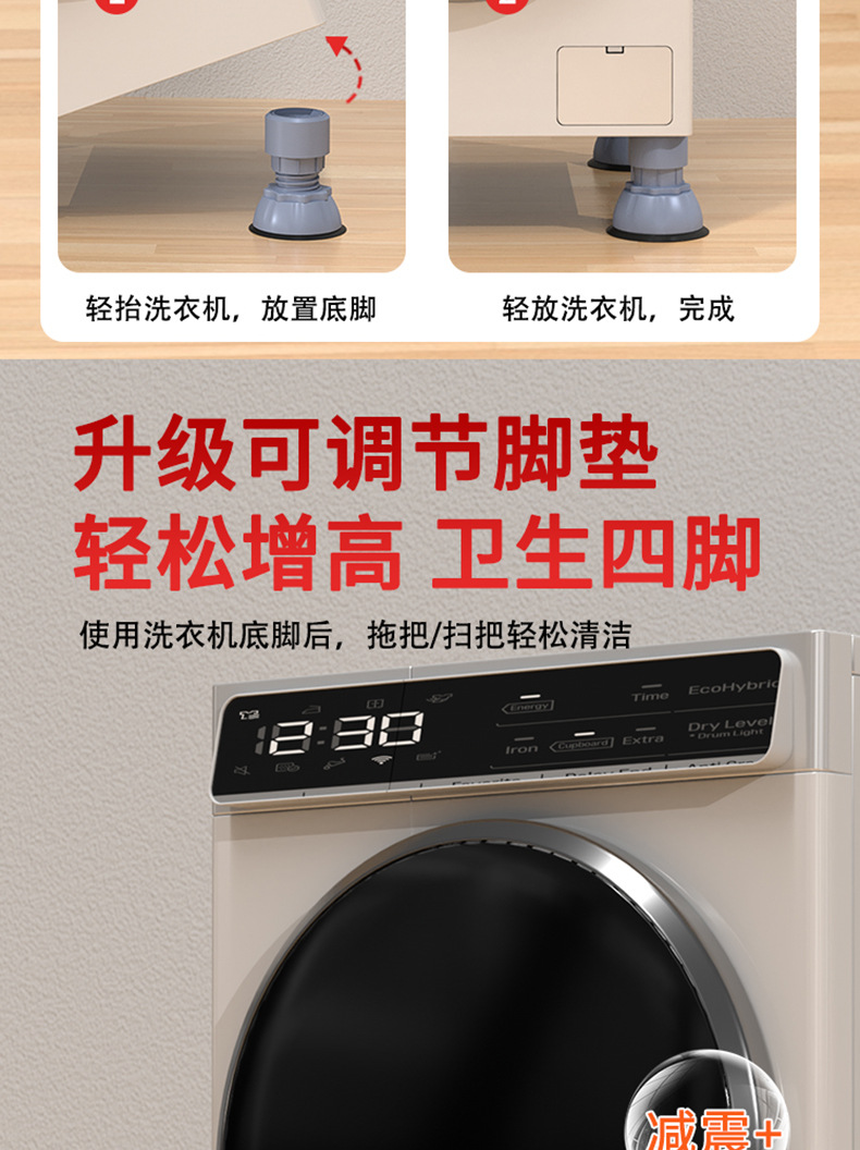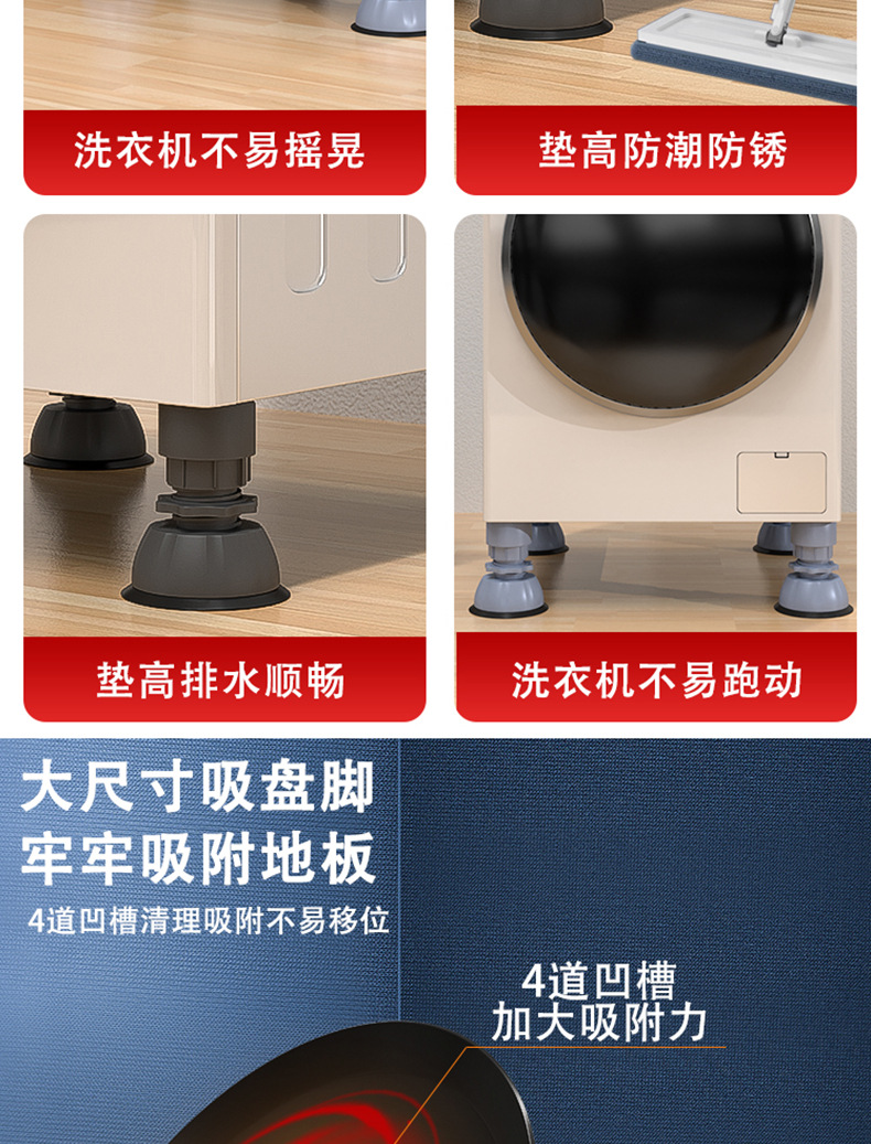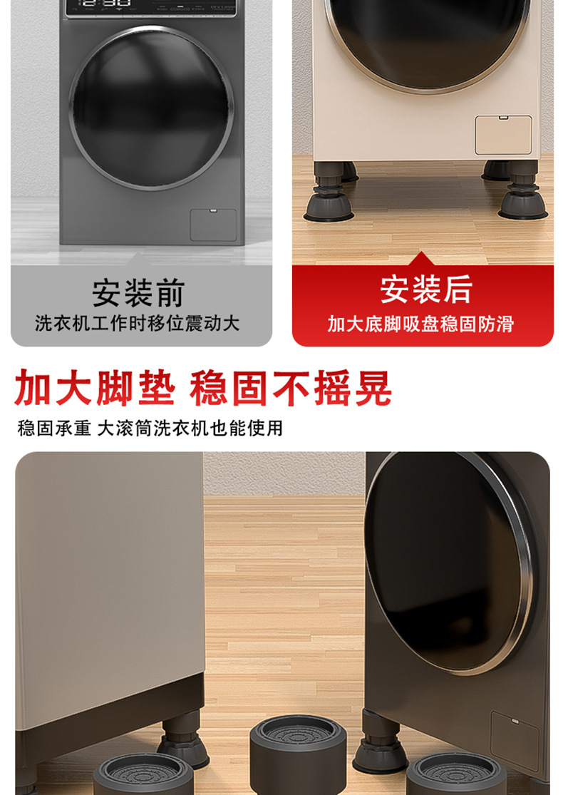 洗衣机防滑防震动脚垫加高滚筒减震静音垫子增高底座防跑固定神器