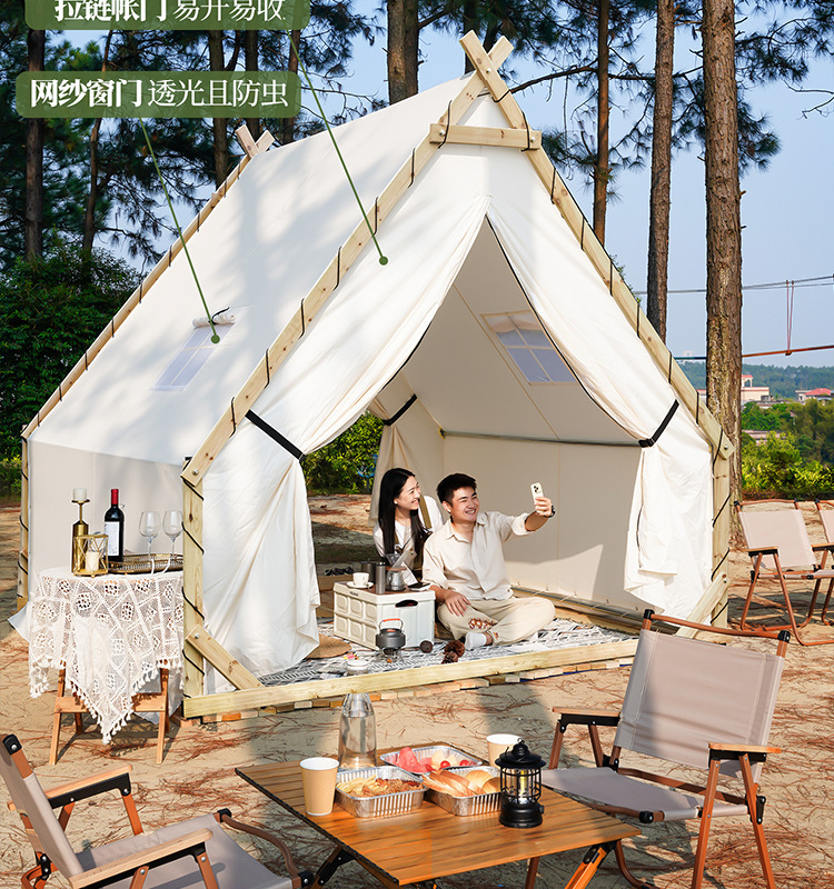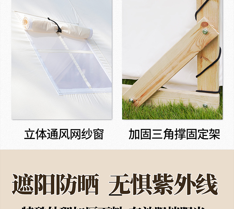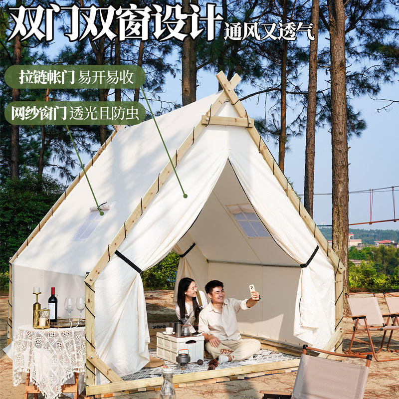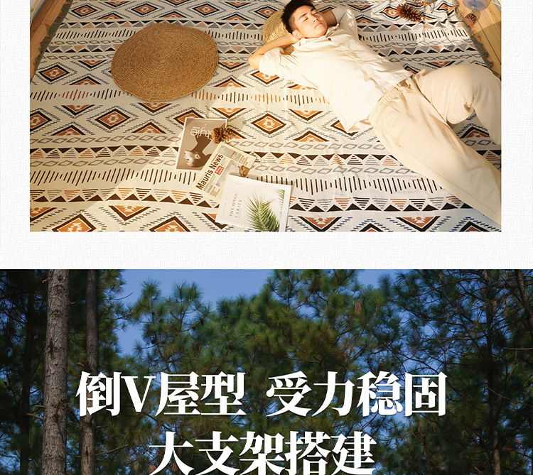 户外营地防晒遮阳棚野外烧烤防风防雨棚网红三角景区露营大型帐篷