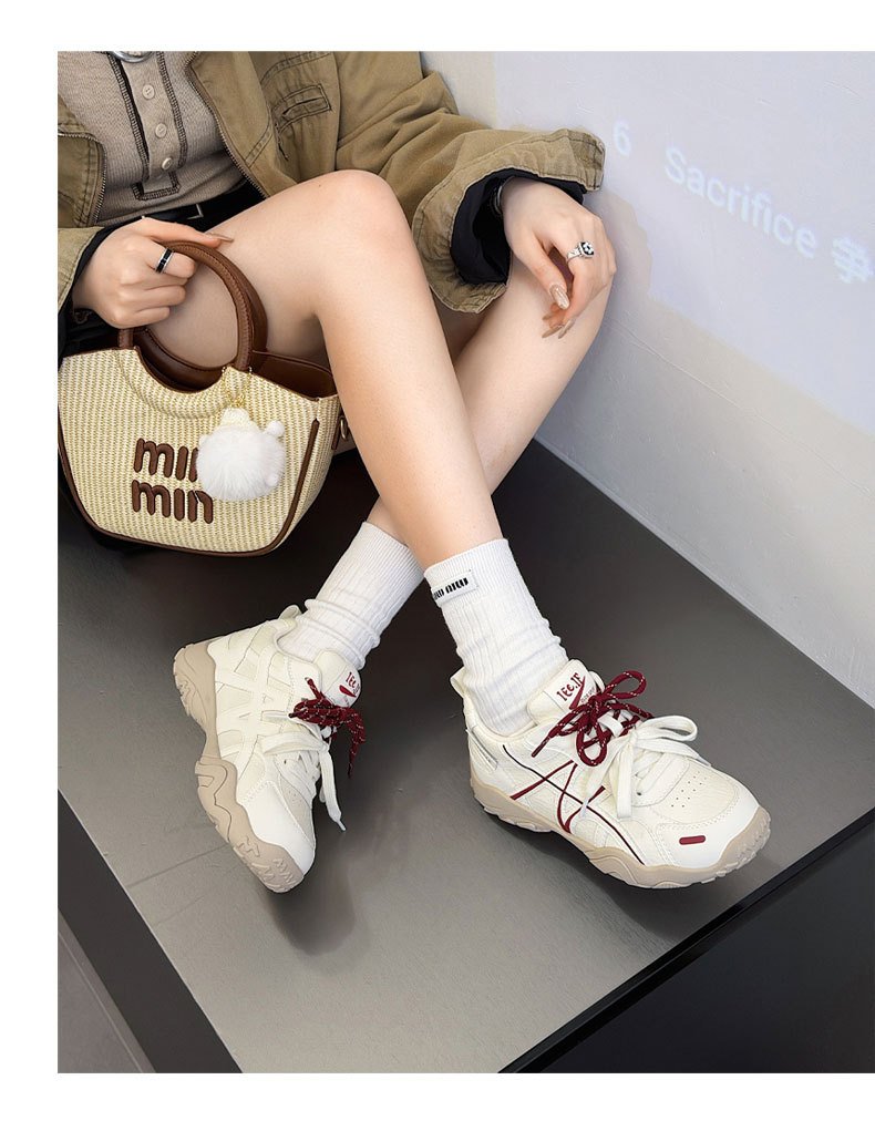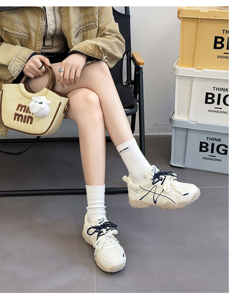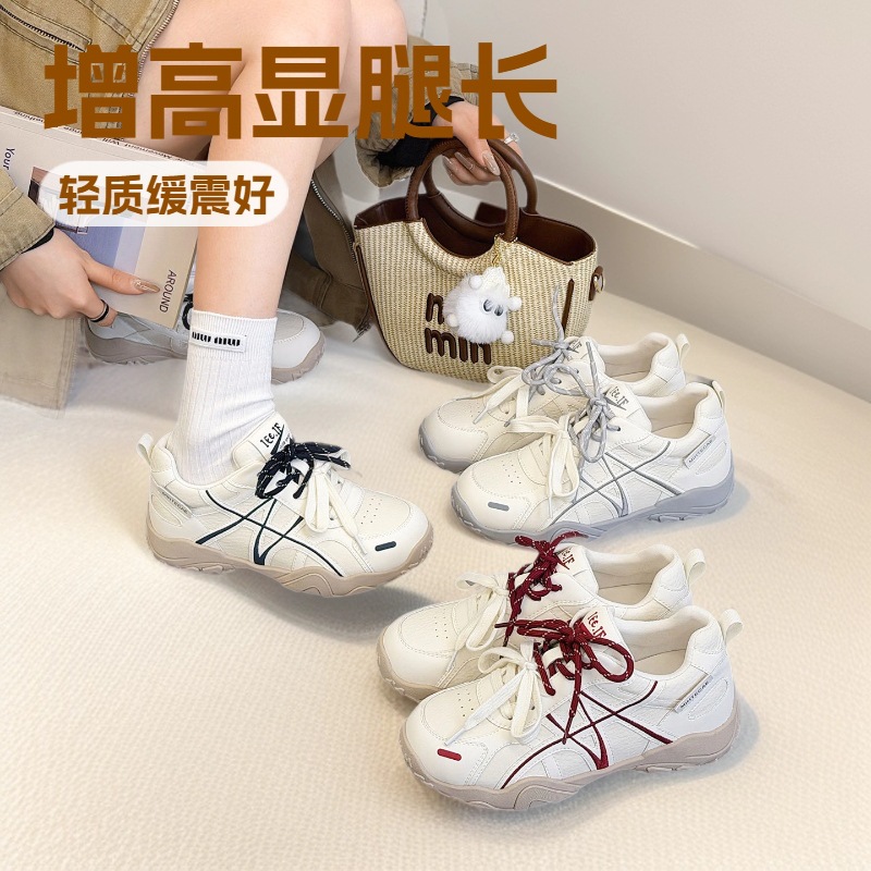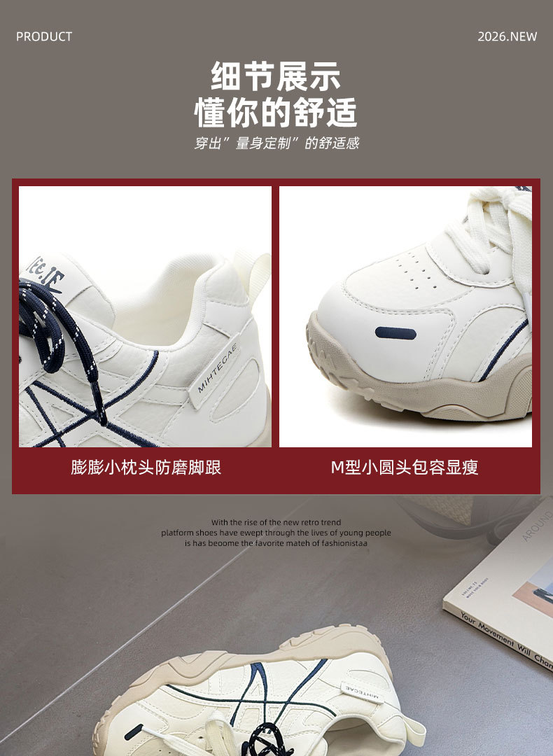 2026早春新款刺绣德训鞋女厚底内增高休闲鞋软底久站不累脚运动鞋