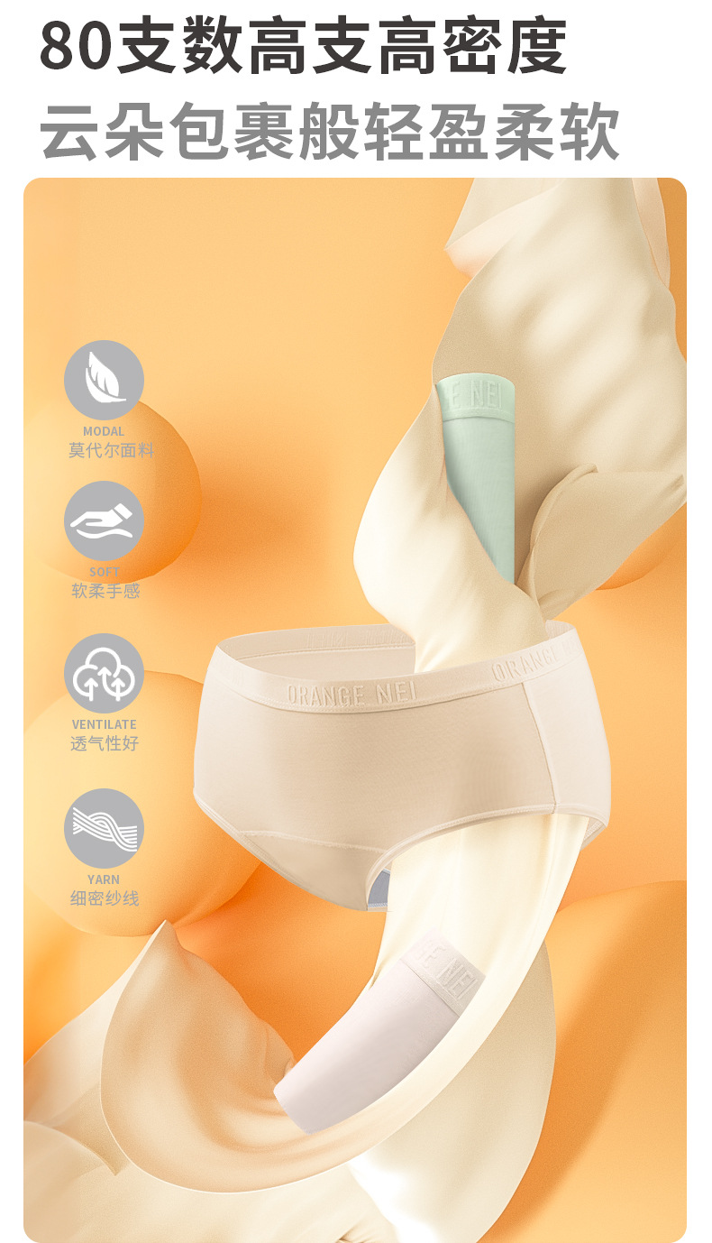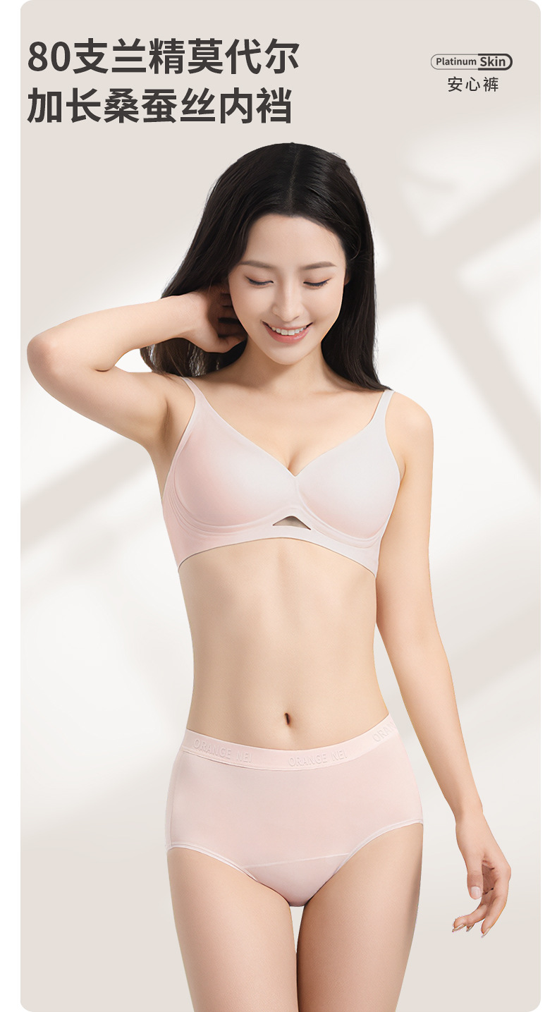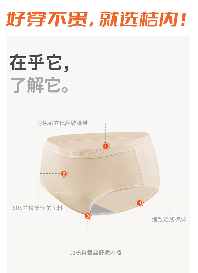 桔内木木内裤女士80支兰精莫代尔字母款防夹防勒腿舒适加长桑蚕丝