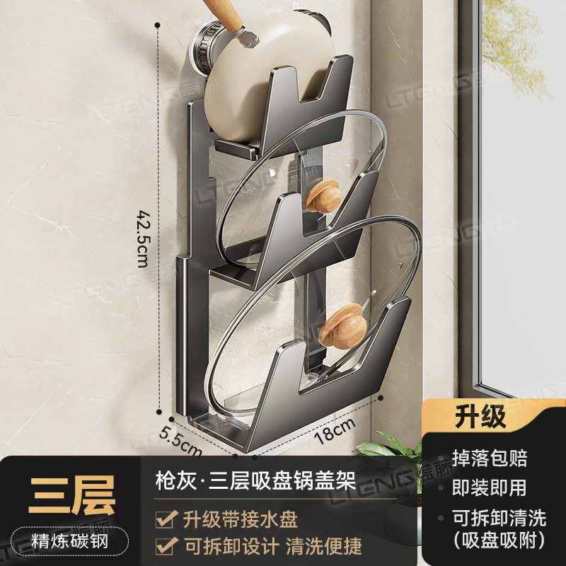 枪灰吸盘锅盖架壁挂式免打孔家用厨房置物架菜板案板放置收纳神器