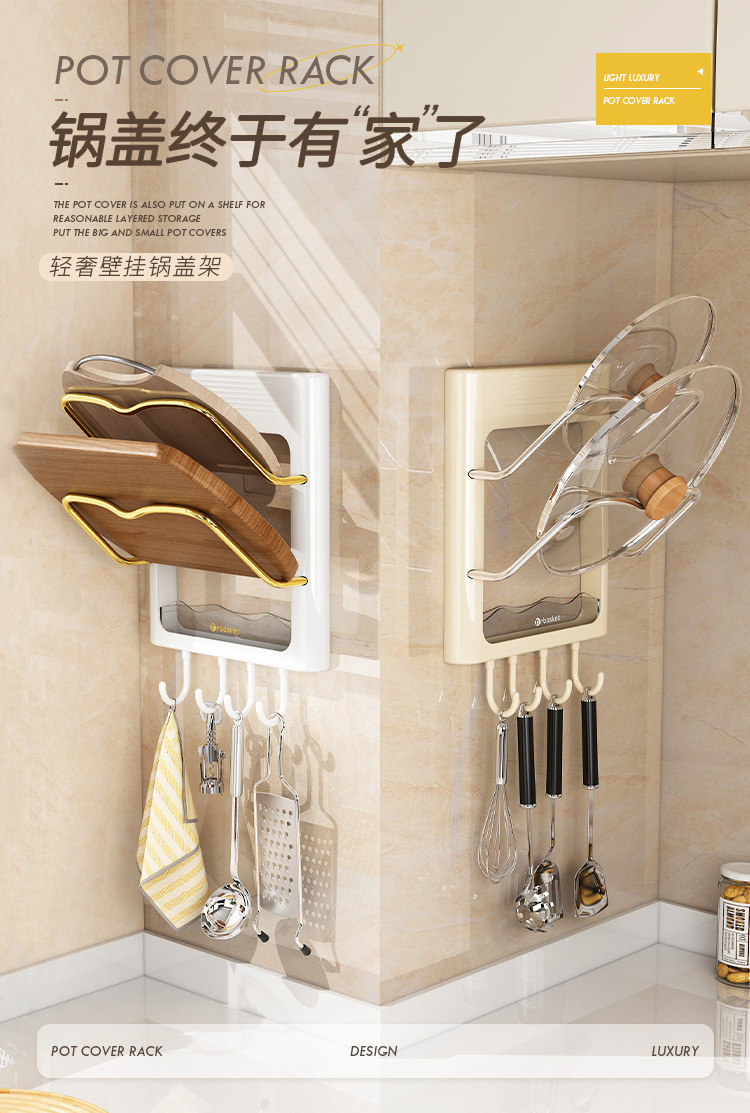 锅盖架壁挂式免打孔厨房置物架多功能家用收纳架菜板架多层砧板架