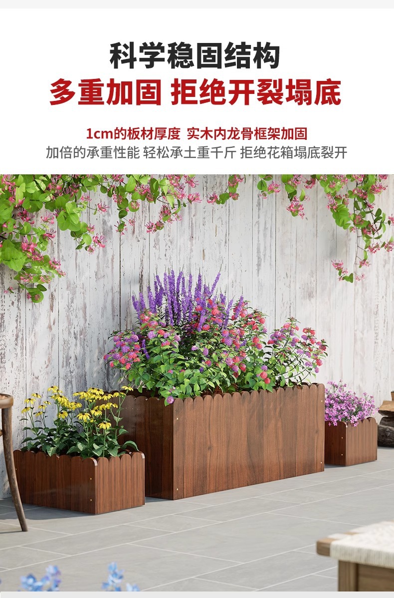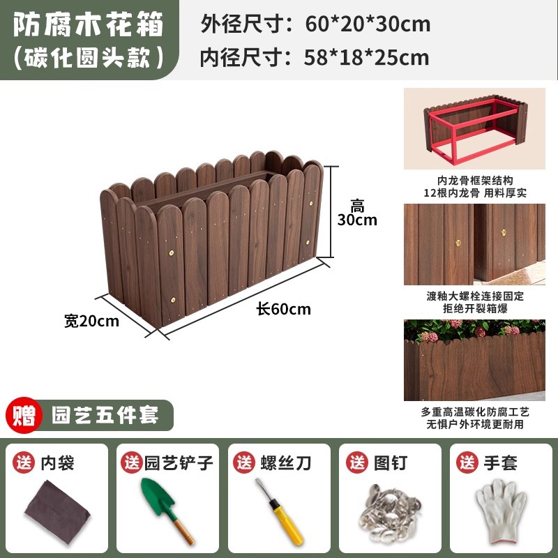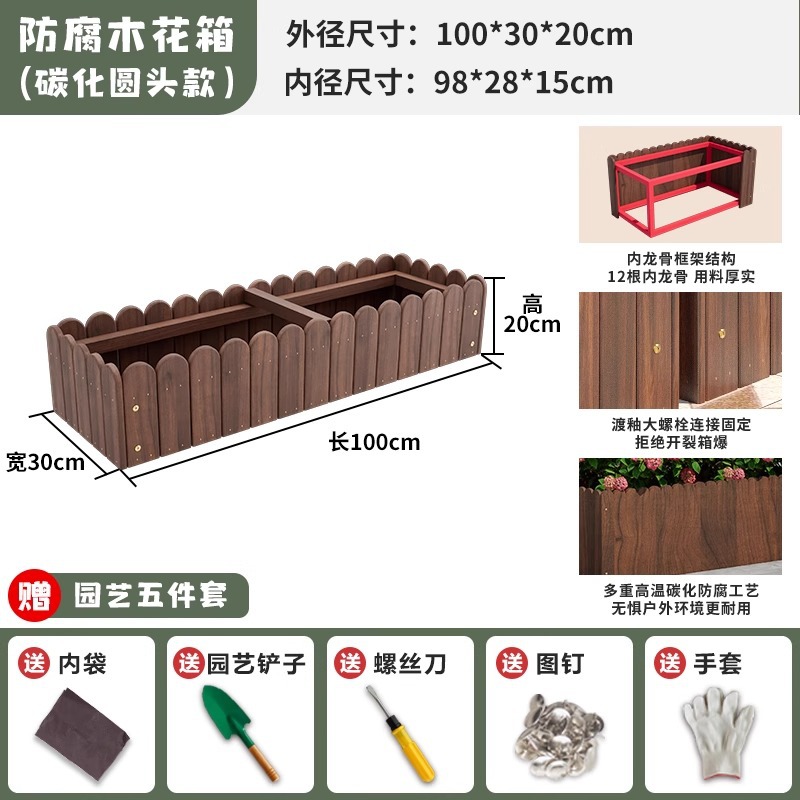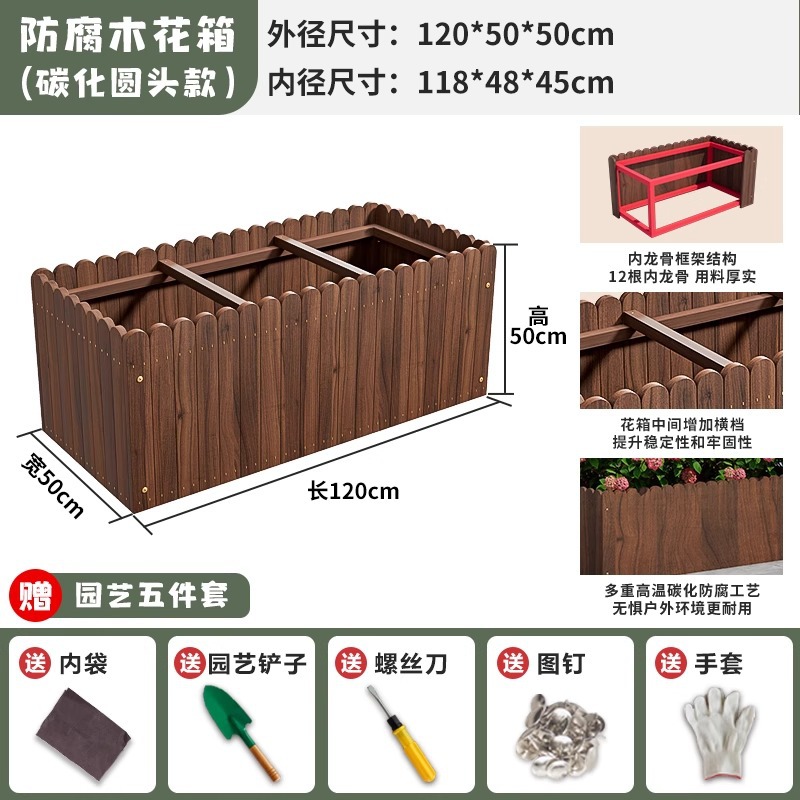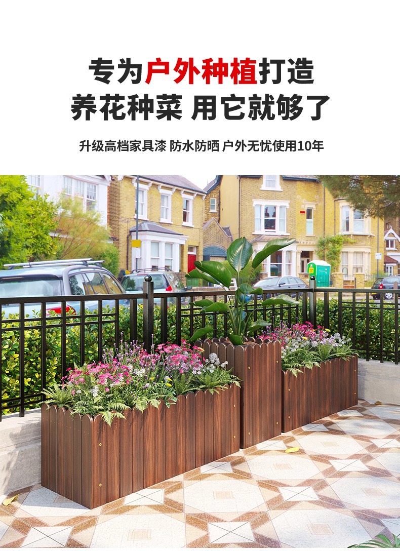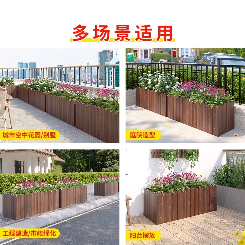 碳化防腐木花箱种植箱户外长方形实木花盆家用种菜庭院阳台木花槽