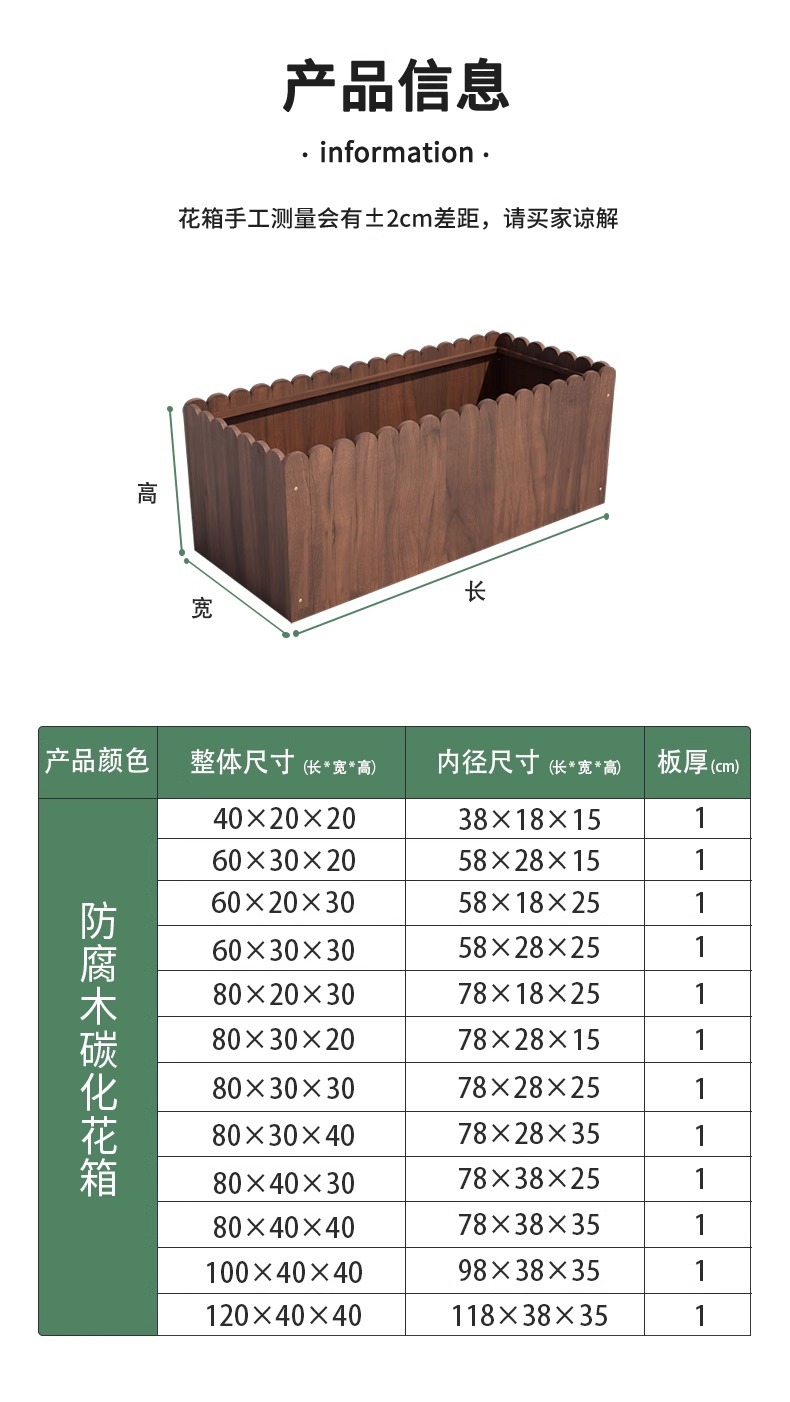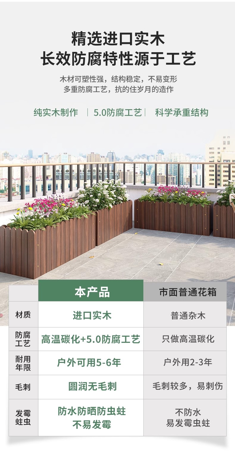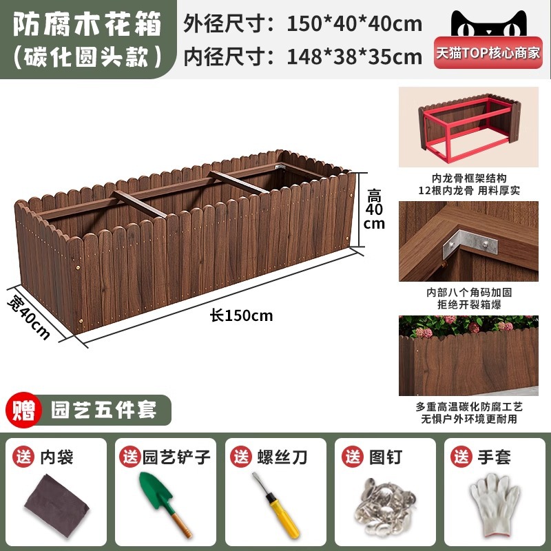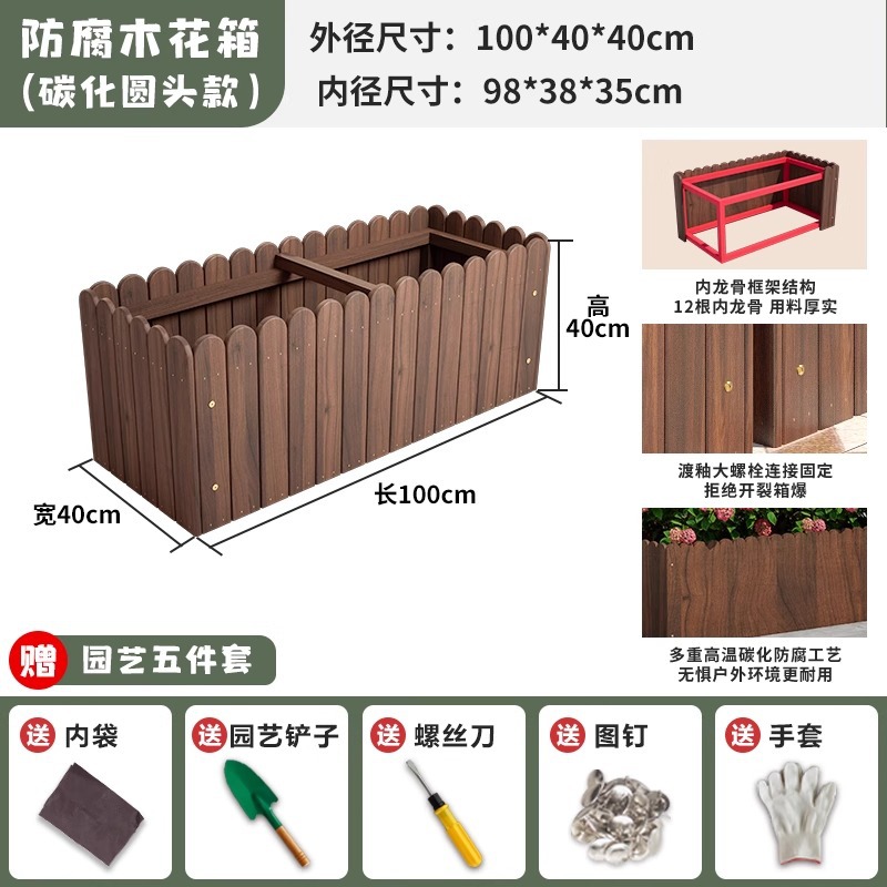 碳化防腐木花箱种植箱户外长方形实木花盆家用种菜庭院阳台木花槽