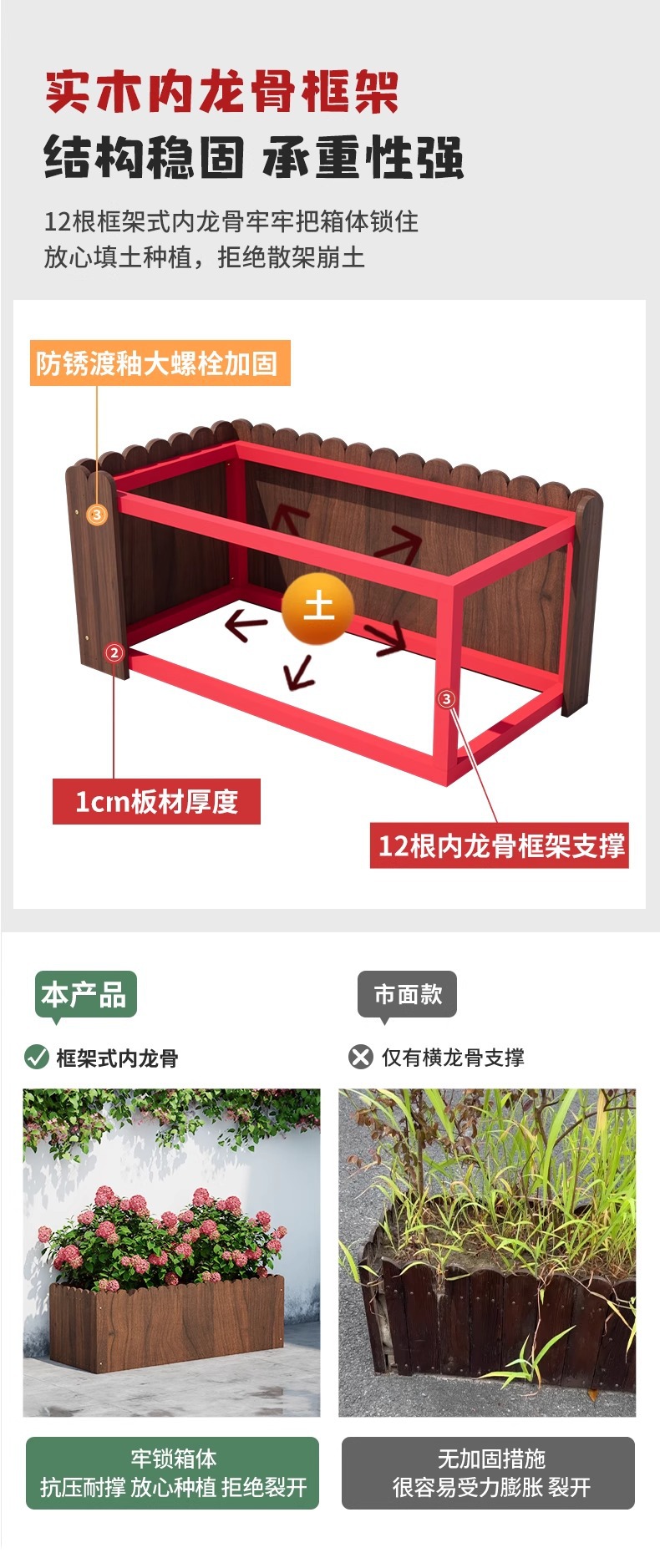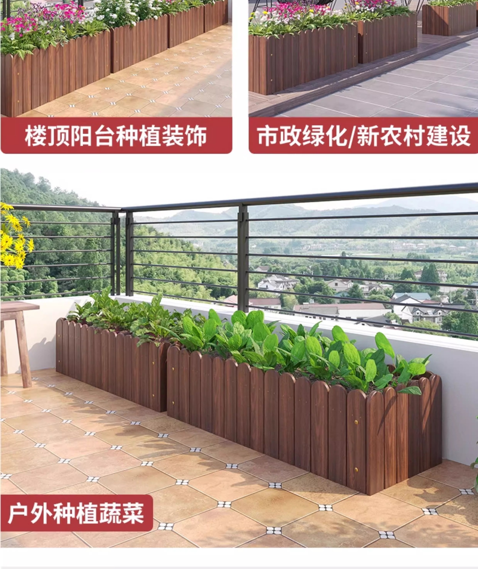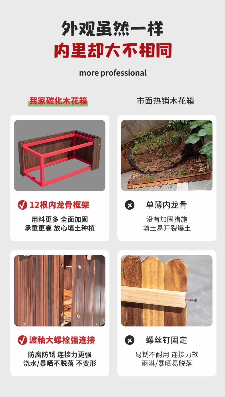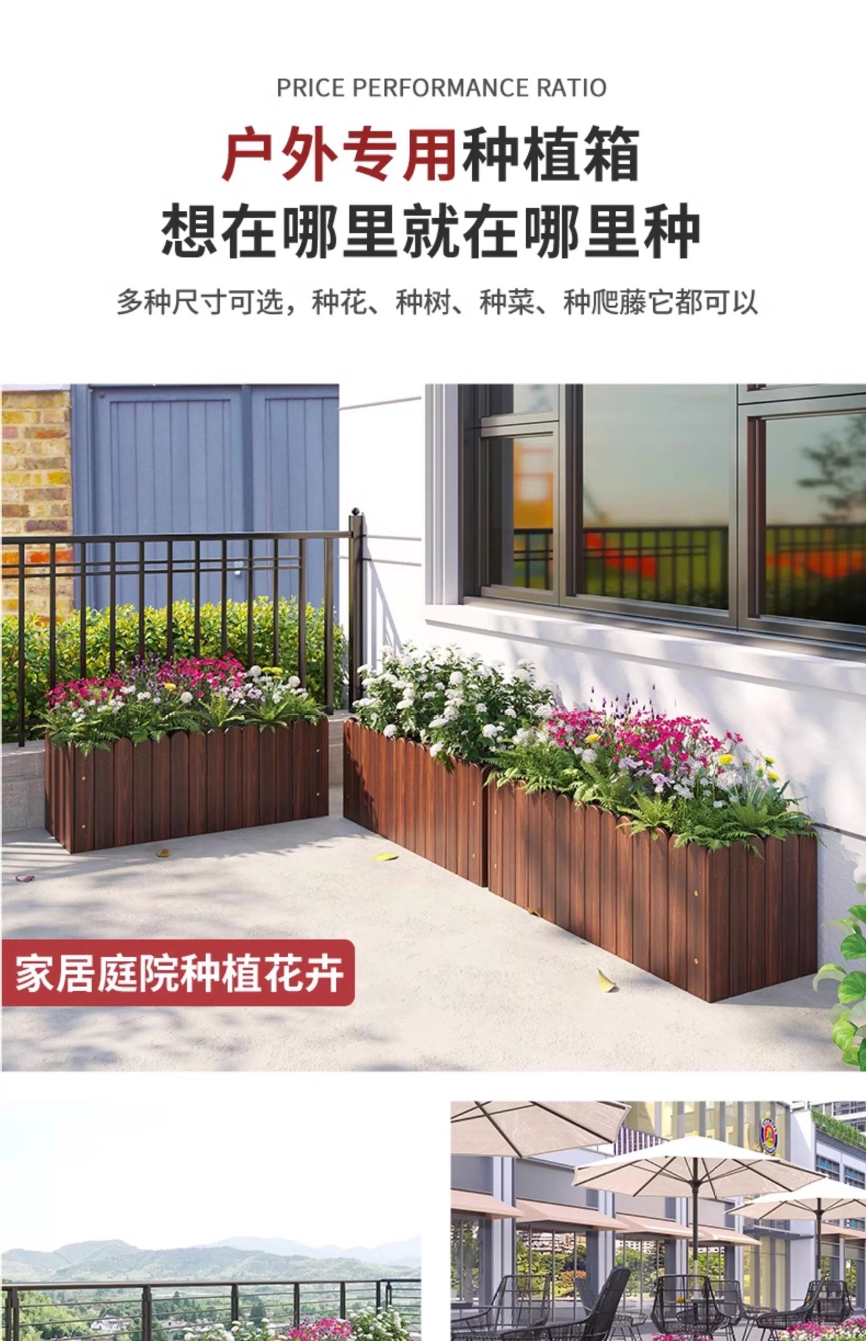 碳化防腐木花箱种植箱户外长方形实木花盆家用种菜庭院阳台木花槽