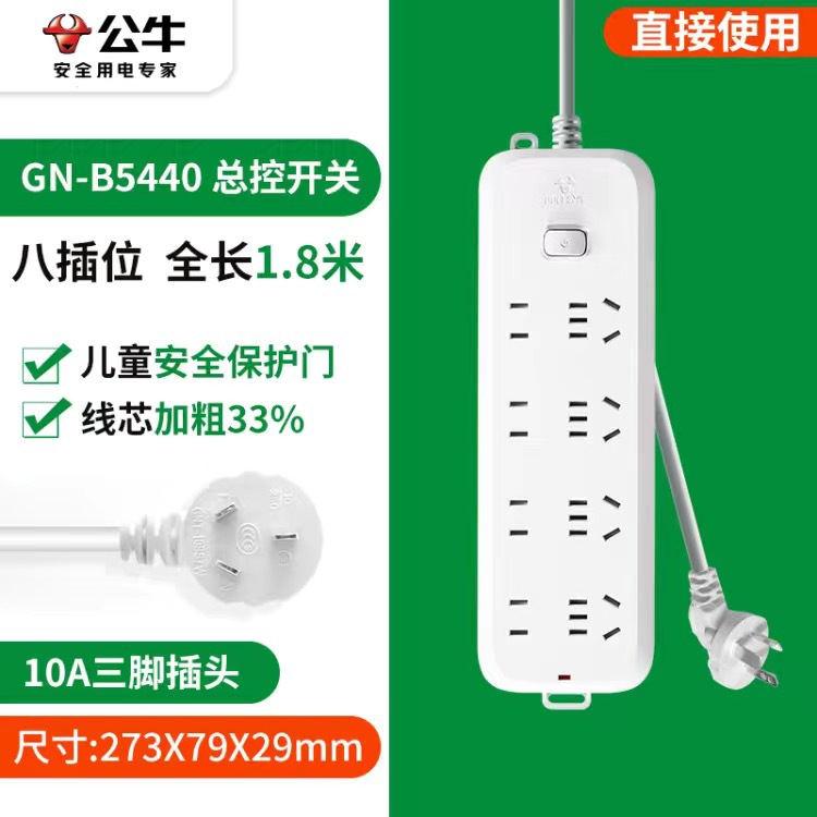 公牛插排原装带线插排家用多功能电源拖线板宿会插板接线电插板插