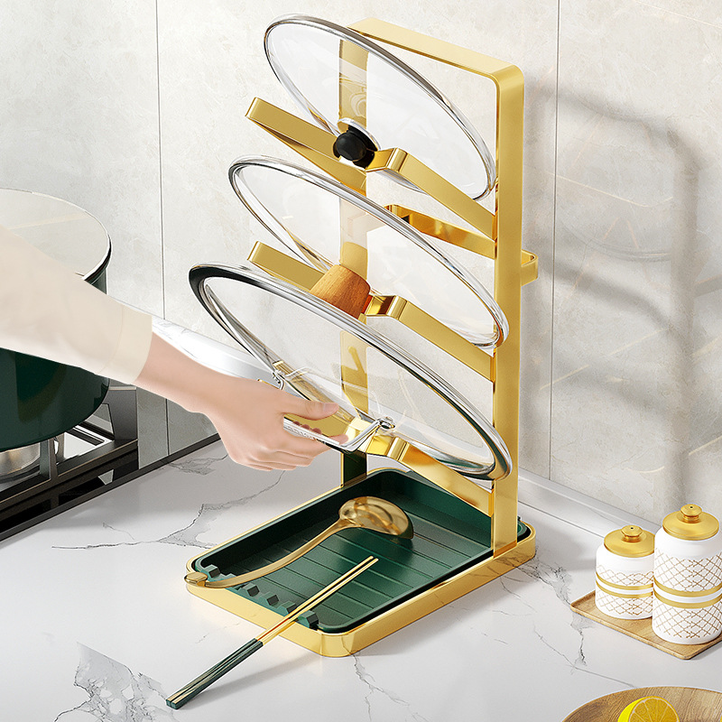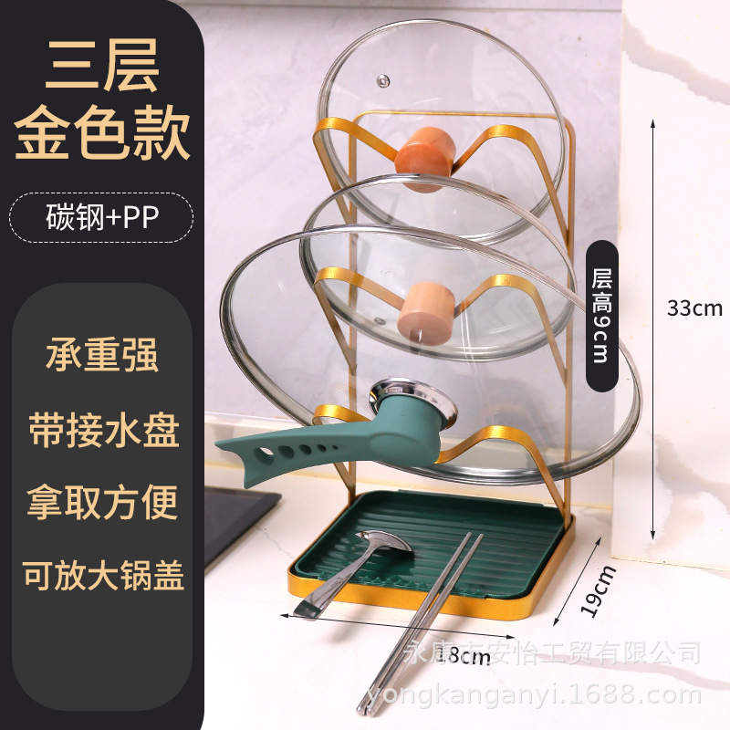 【升级加宽】轻奢厨房锅盖架沥水牢固台面收纳锅盖铲多功能置物架