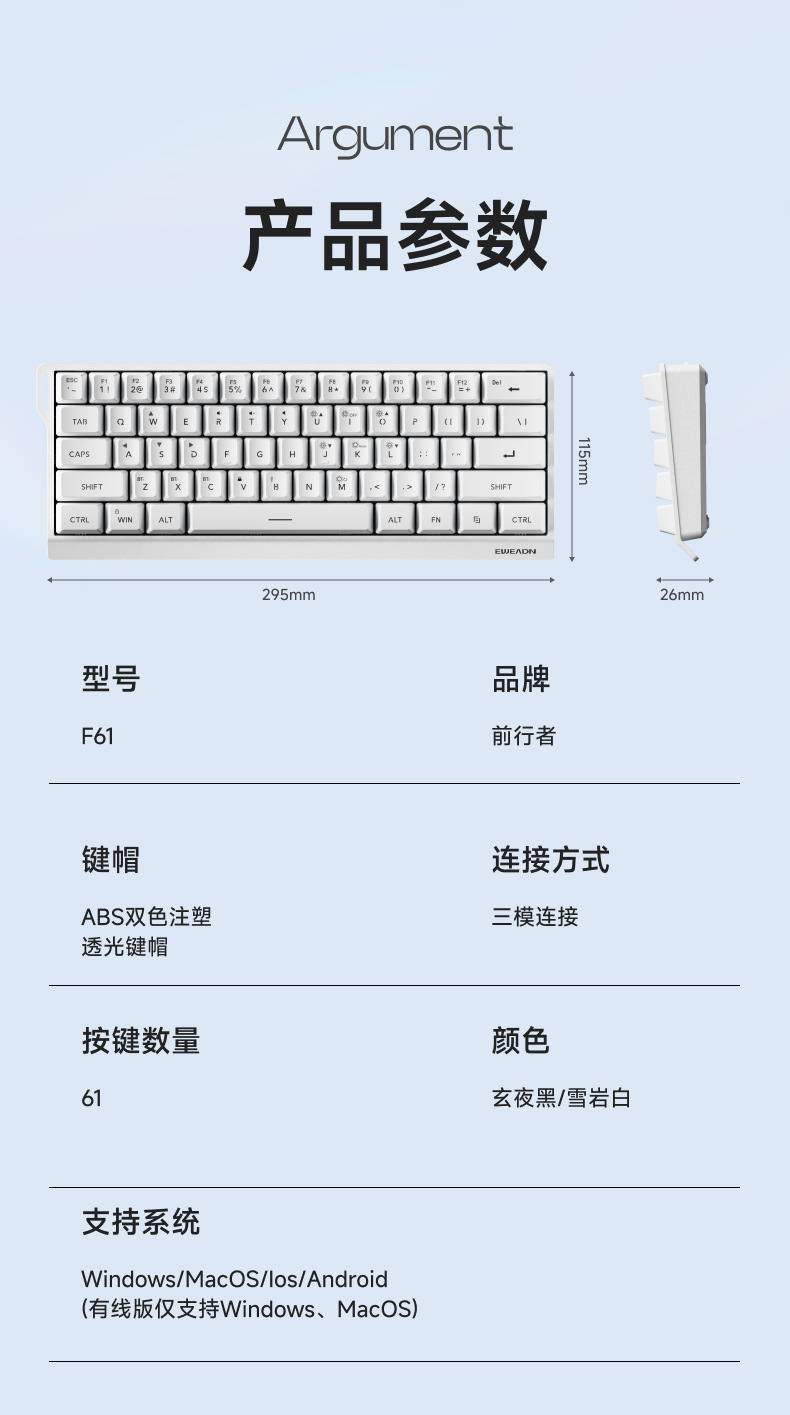 前行者F61/F68无线键盘机械手感蓝牙办公专用小型便携蓝牙键盘