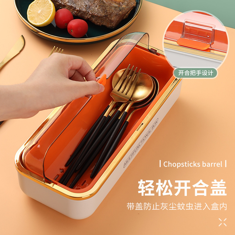 轻奢筷子盒带盖防尘沥水家用厨房置物架放筷勺子刀叉餐具收纳盒