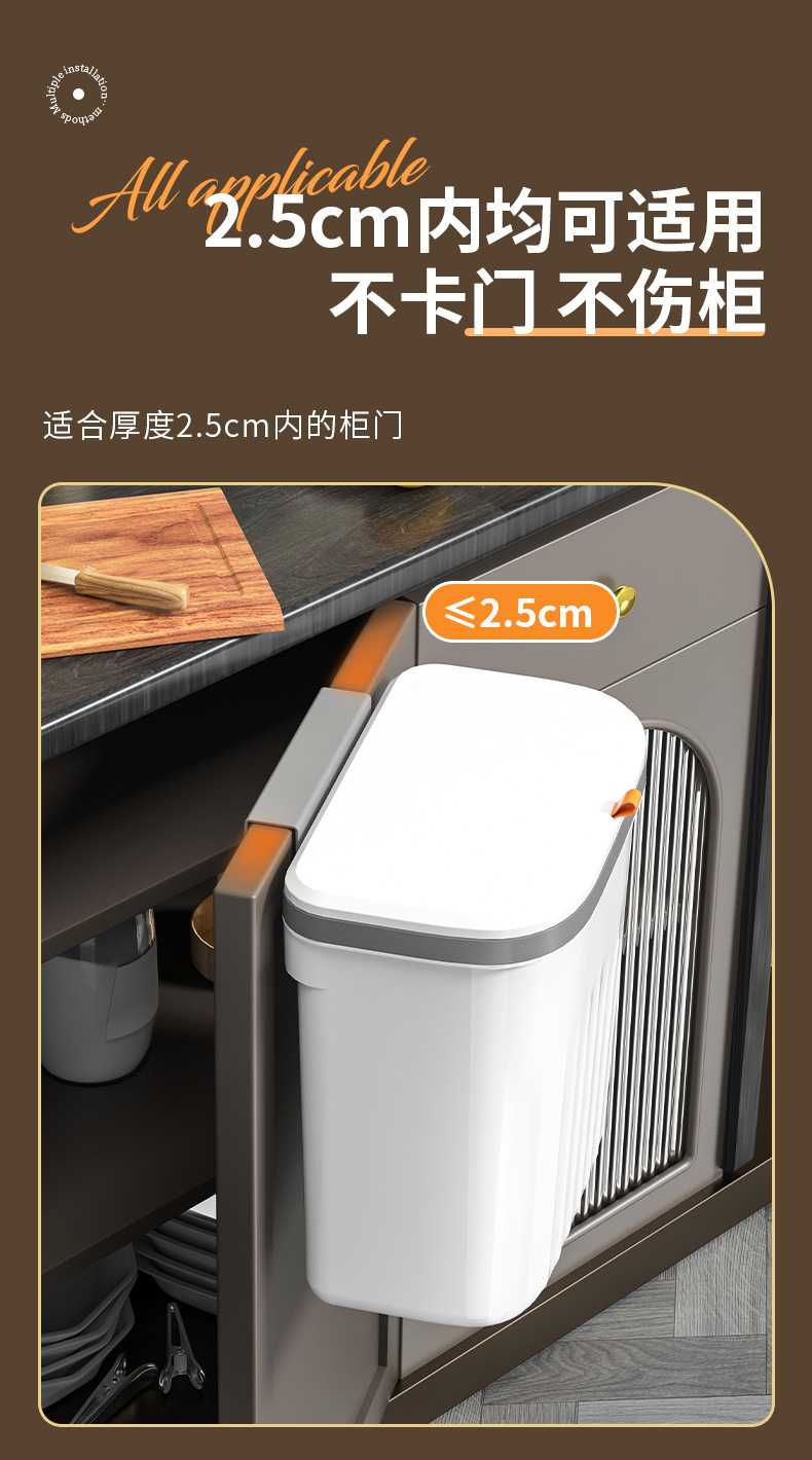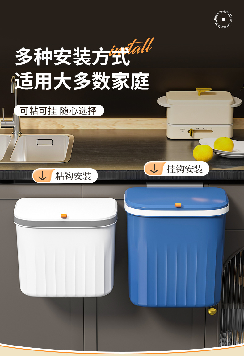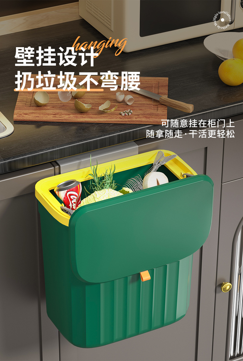 厨房挂壁垃圾桶家用带盖橱柜门壁挂式厨余杂物桶卫生间厕所悬挂式