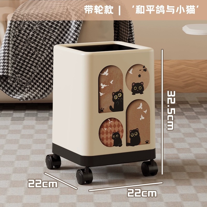 垃圾桶创意个性风垃圾篓大敞口卧室客厅纸篓带轮便捷式加大垃圾筒