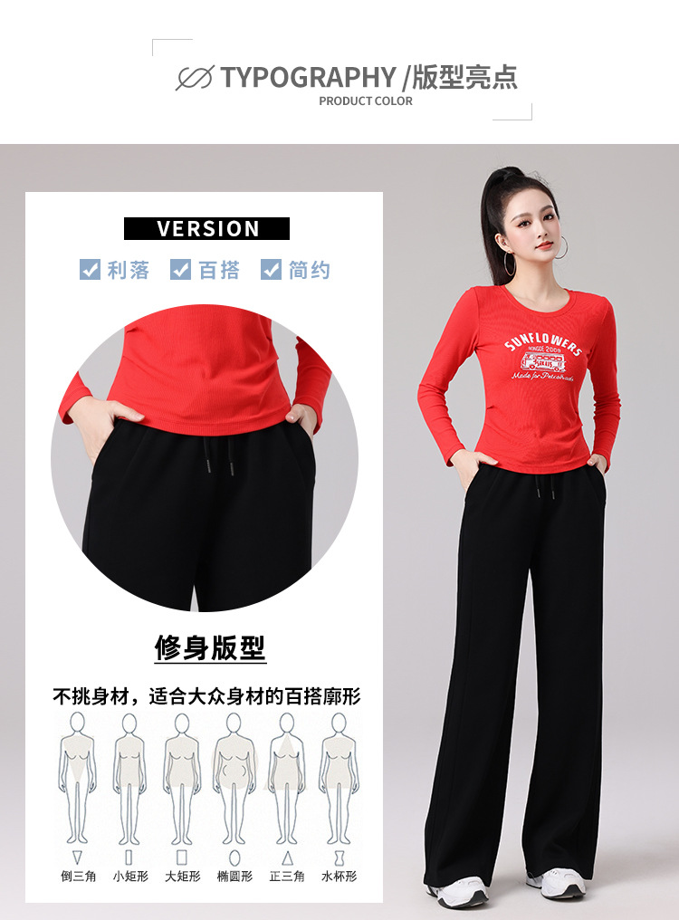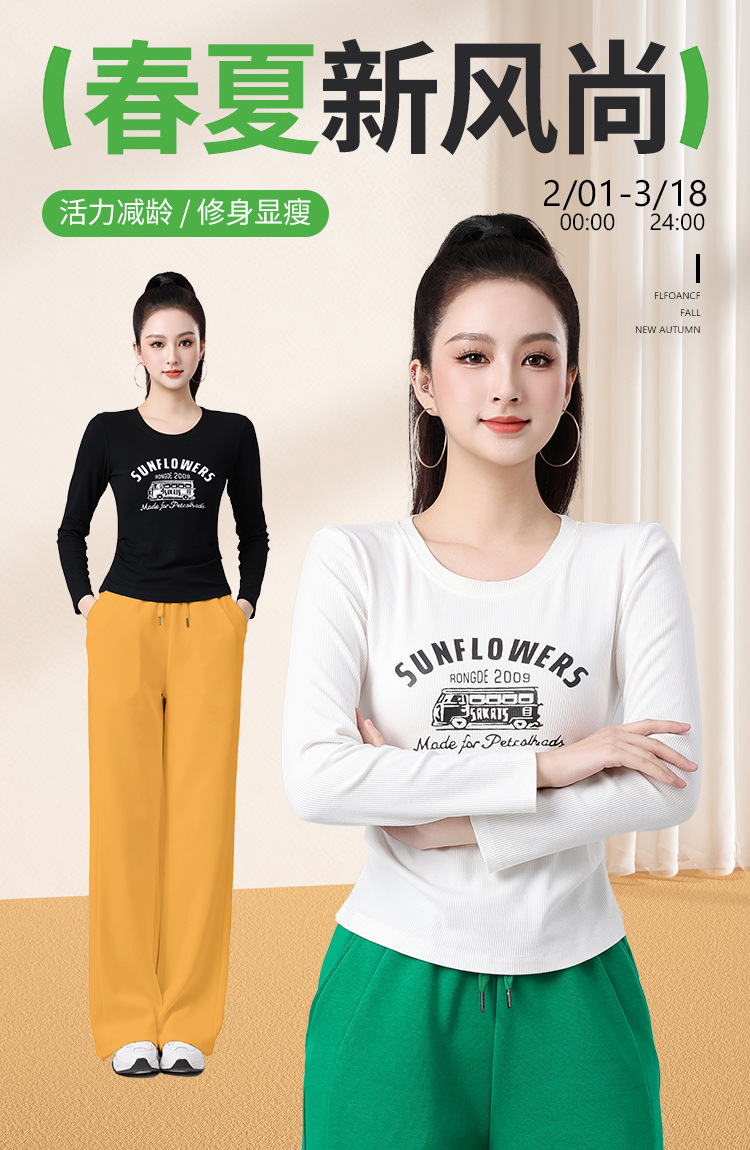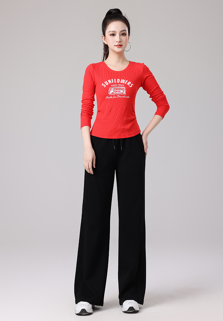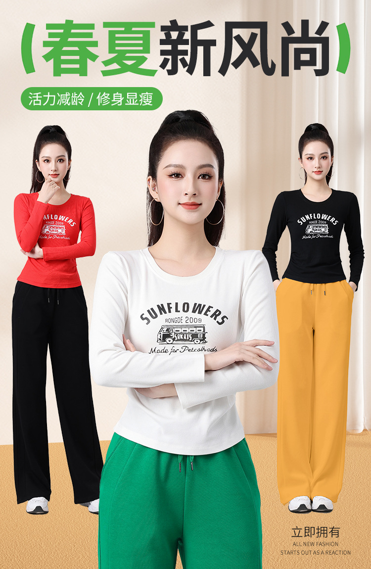 2025春夏广场舞服运动休闲健身跳操跑步服显瘦长袖窄版直筒裤套装